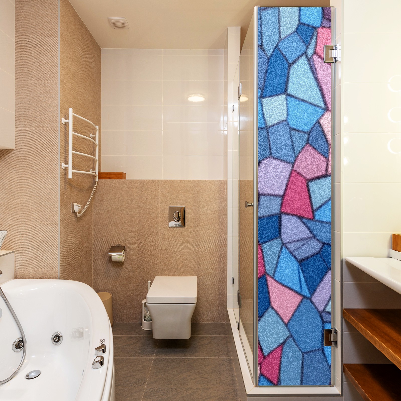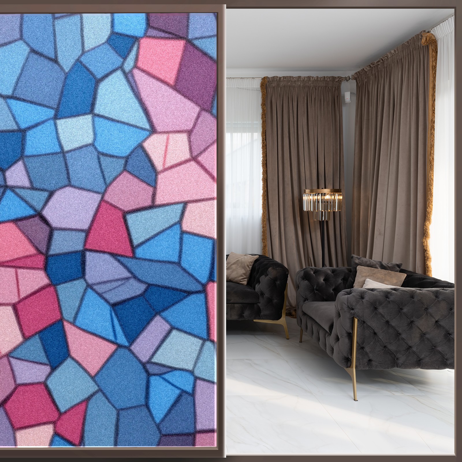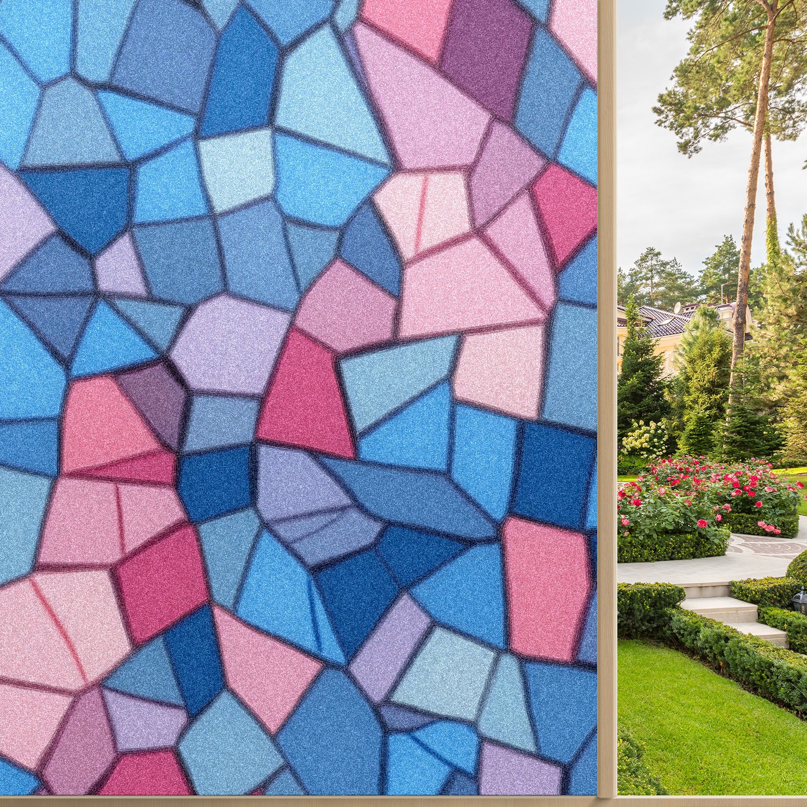 Window Privacy Film Decorative Window Decal Film Removable Static Cling Window Tint for Home Bedroom Sun Blocking Stickers 17.7 x 23.6 Inches Blue And Pink