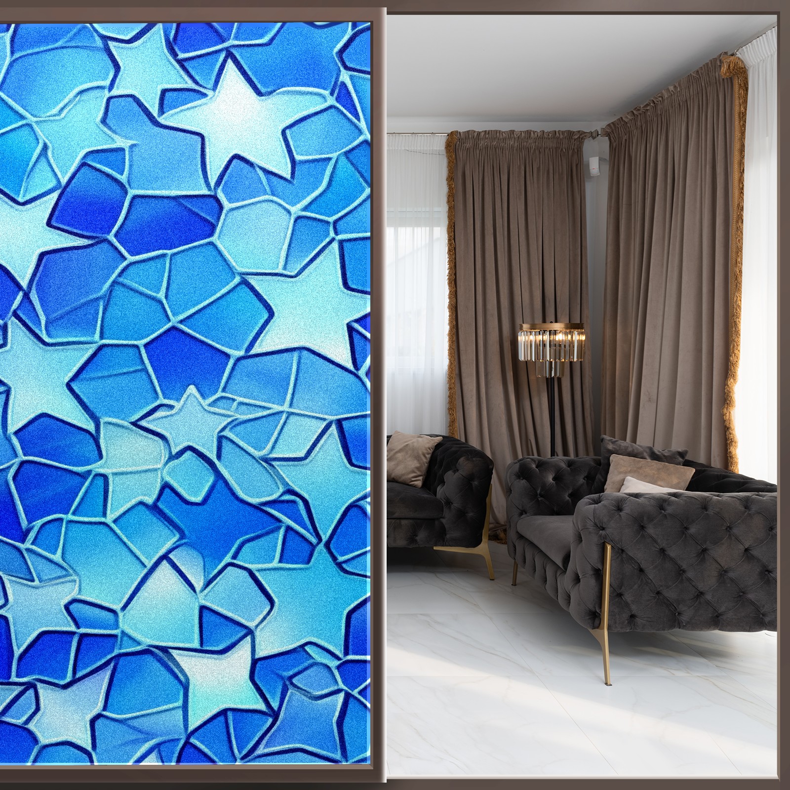 Window Privacy Film Decorative Window Decal Film Removable Static Cling Window Tint for Home Bedroom Sun Blocking Stickers 17.7 x 23.6 Inches Blue Stars