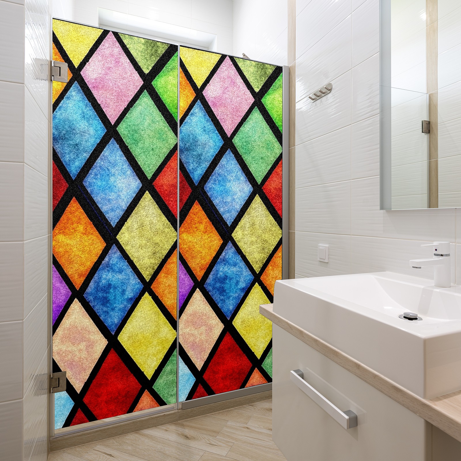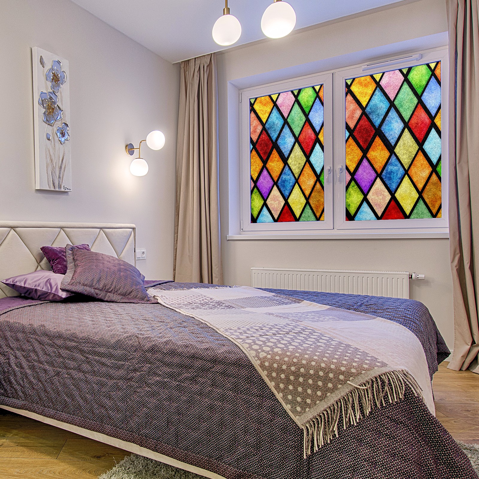 Window Privacy Film Decorative Window Decal Film Removable Static Cling Window Tint for Home Bedroom Sun Blocking Stickers 17.7 x 23.6 Inches Colorful Stained Glass (2)