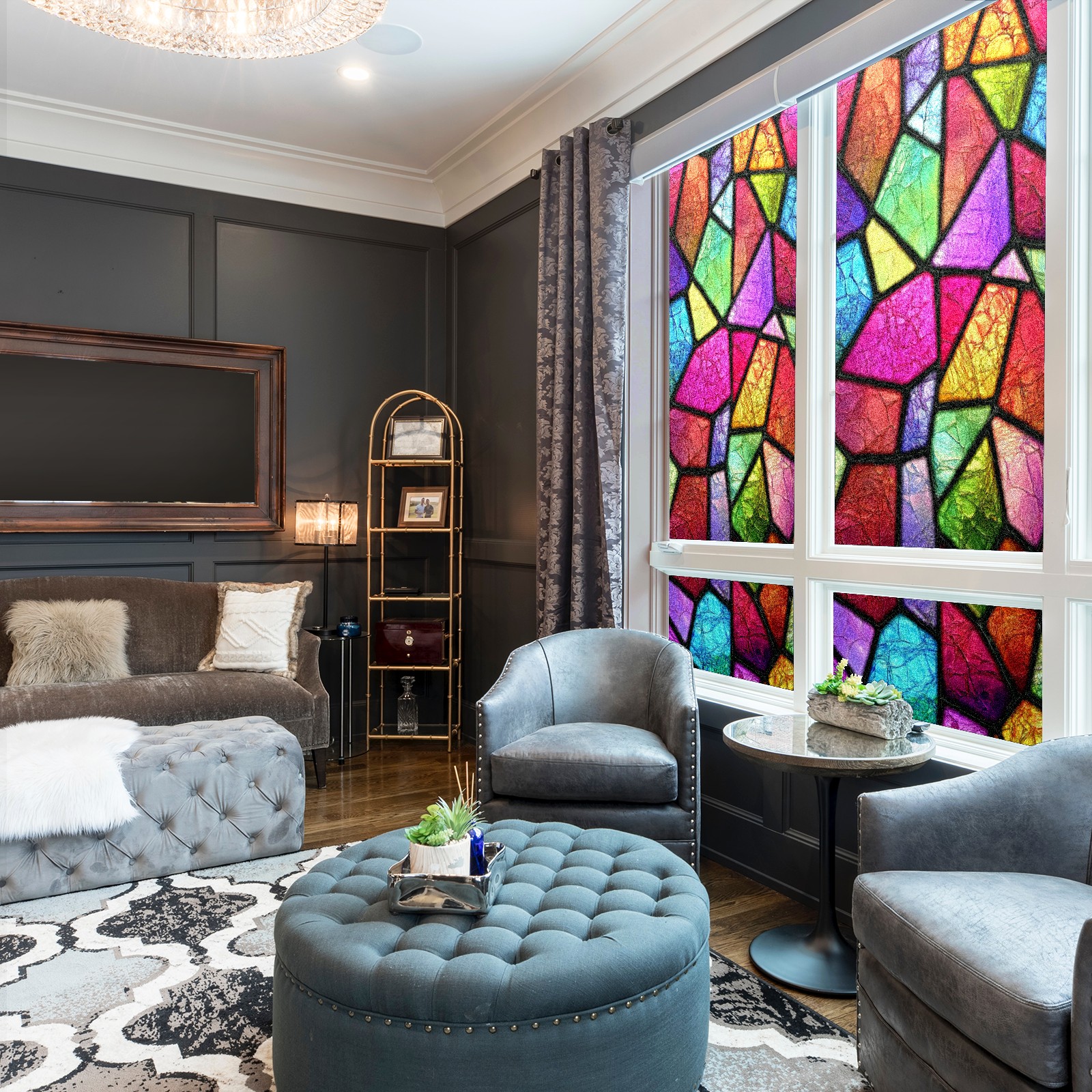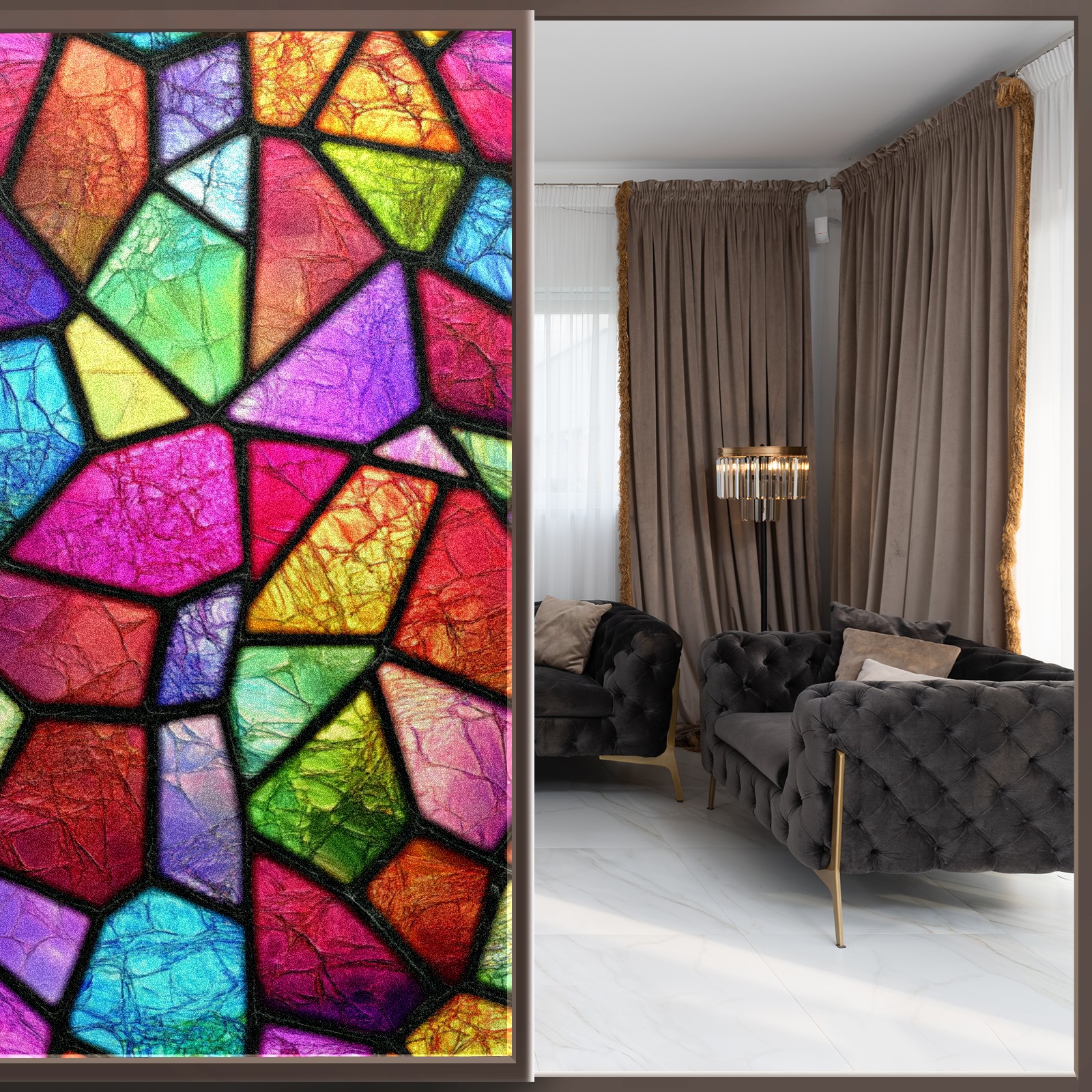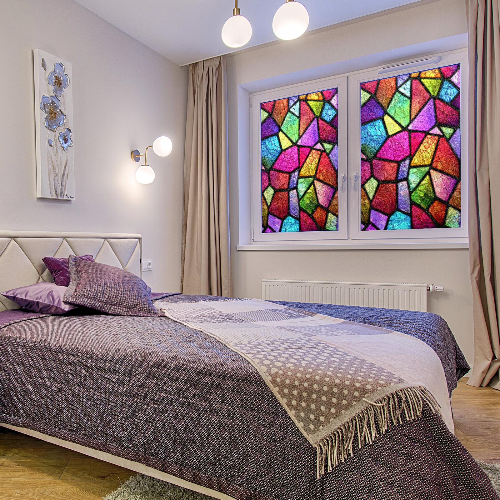 Window Privacy Film Decorative Window Decal Film Removable Static Cling Window Tint for Home Bedroom Sun Blocking Stickers 17.7 x 23.6 Inches Colorful Stained Glass (3)