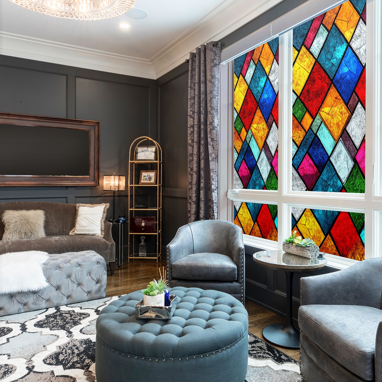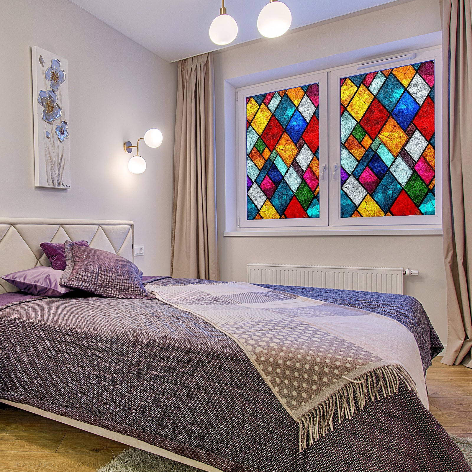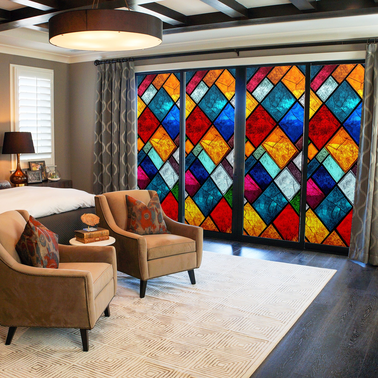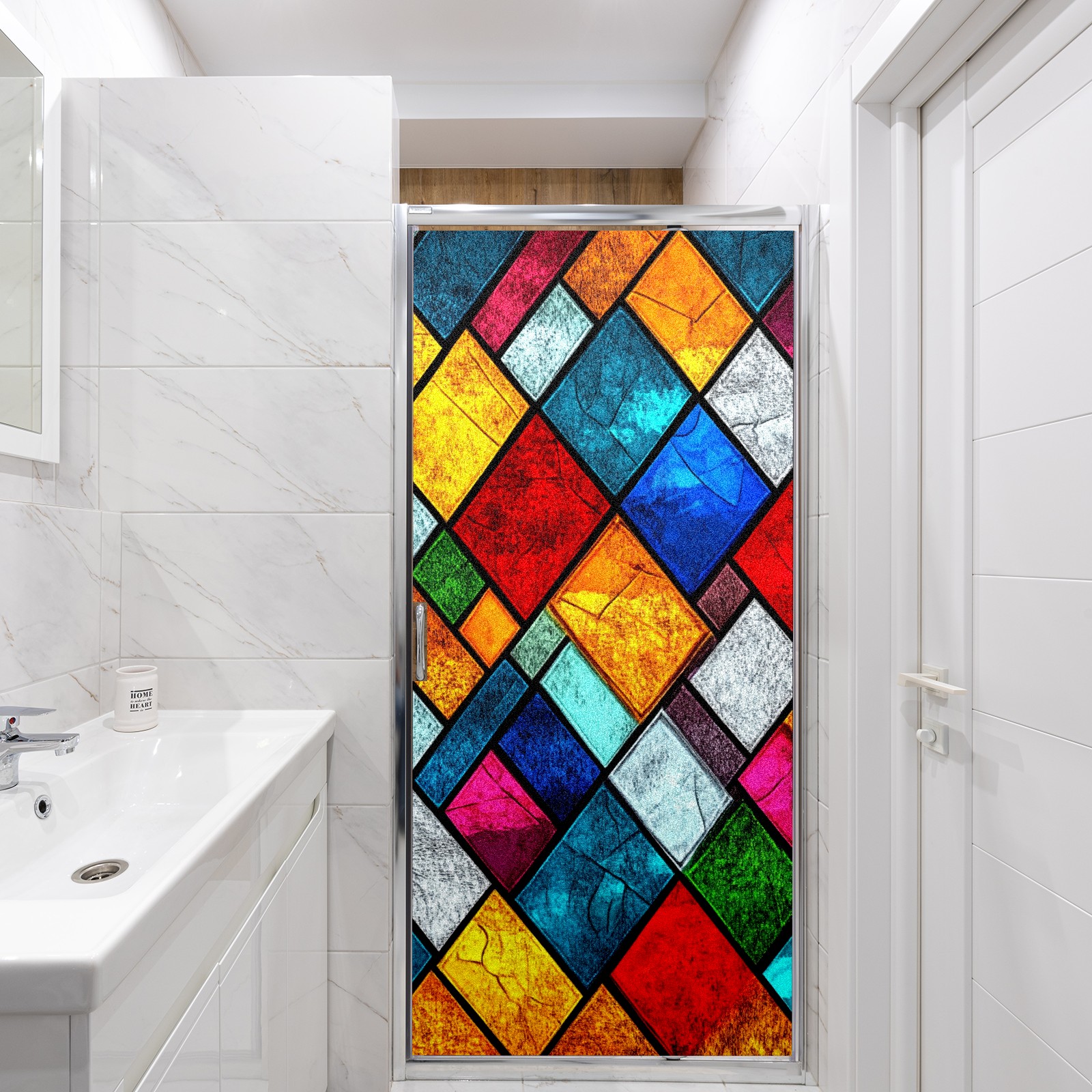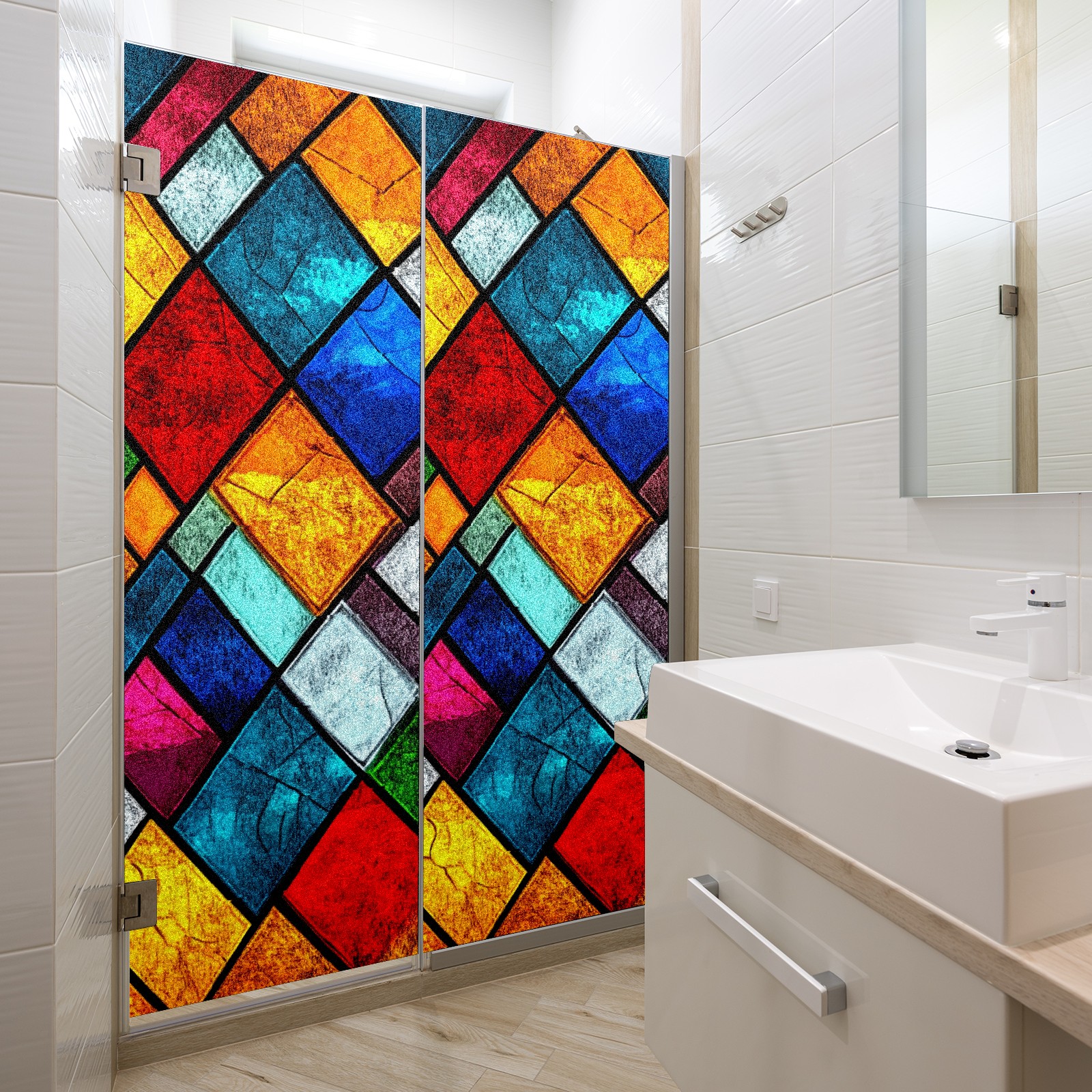 Window Privacy Film Decorative Window Decal Film Removable Static Cling Window Tint for Home Bedroom Sun Blocking Stickers 17.7 x 23.6 Inches Colorful Squares