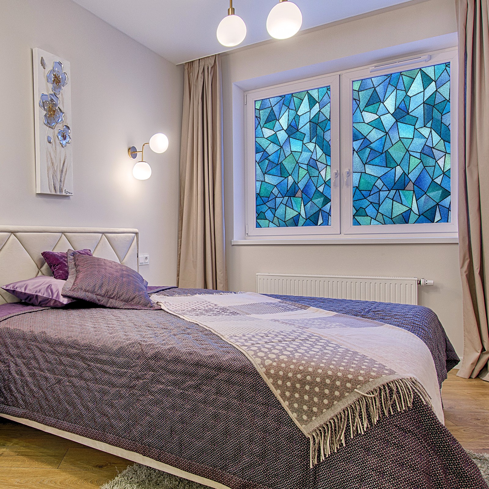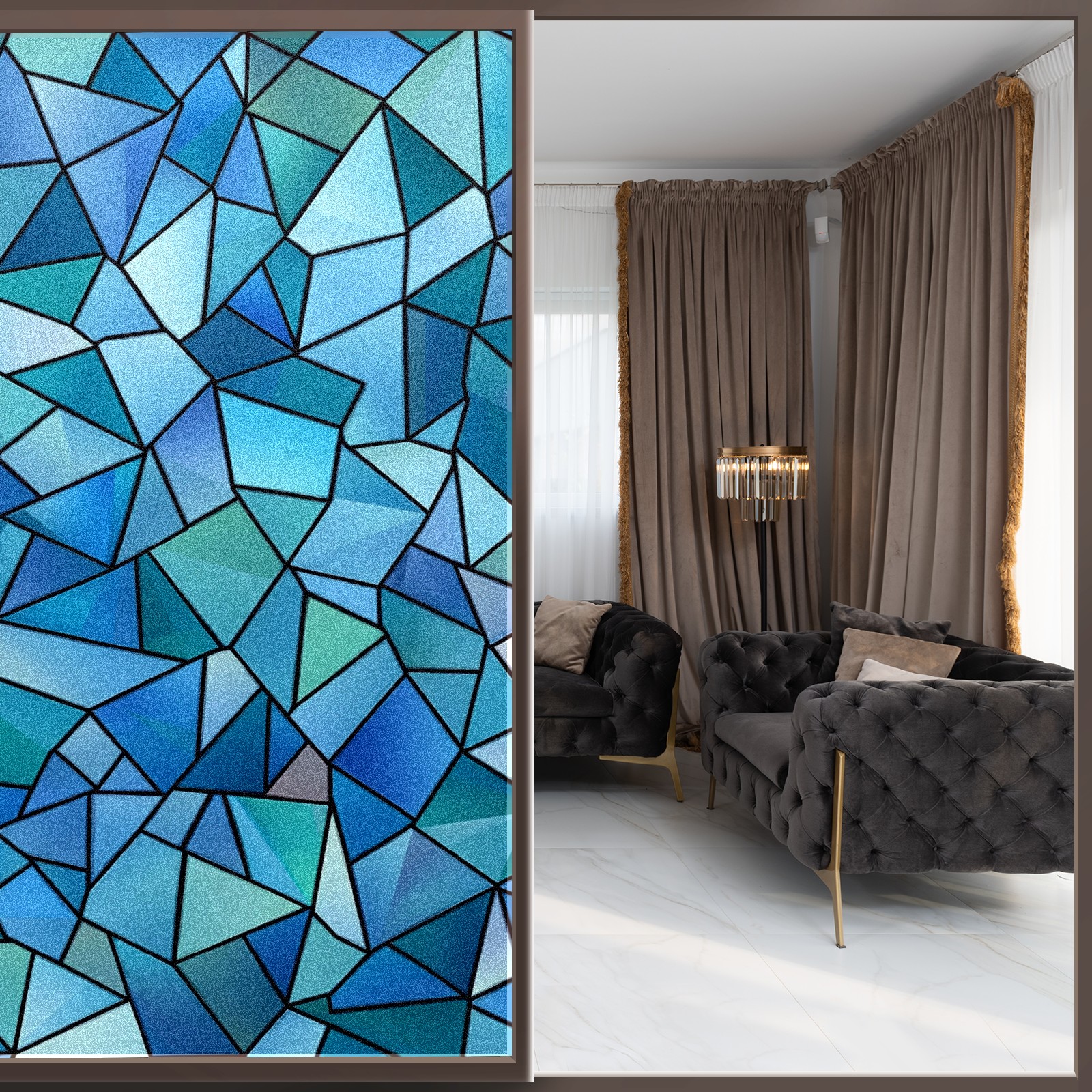 Window Privacy Film Decorative Window Decal Film Removable Static Cling Window Tint for Home Bedroom Sun Blocking Stickers 17.7 x 23.6 Inches Blue And Teal Geometric Triangles
