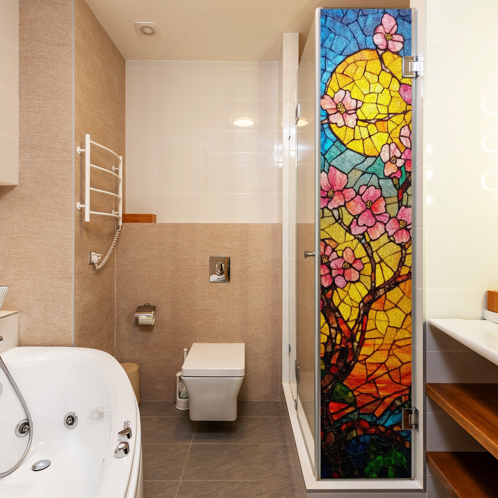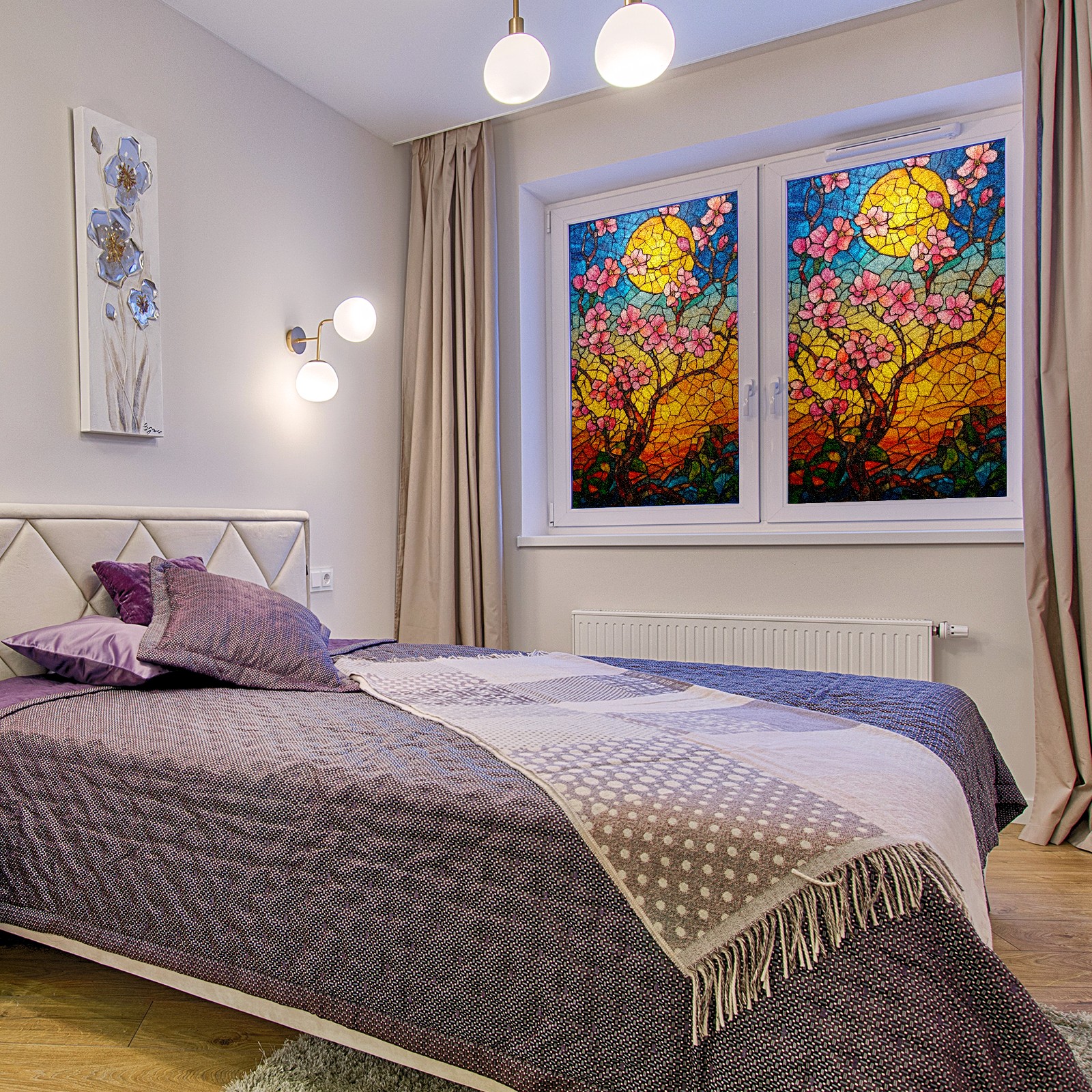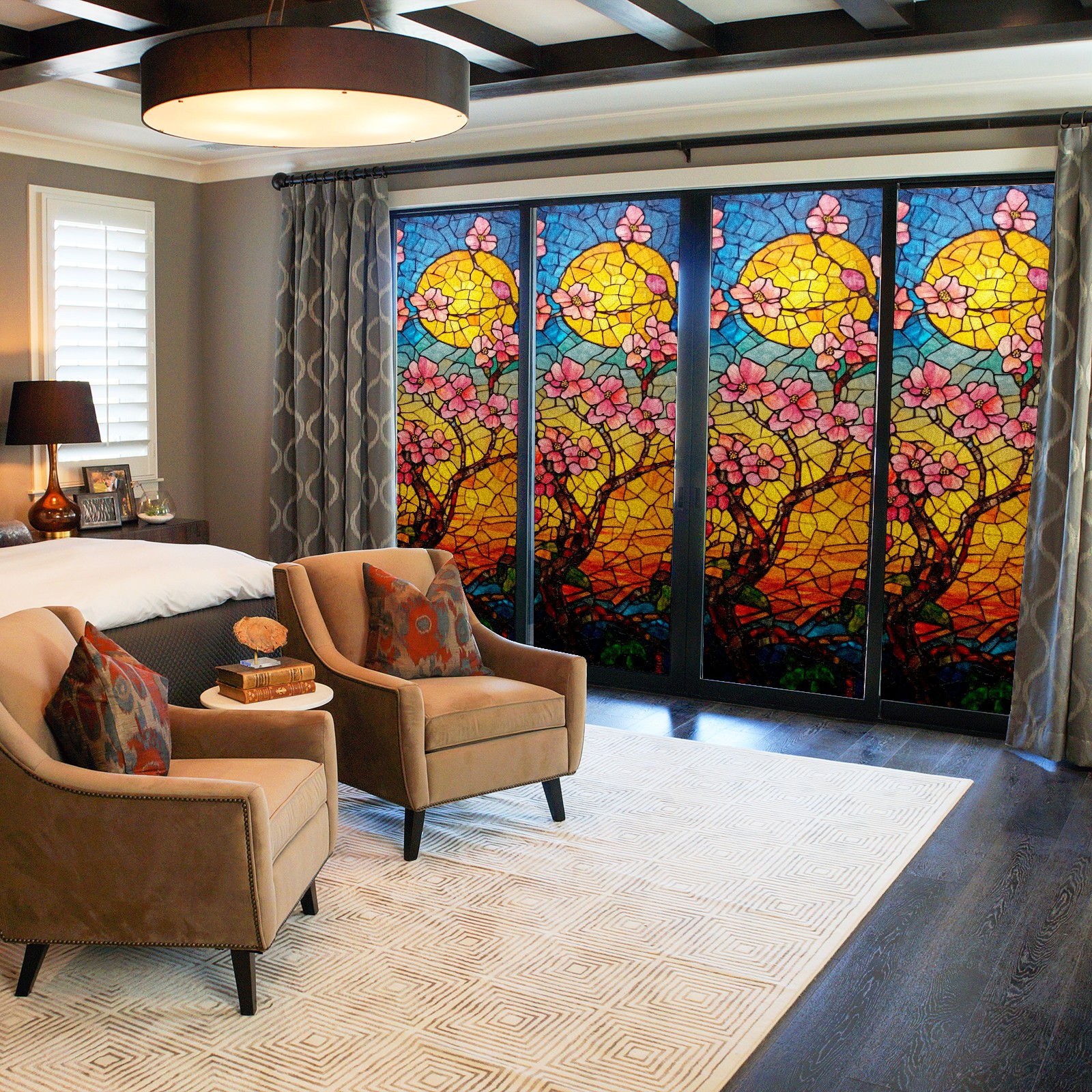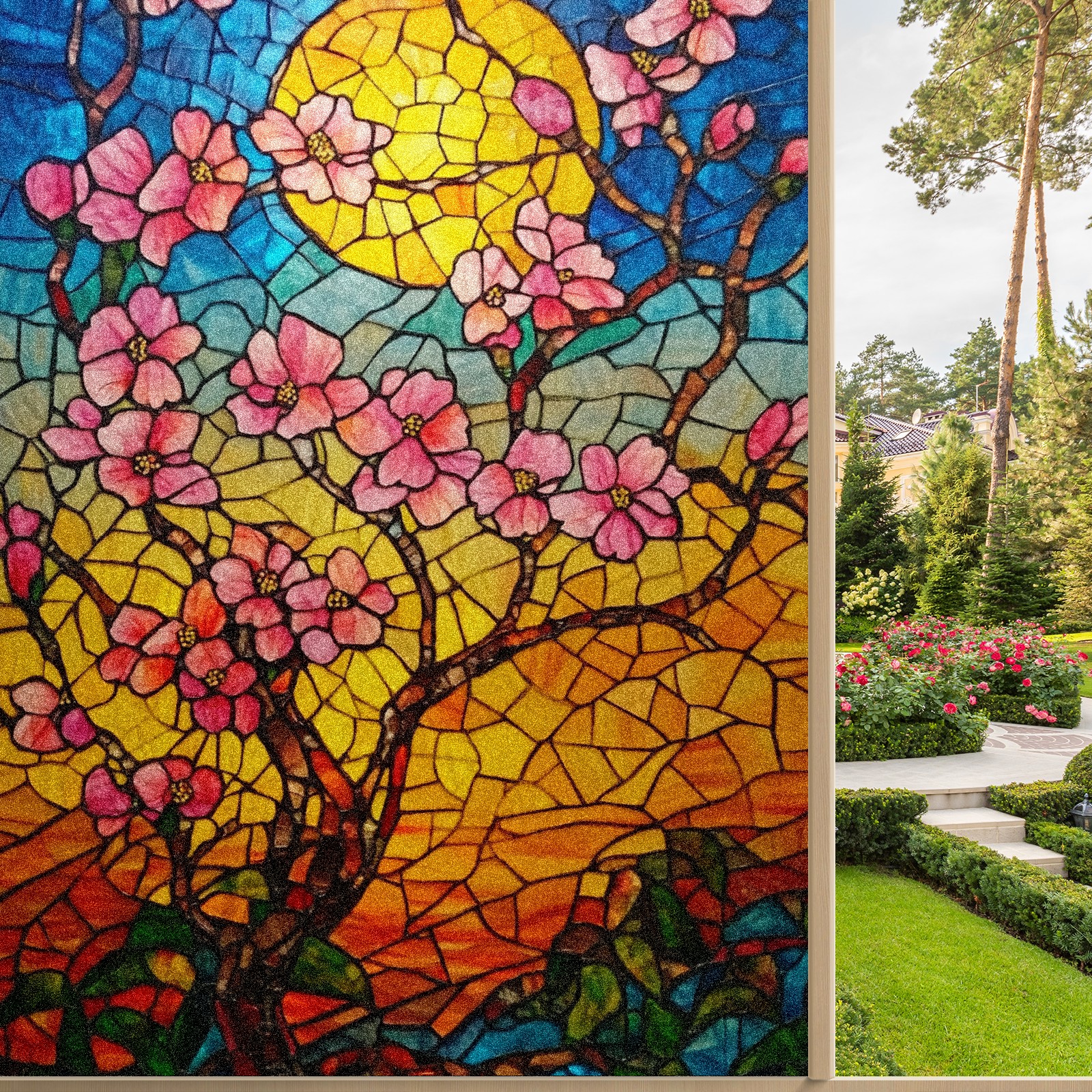 Window Privacy Film Decorative Window Decal Film Removable Static Cling Window Tint for Home Bedroom Sun Blocking Stickers 17.7 x 23.6 Inches Cherry Blossoms