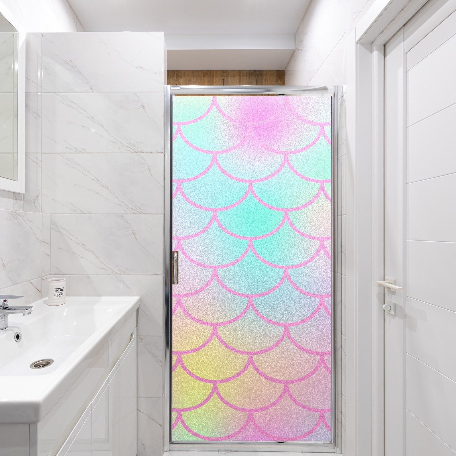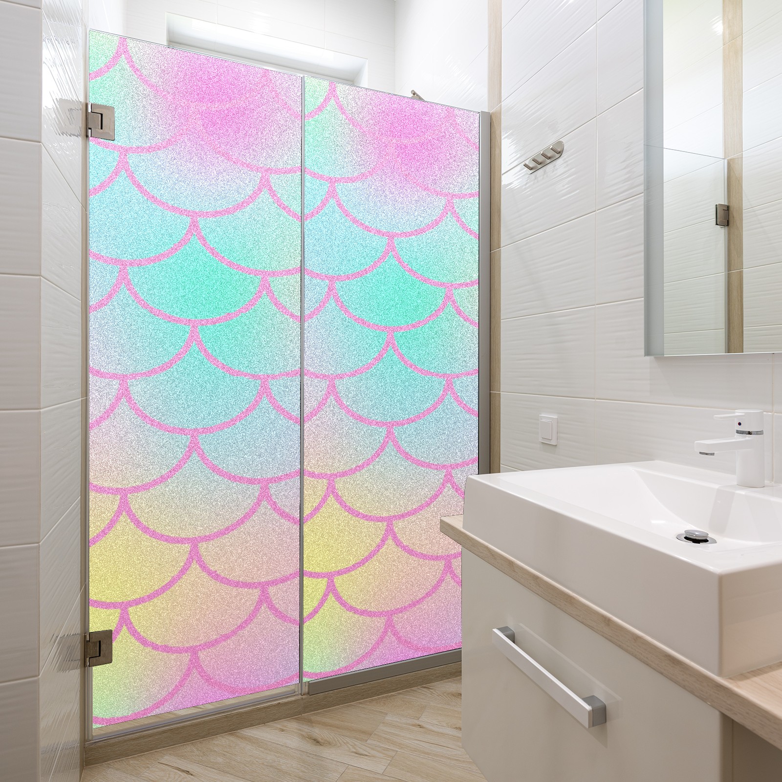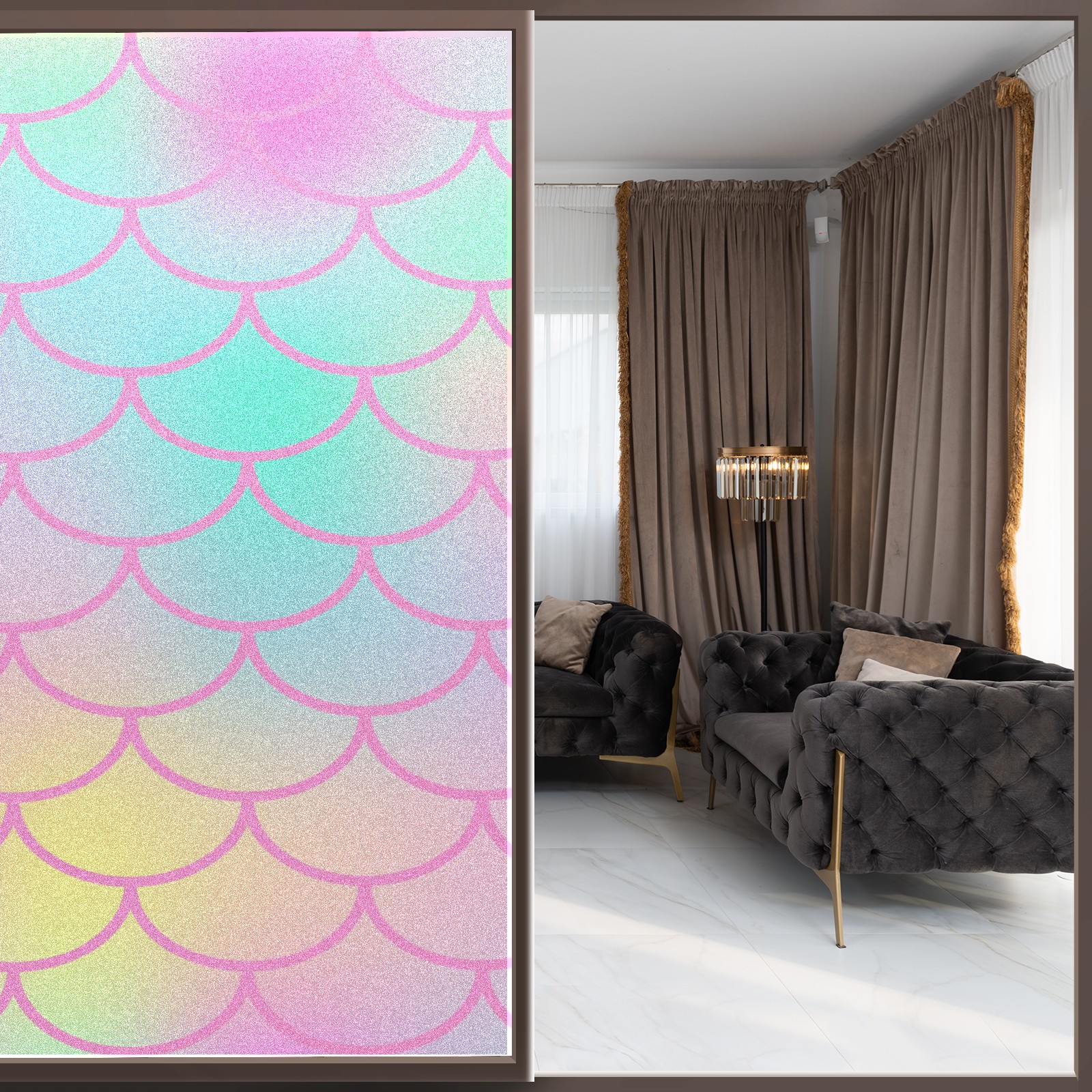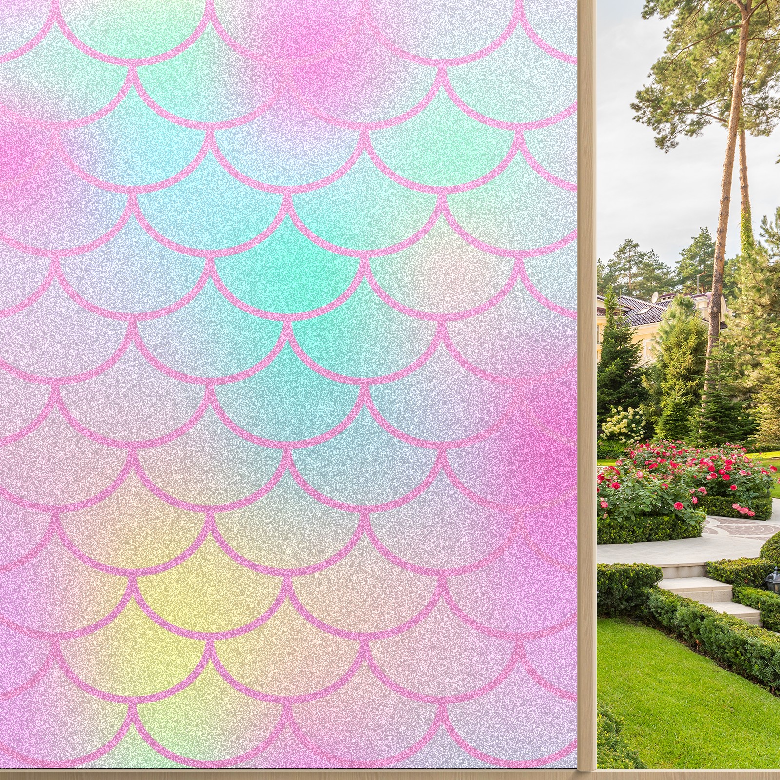 Window Privacy Film Decorative Window Decal Film Removable Static Cling Window Tint for Home Bedroom Sun Blocking Stickers 17.7 x 23.6 Inches Pink Mermaid Scales