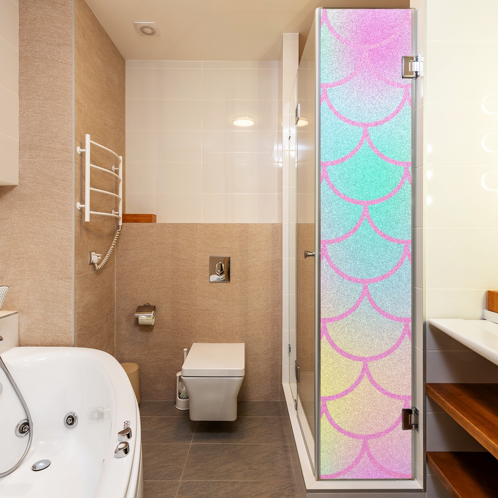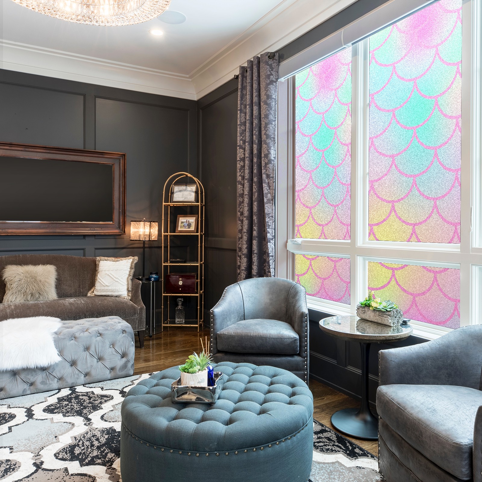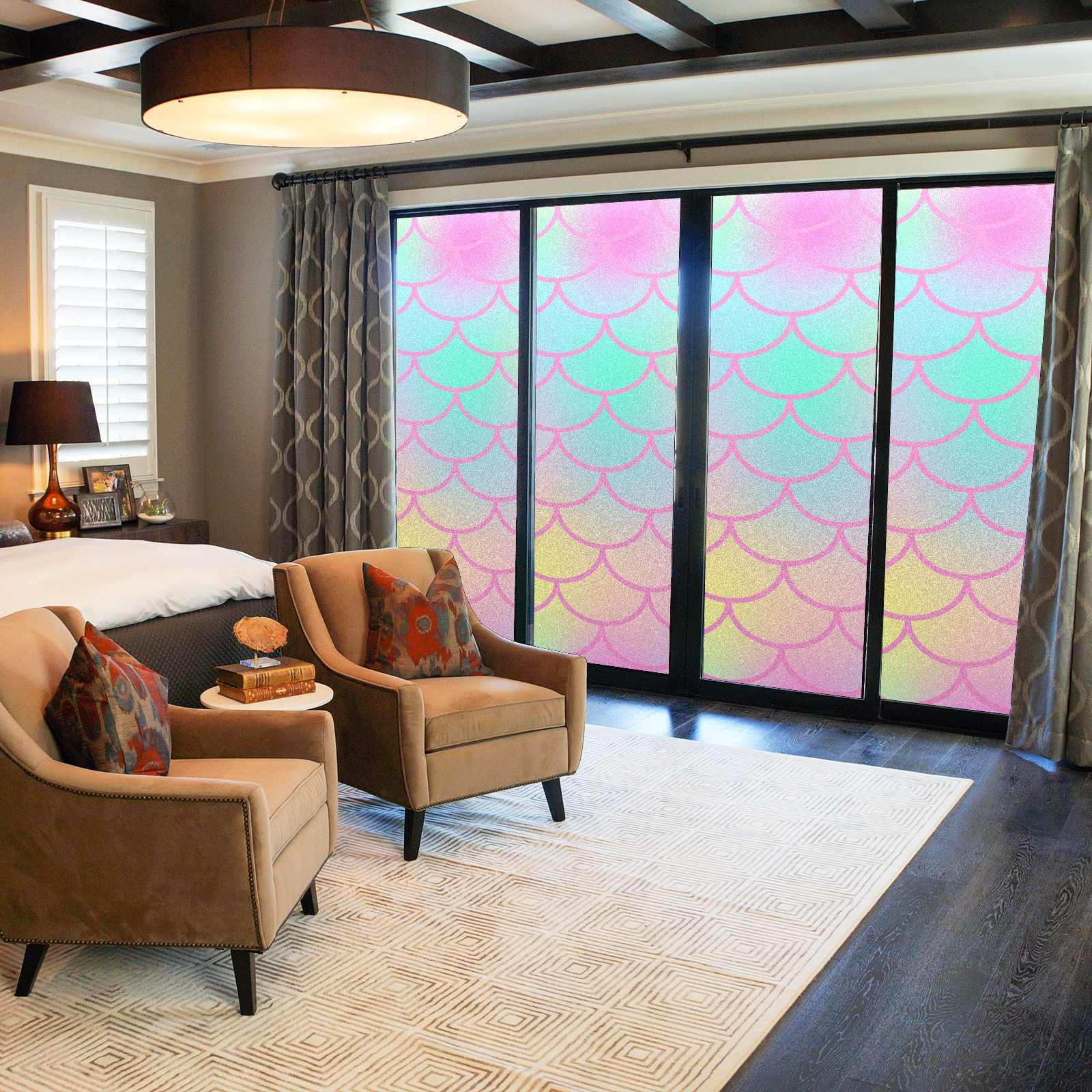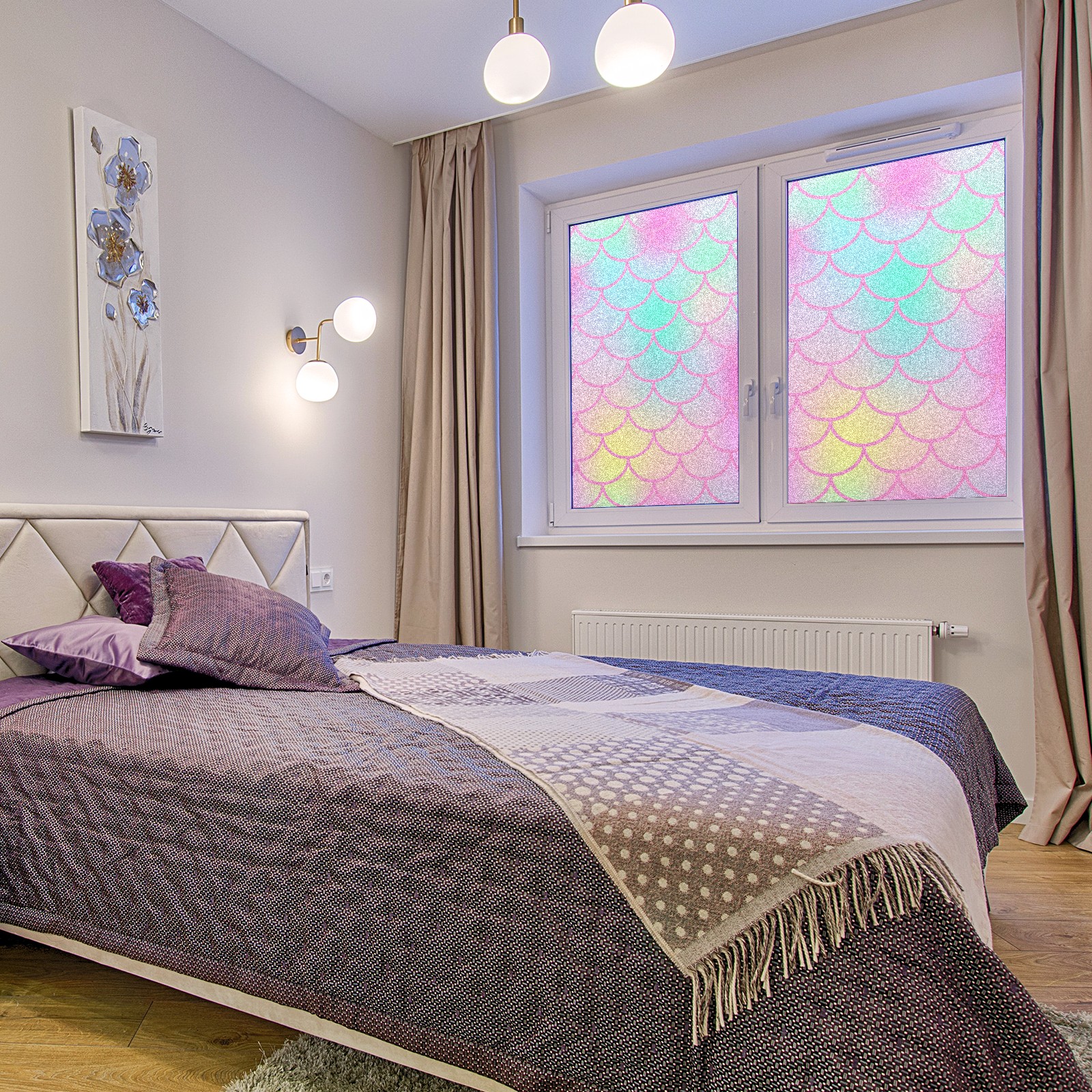 Window Privacy Film Decorative Window Decal Film Removable Static Cling Window Tint for Home Bedroom Sun Blocking Stickers 17.7 x 23.6 Inches Pink Mermaid Scales
