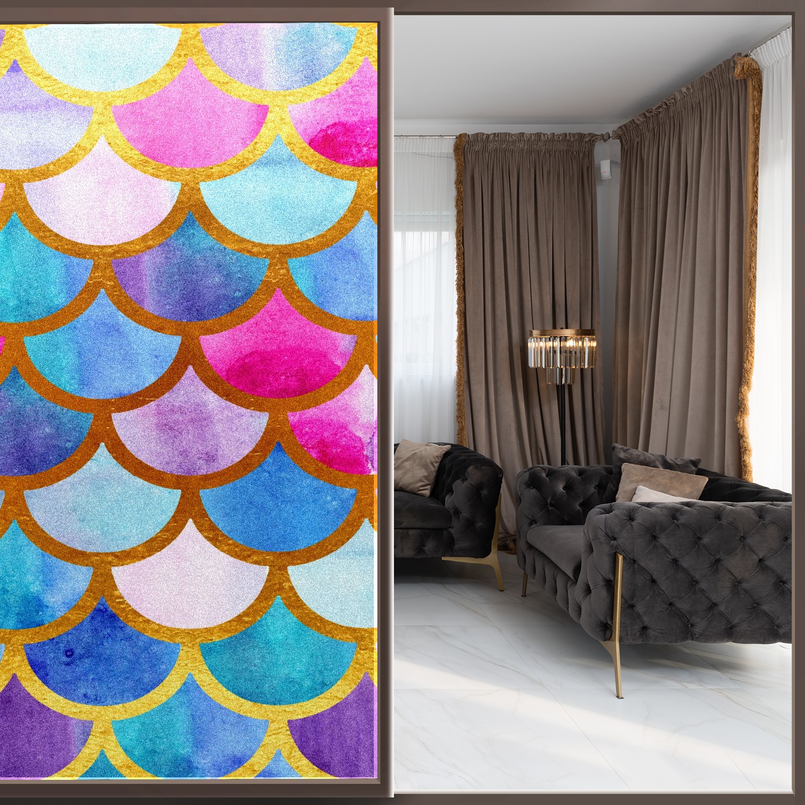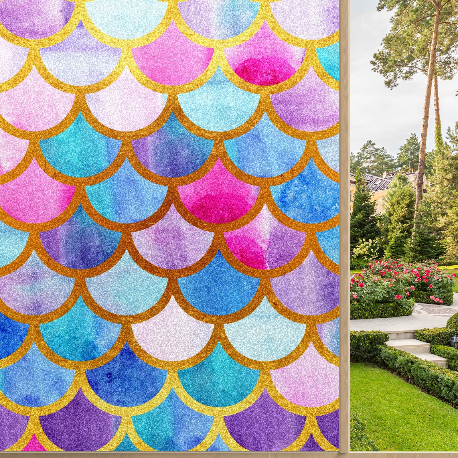 Window Privacy Film Decorative Window Decal Film Removable Static Cling Window Tint for Home Bedroom Sun Blocking Stickers 17.7 x 23.6 Inches Colorful Mermaid Fish Scales