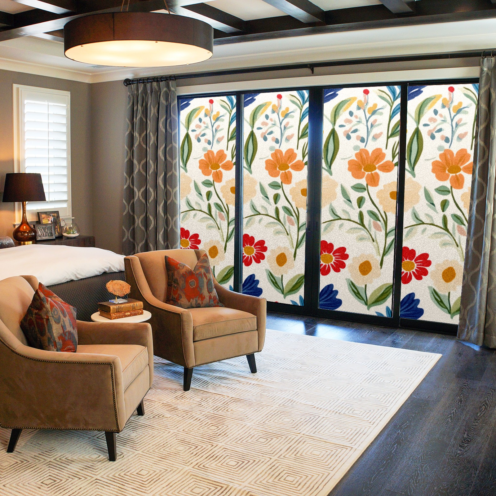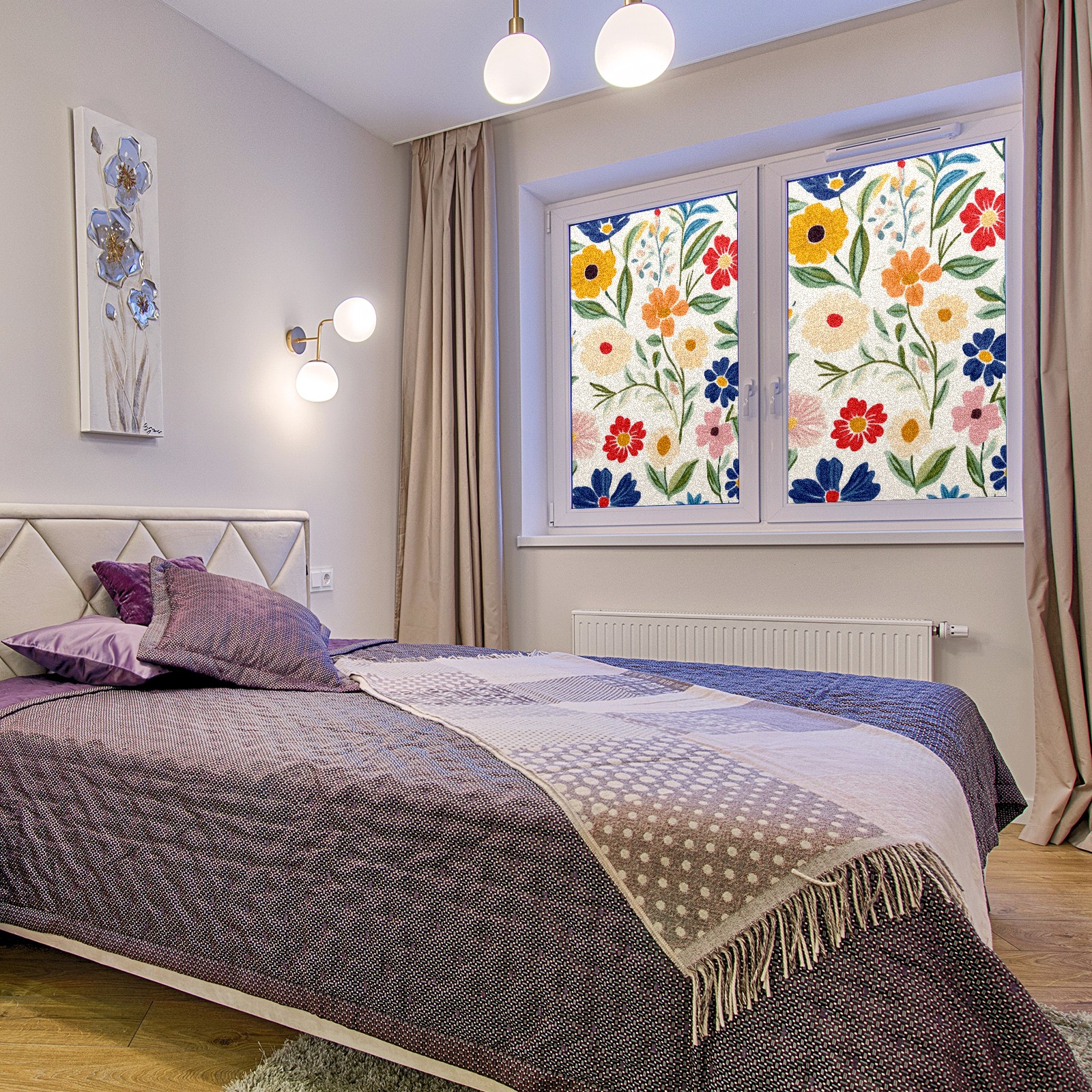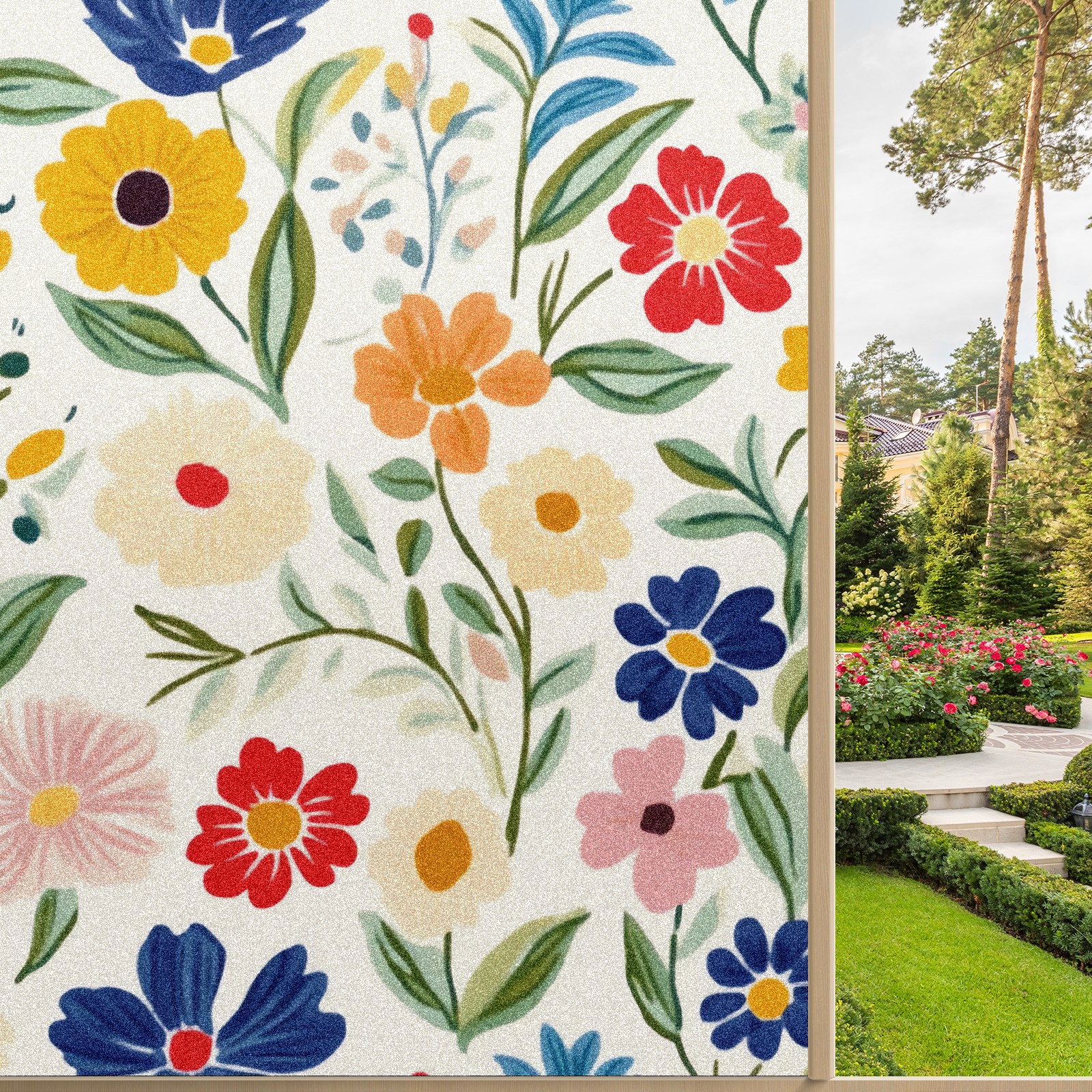 Window Privacy Film Decorative Window Decal Film Removable Static Cling Window Tint for Home Bedroom Sun Blocking Stickers 17.7 x 23.6 Inches Simple Colorful Spring Flowers