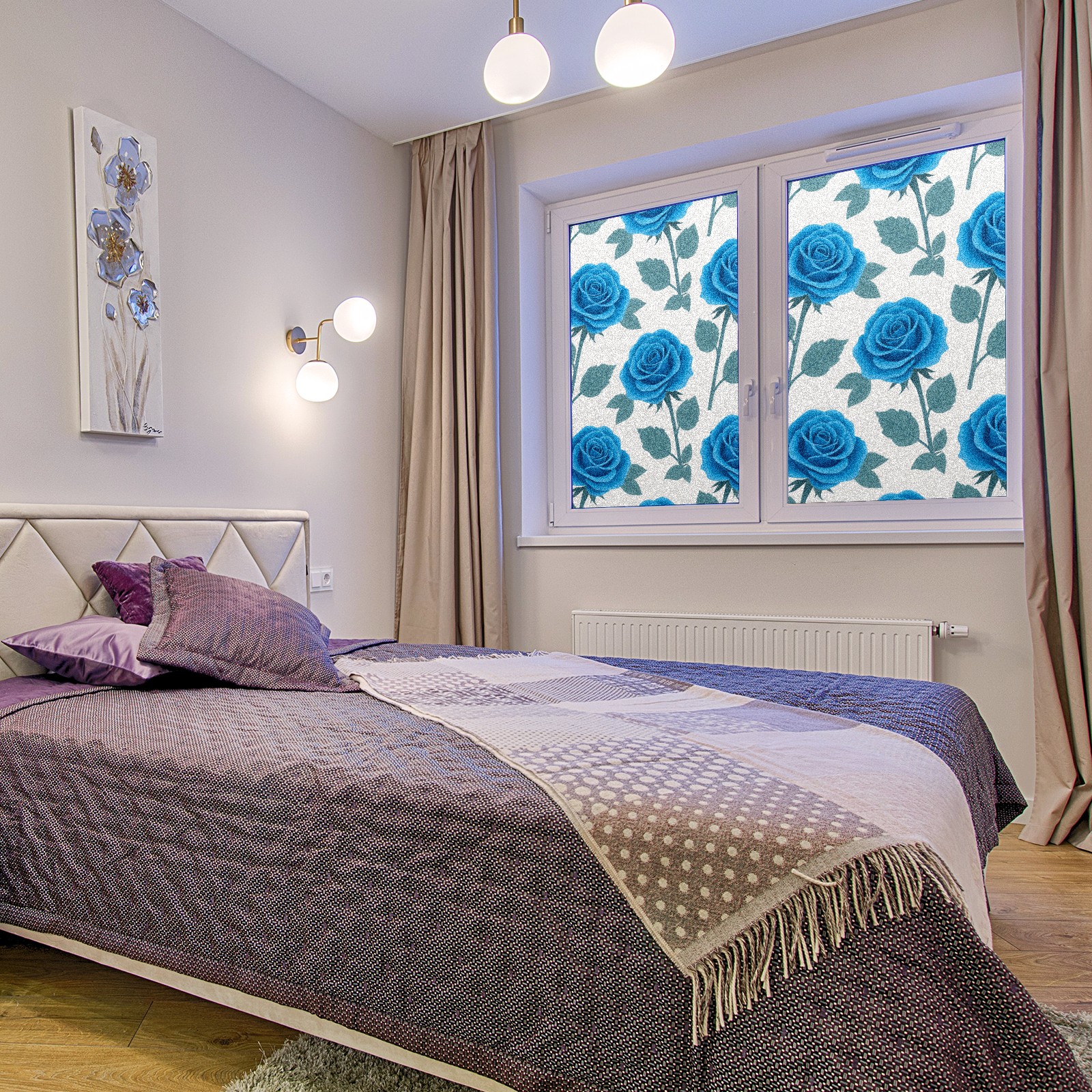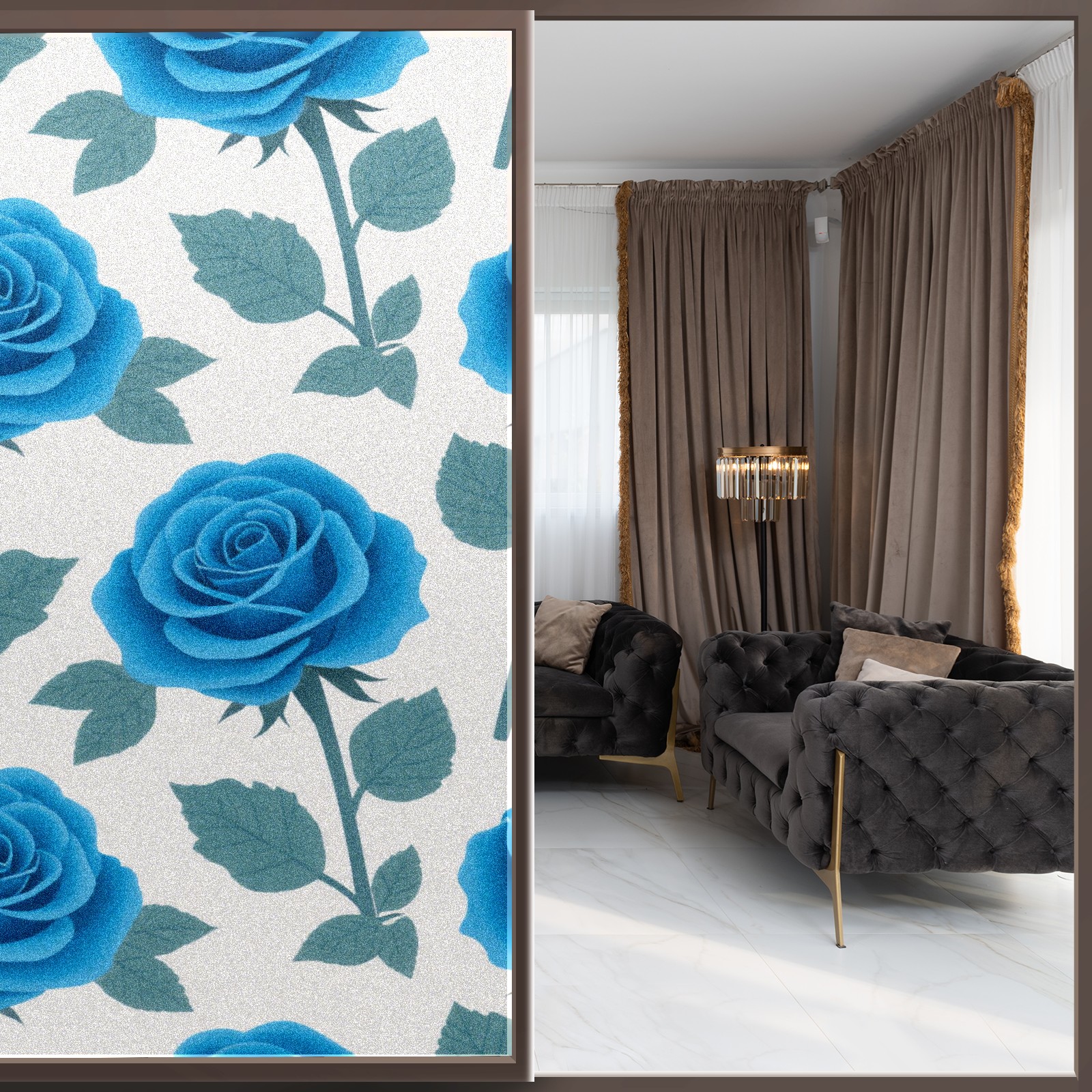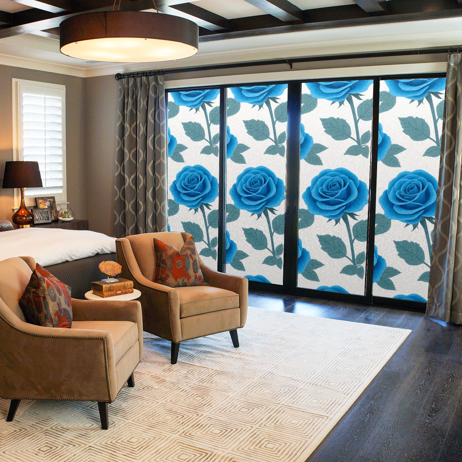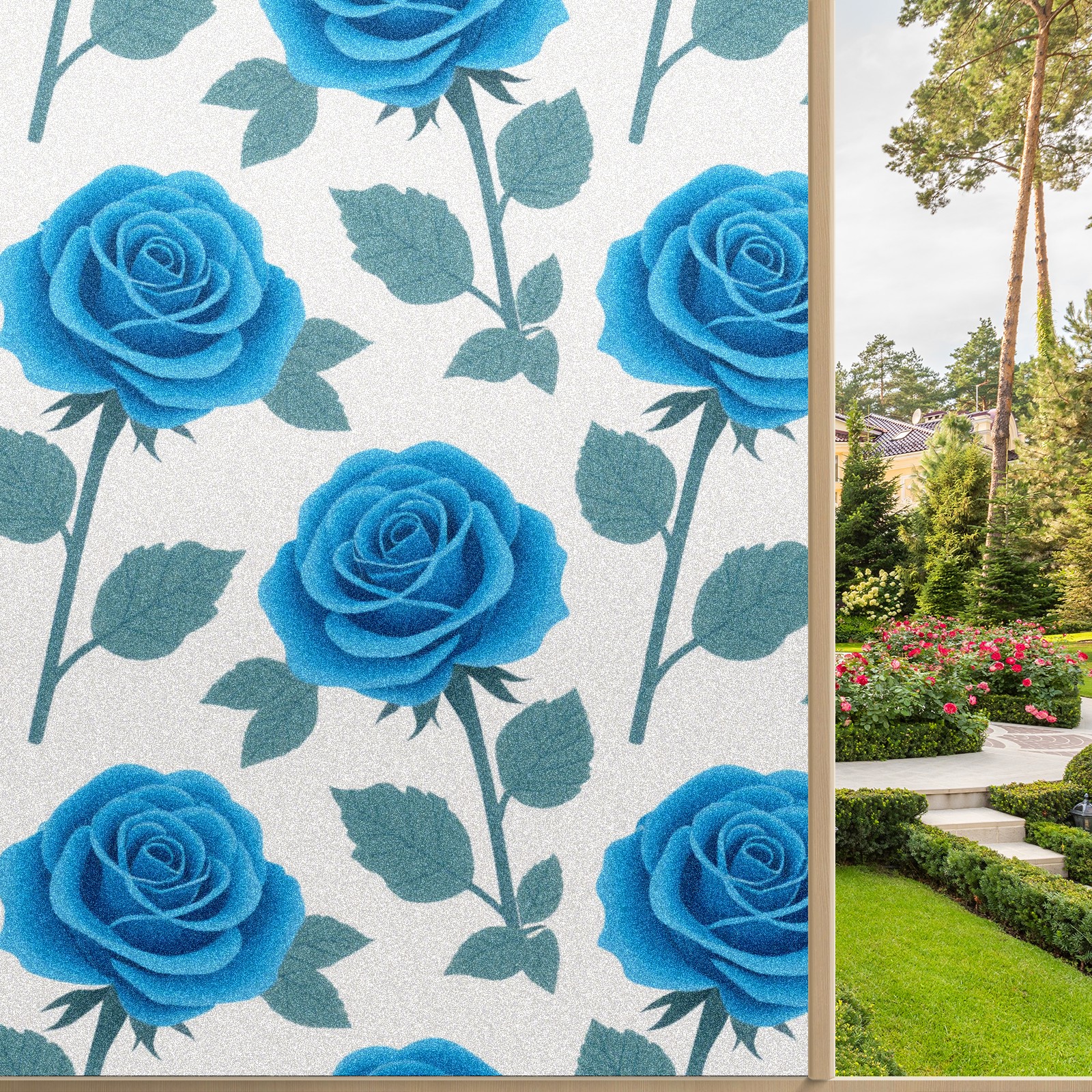 Window Privacy Film Decorative Window Decal Film Removable Static Cling Window Tint for Home Bedroom Sun Blocking Stickers 17.7 x 23.6 Inches Blue Rose
