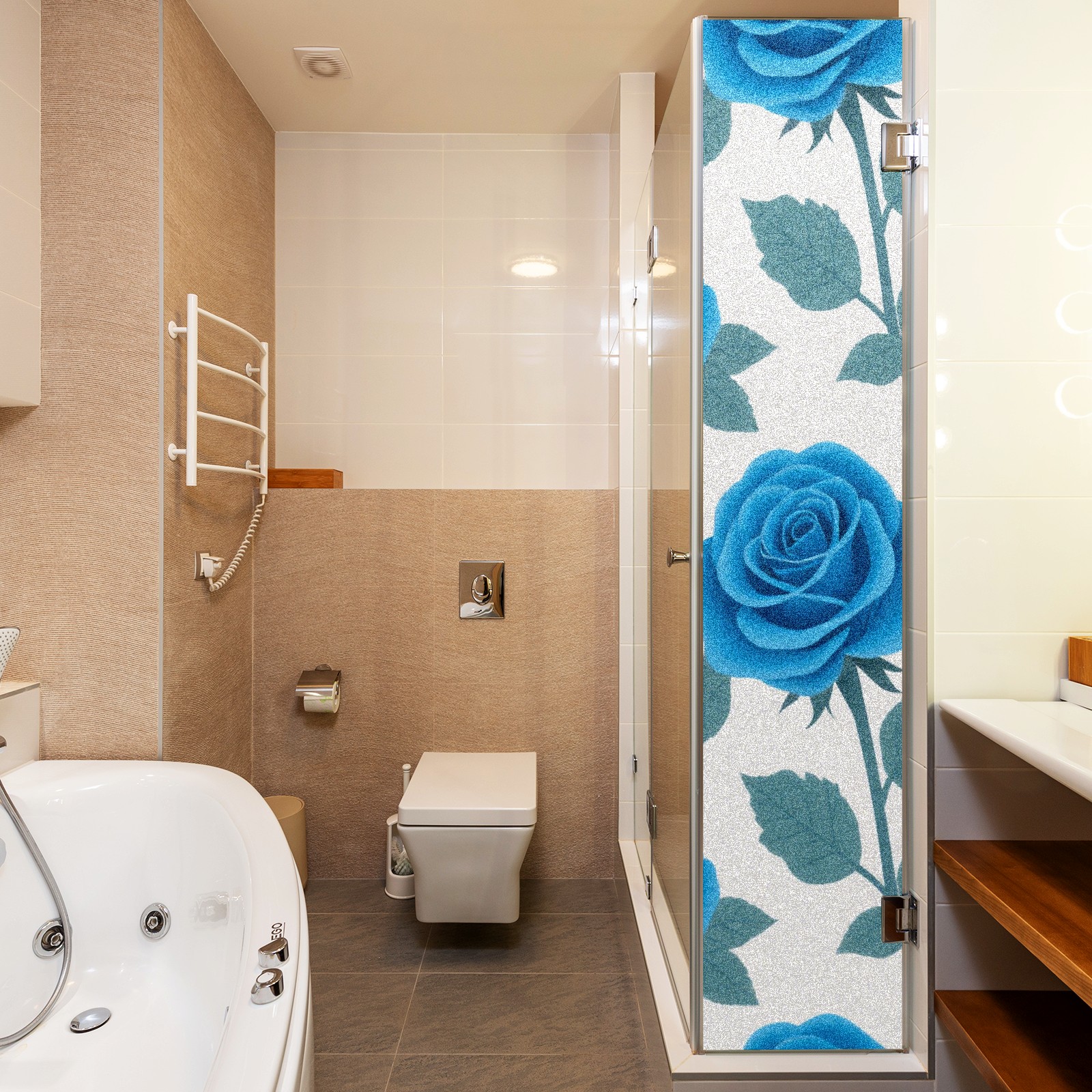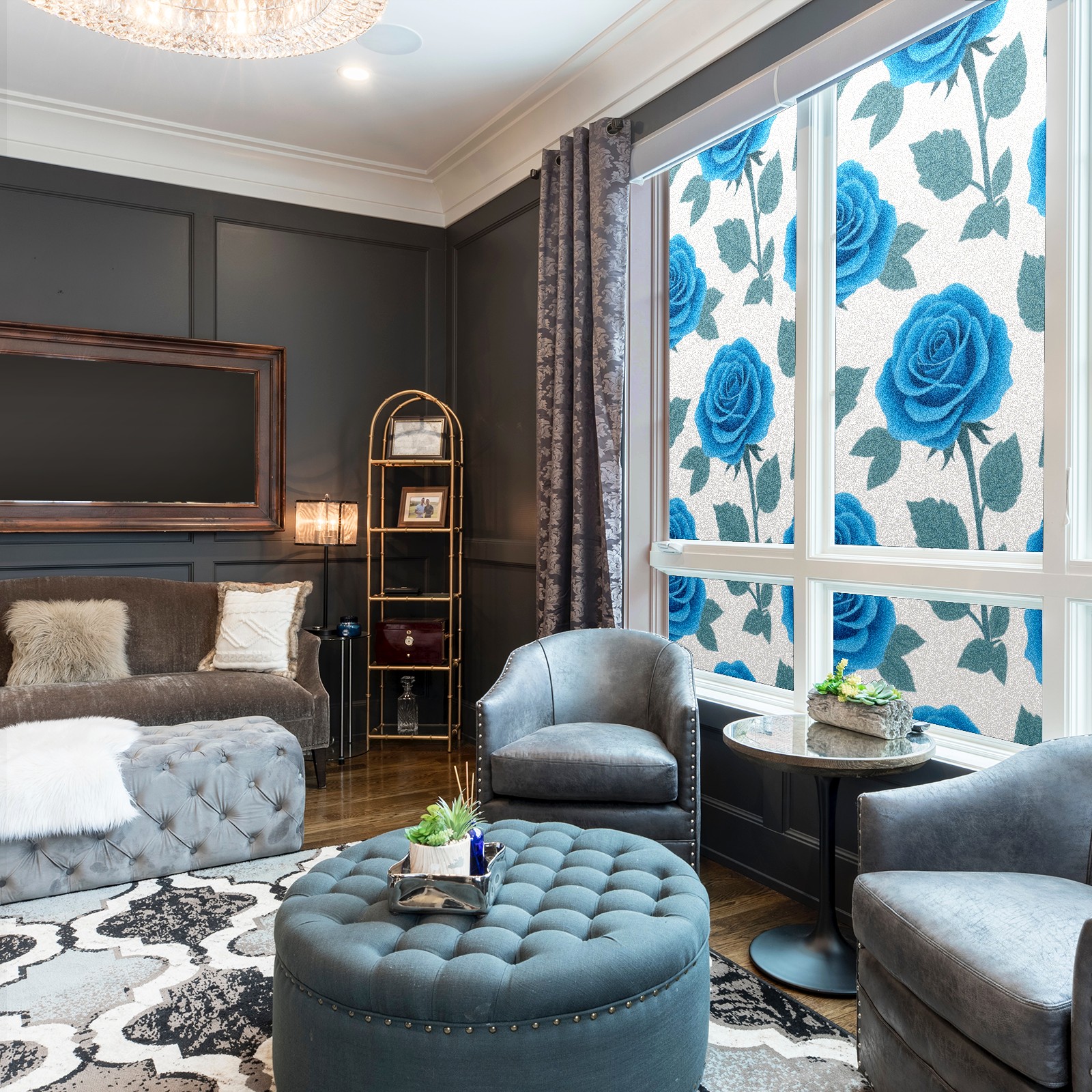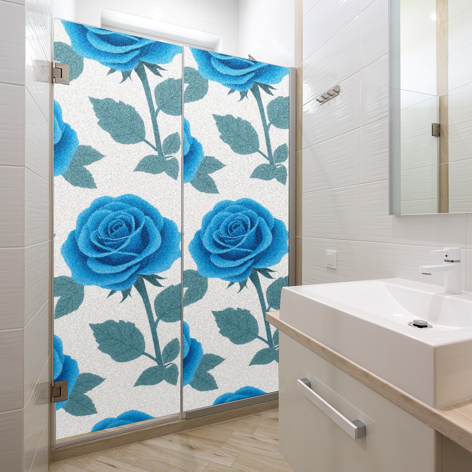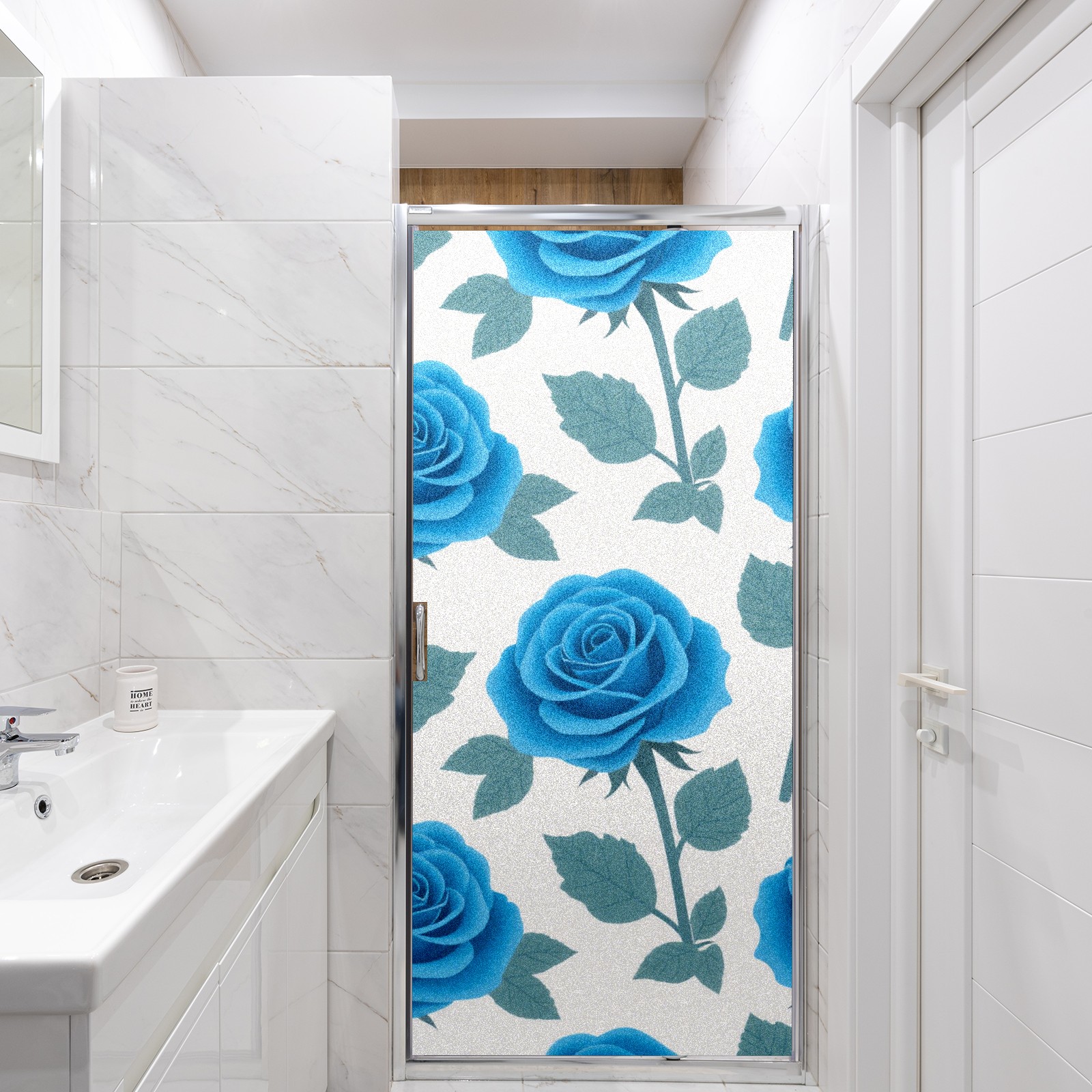 Window Privacy Film Decorative Window Decal Film Removable Static Cling Window Tint for Home Bedroom Sun Blocking Stickers 17.7 x 23.6 Inches Blue Rose