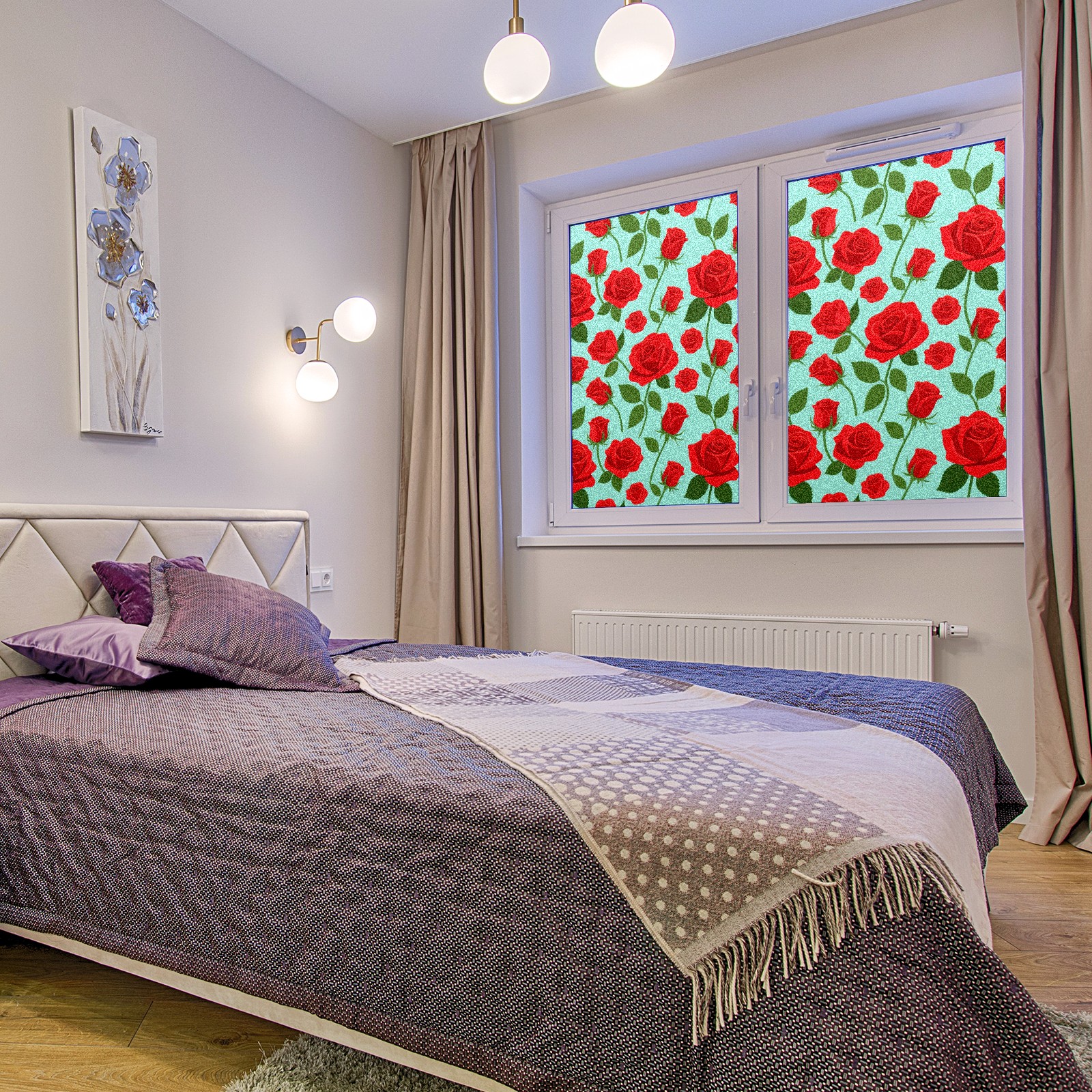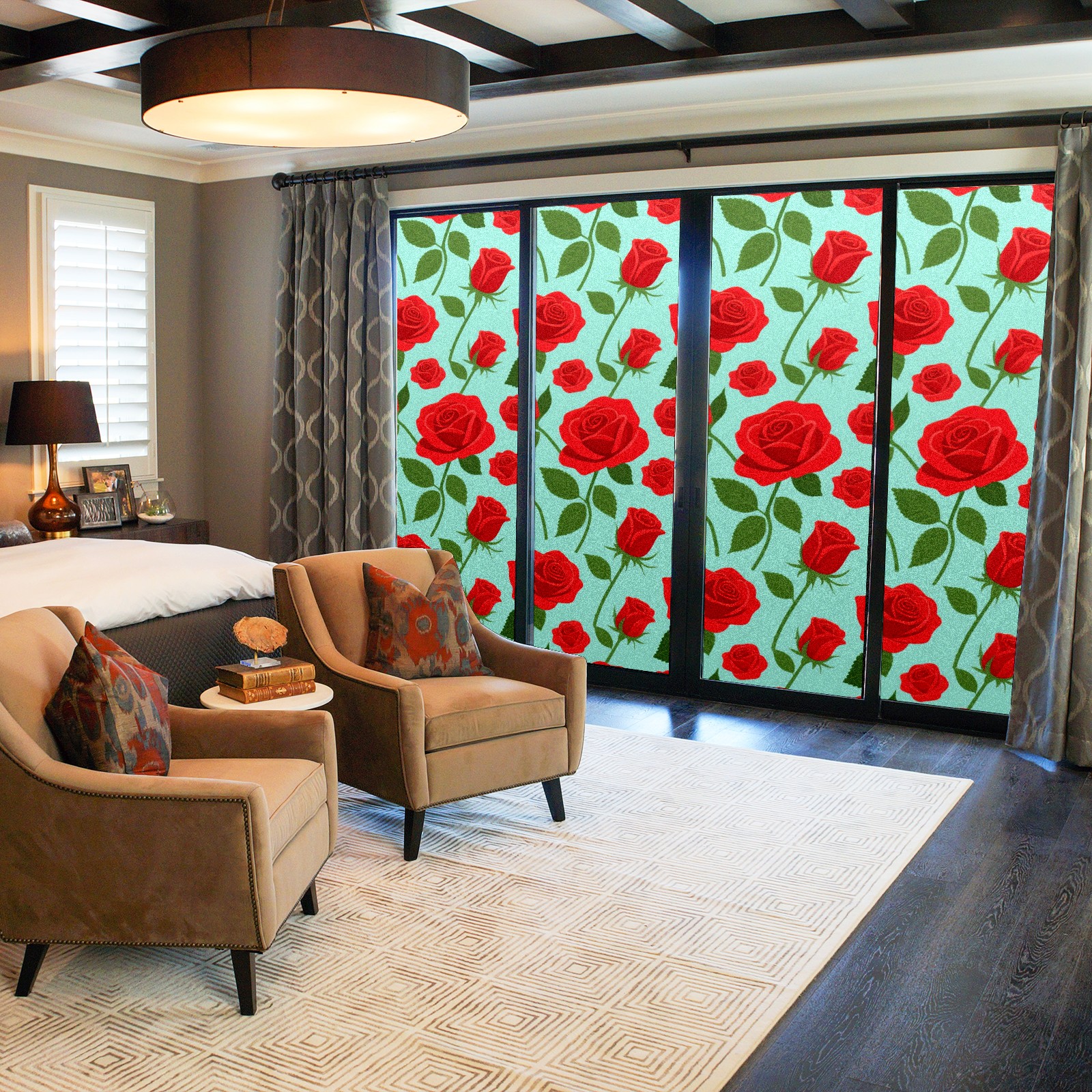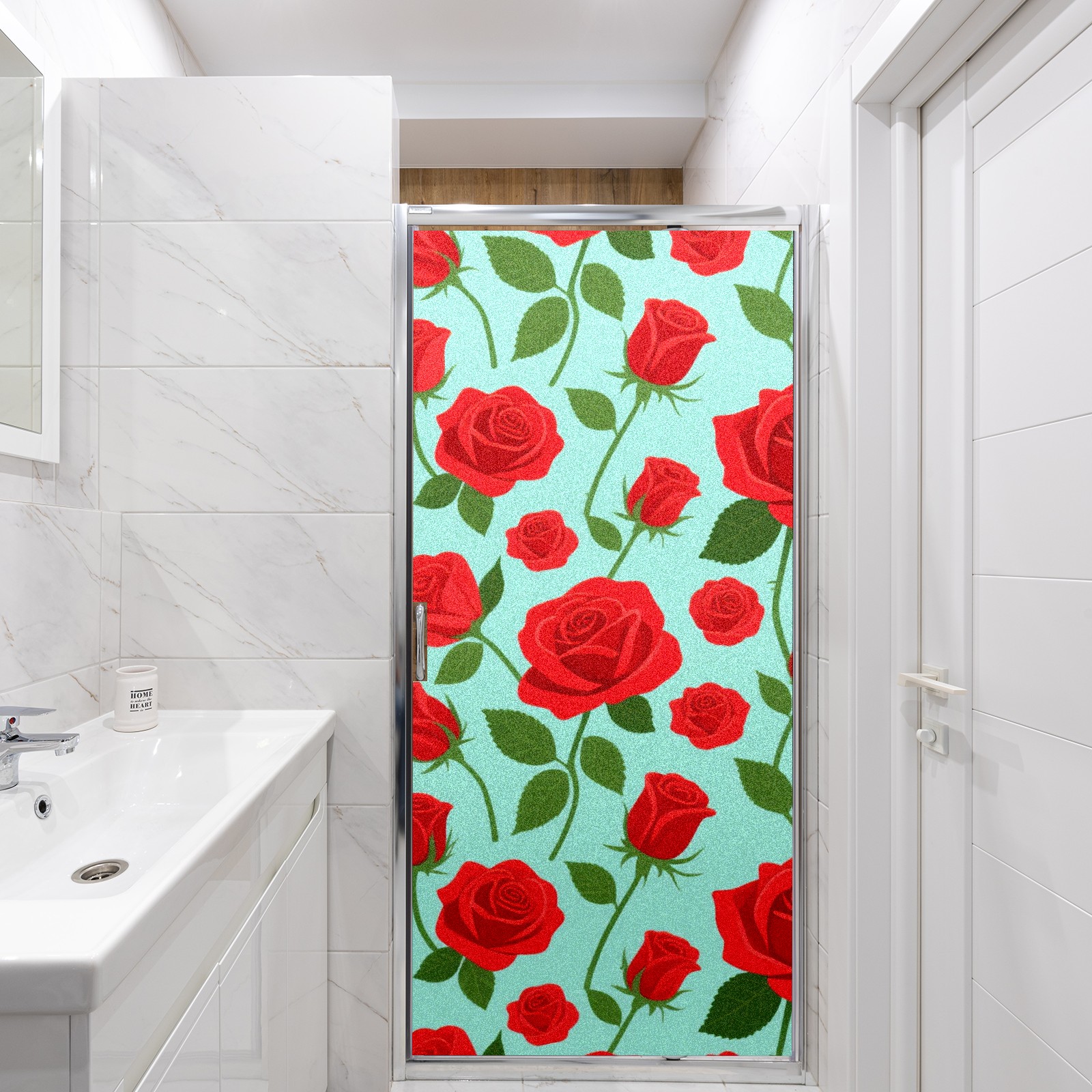 Window Privacy Film Decorative Window Decal Film Removable Static Cling Window Tint for Home Bedroom Sun Blocking Stickers 17.7 x 23.6 Inches Red Rose