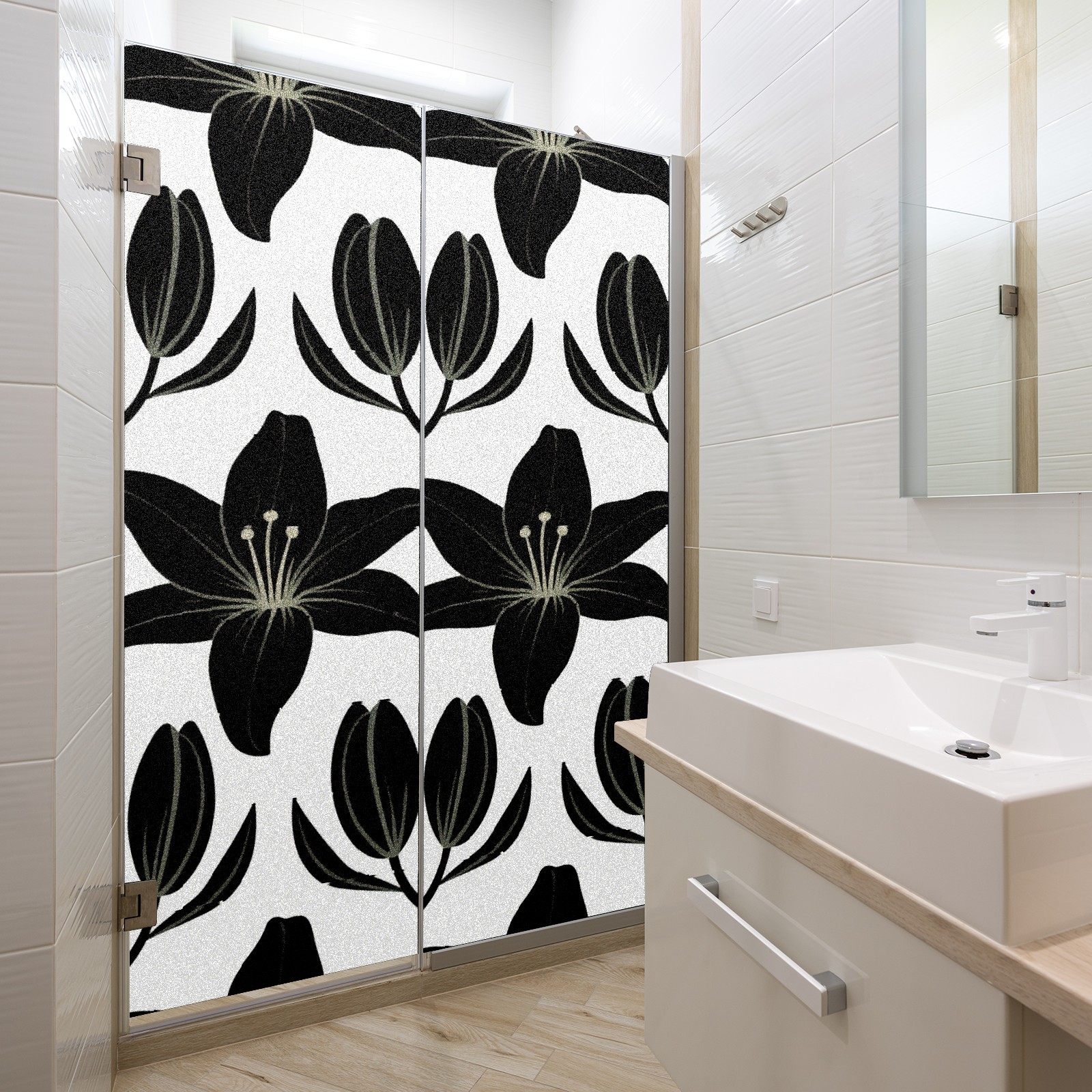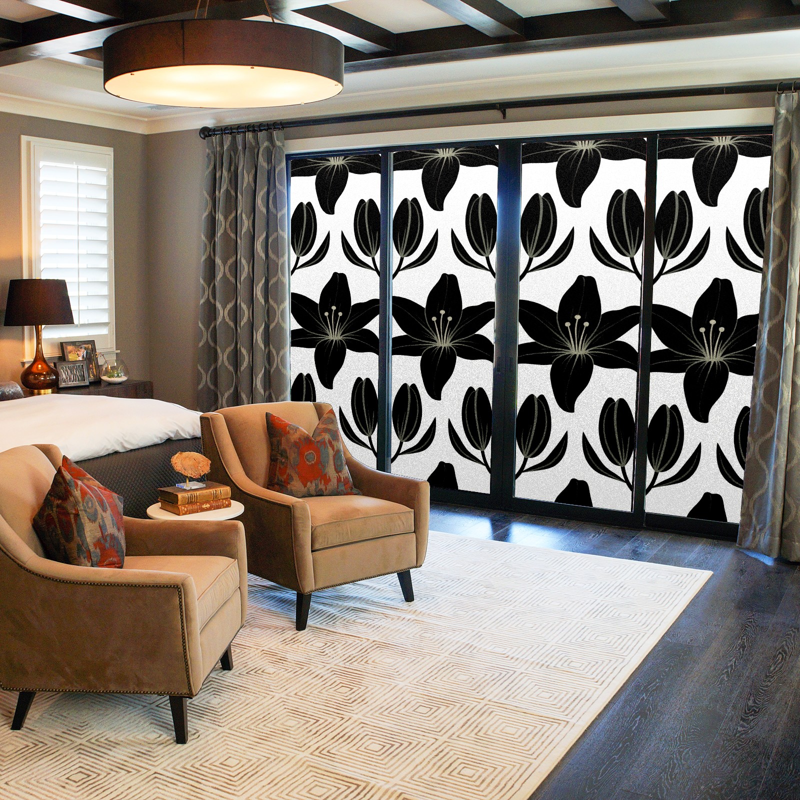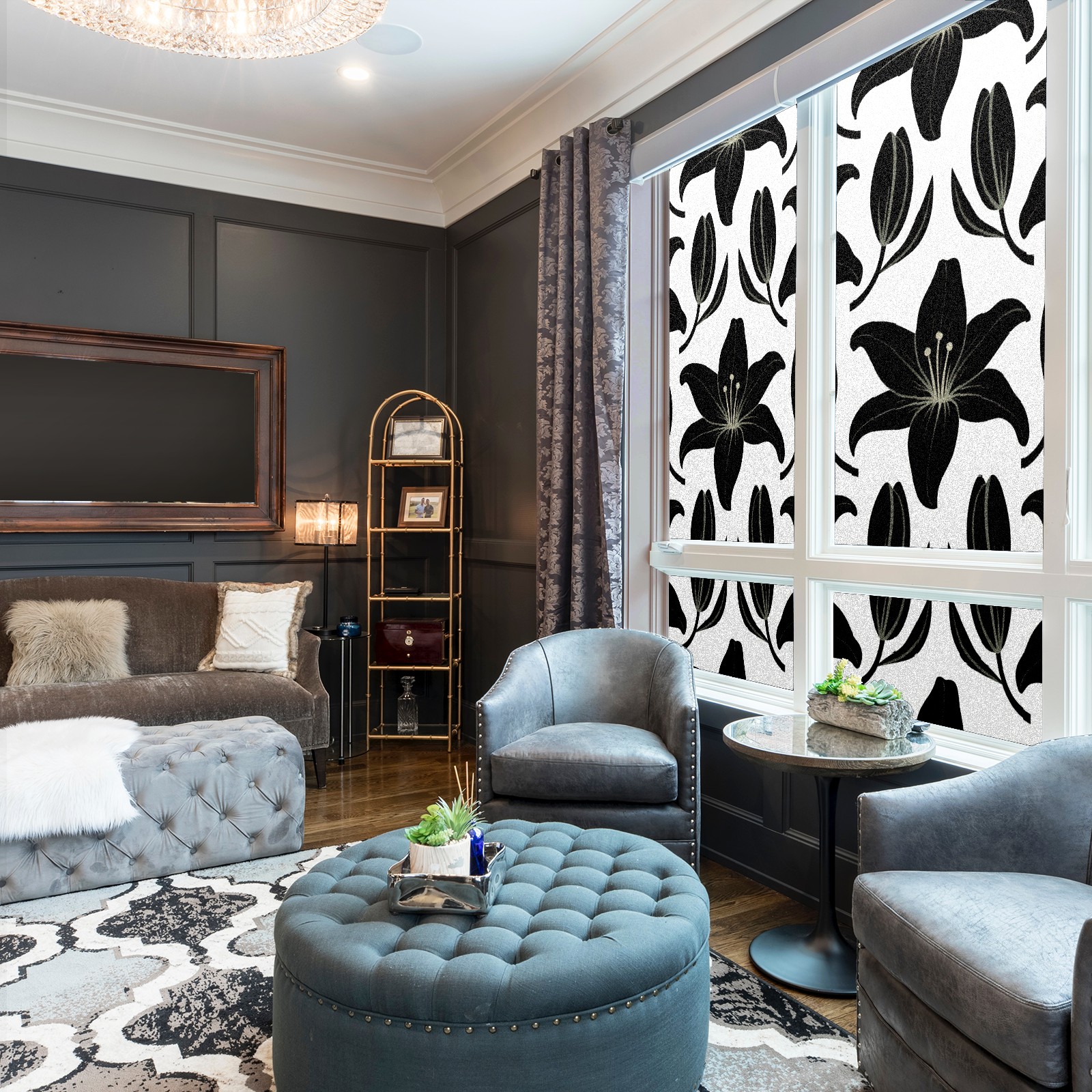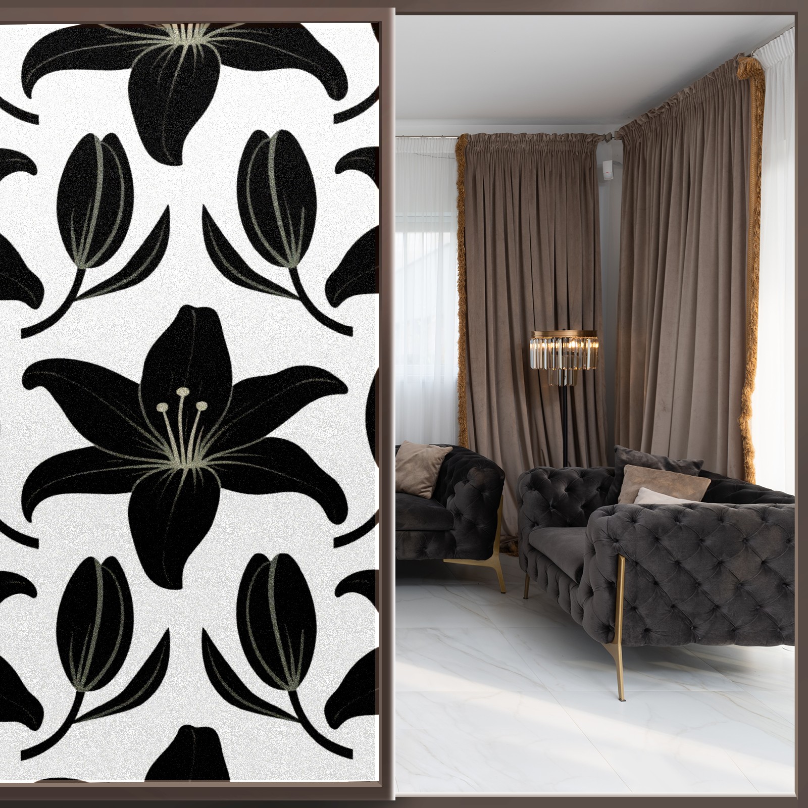 Window Privacy Film Decorative Window Decal Film Removable Static Cling Window Tint for Home Bedroom Sun Blocking Stickers 17.7 x 23.6 Inches Black Lily