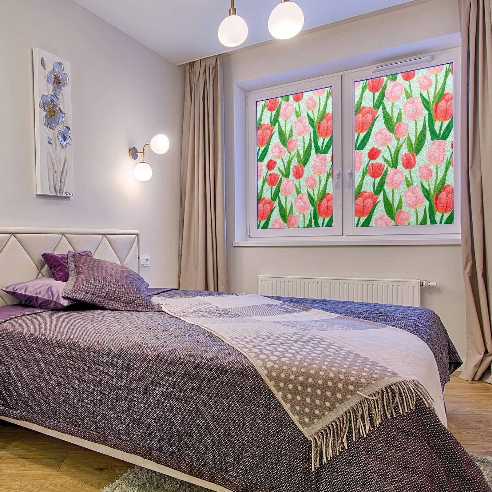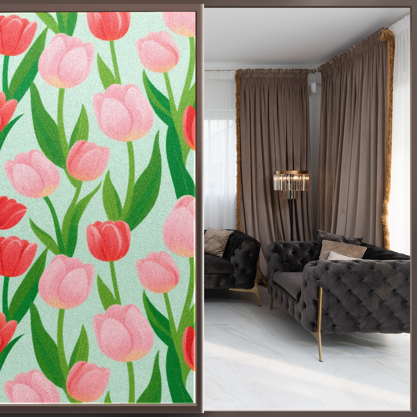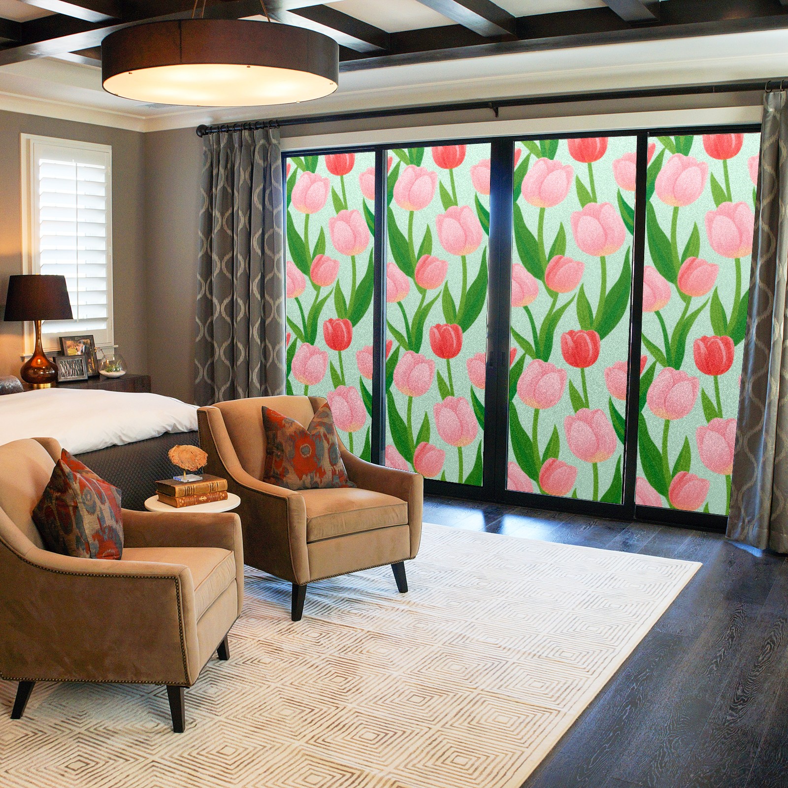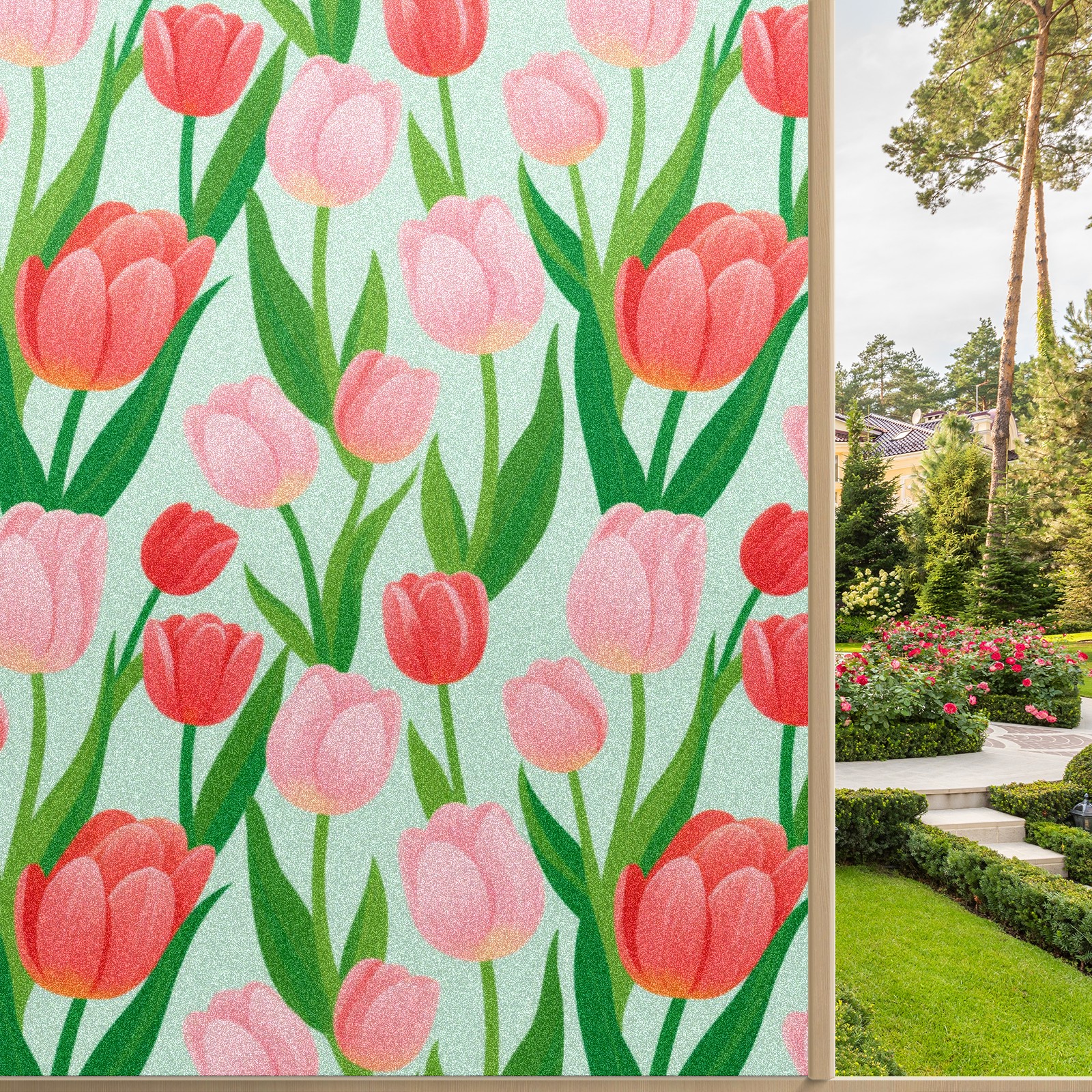 Window Privacy Film Decorative Window Decal Film Removable Static Cling Window Tint for Home Bedroom Sun Blocking Stickers 17.7 x 23.6 Inches Tulip