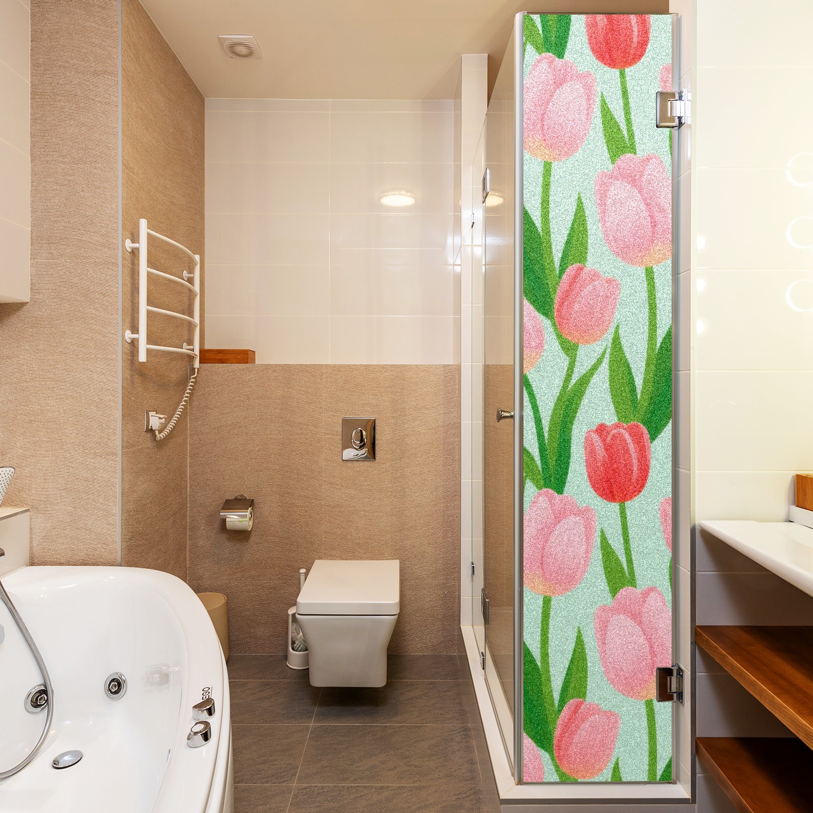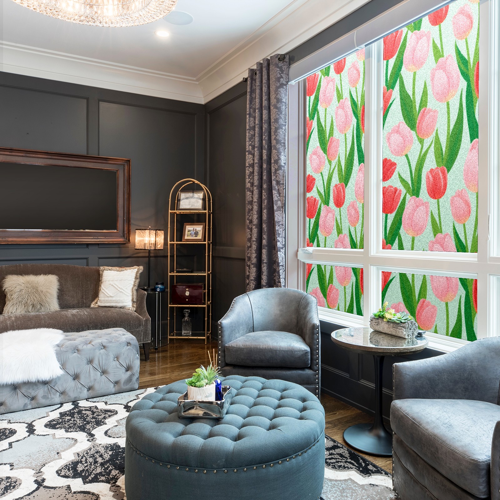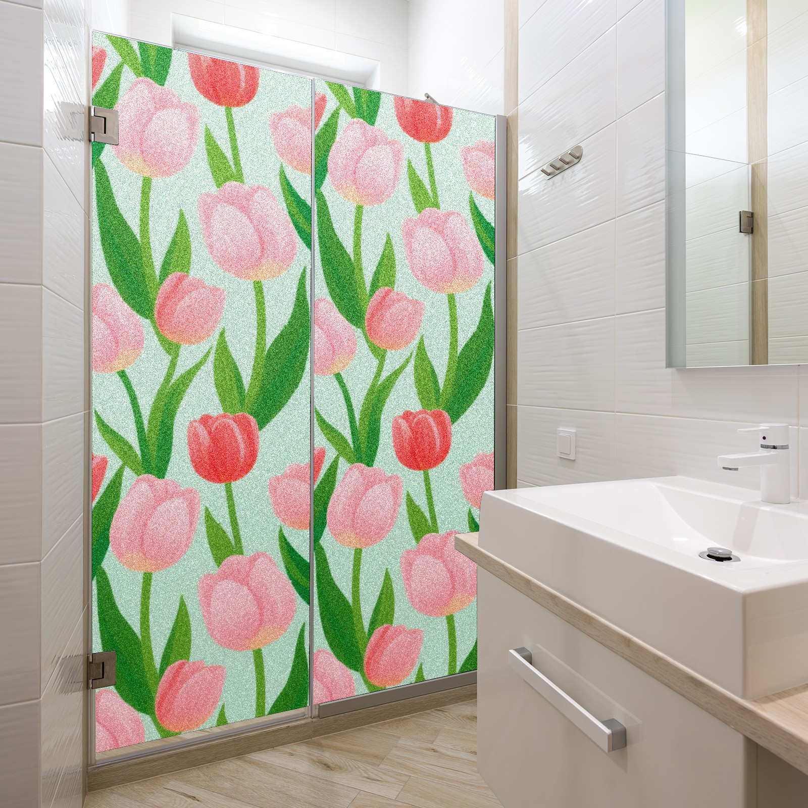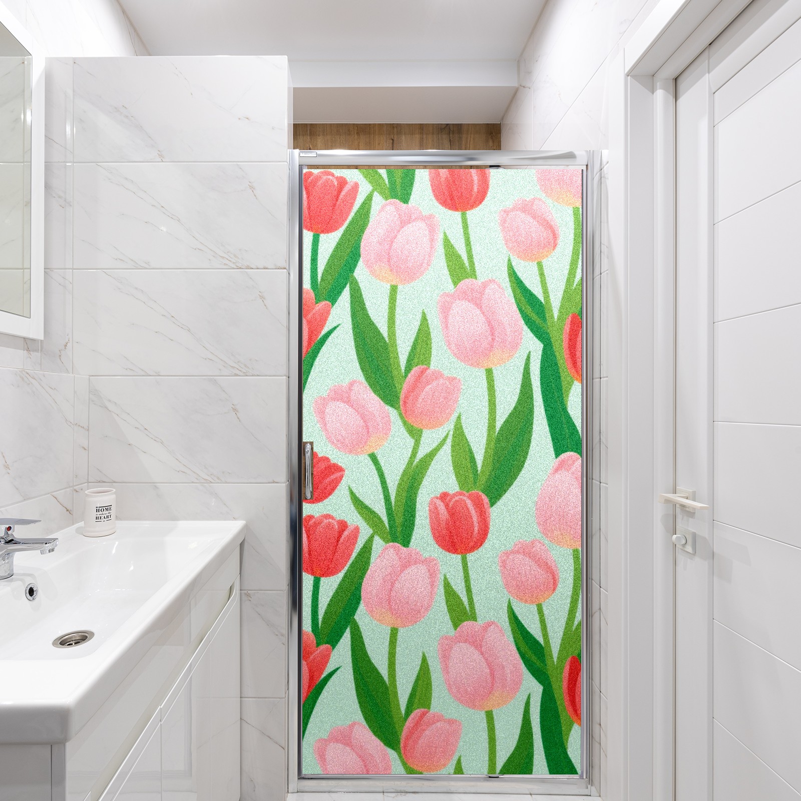 Window Privacy Film Decorative Window Decal Film Removable Static Cling Window Tint for Home Bedroom Sun Blocking Stickers 17.7 x 23.6 Inches Tulip