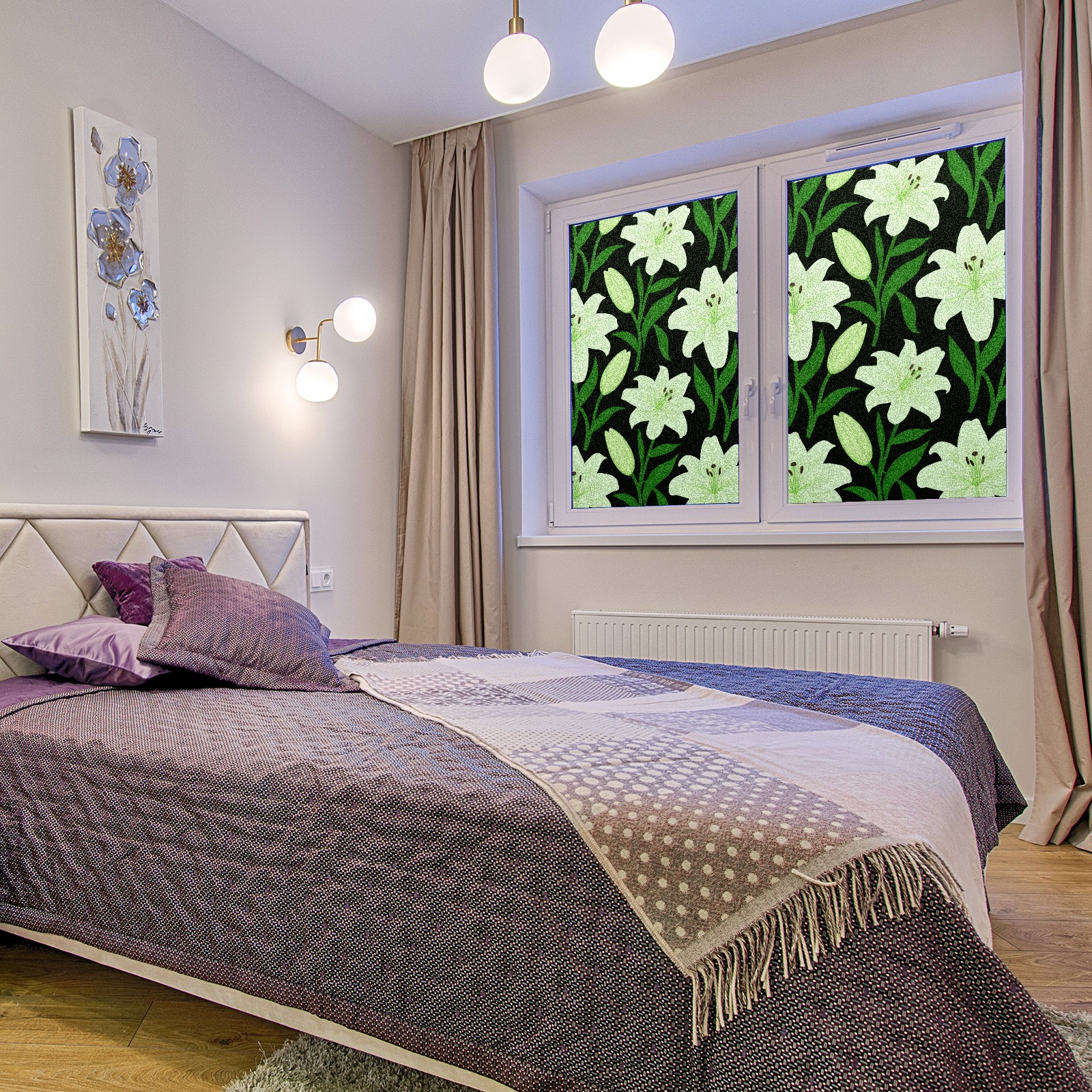 Window Privacy Film Decorative Window Decal Film Removable Static Cling Window Tint for Home Bedroom Sun Blocking Stickers 17.7 x 23.6 Inches Lily