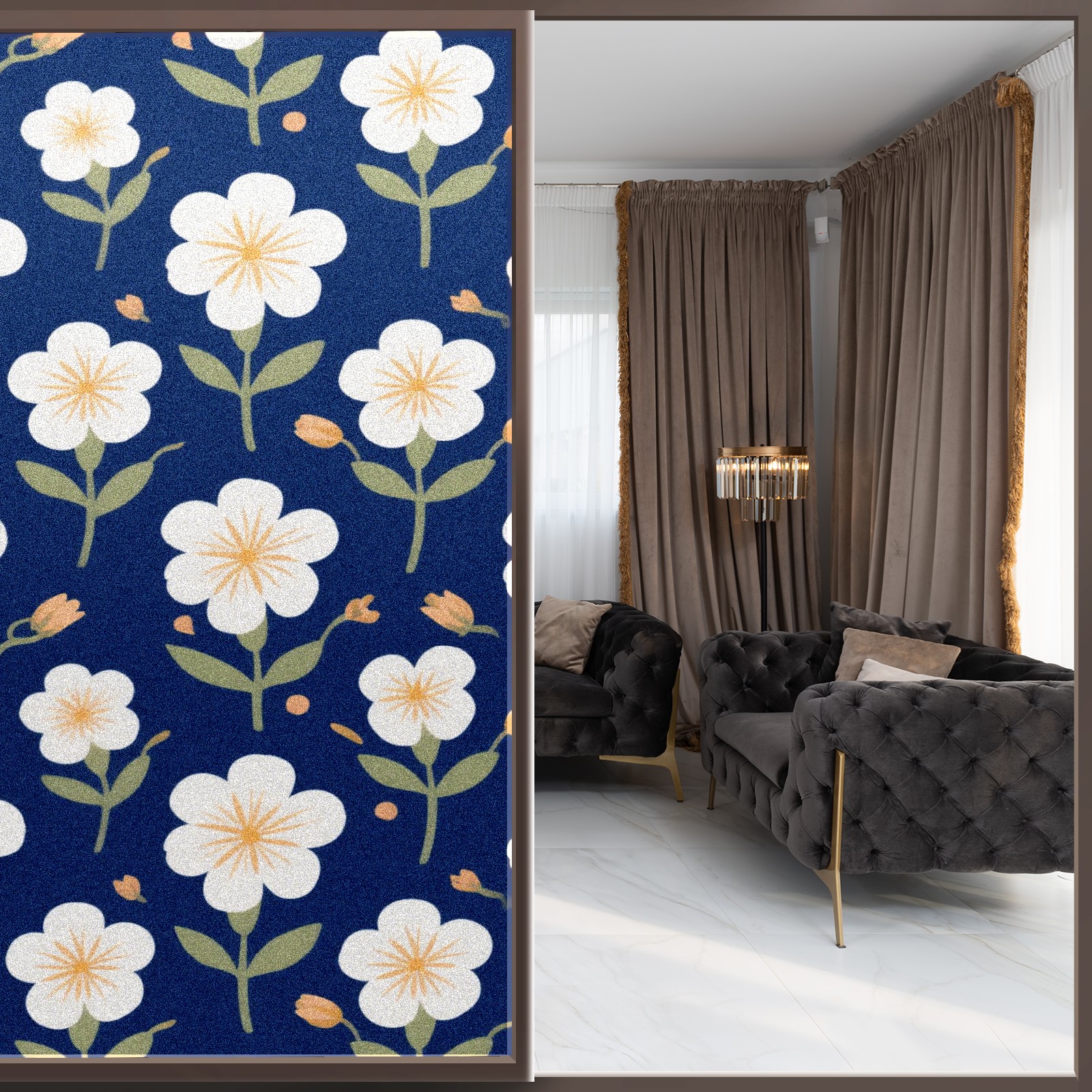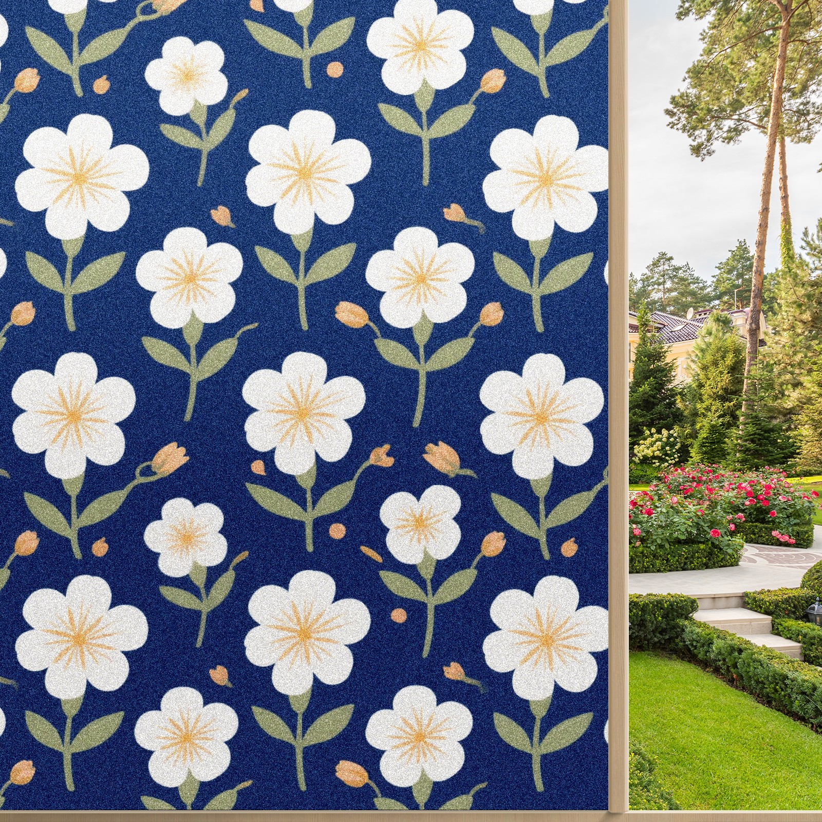 Window Privacy Film Decorative Window Decal Film Removable Static Cling Window Tint for Home Bedroom Sun Blocking Stickers 17.7 x 23.6 Inches 花纹28