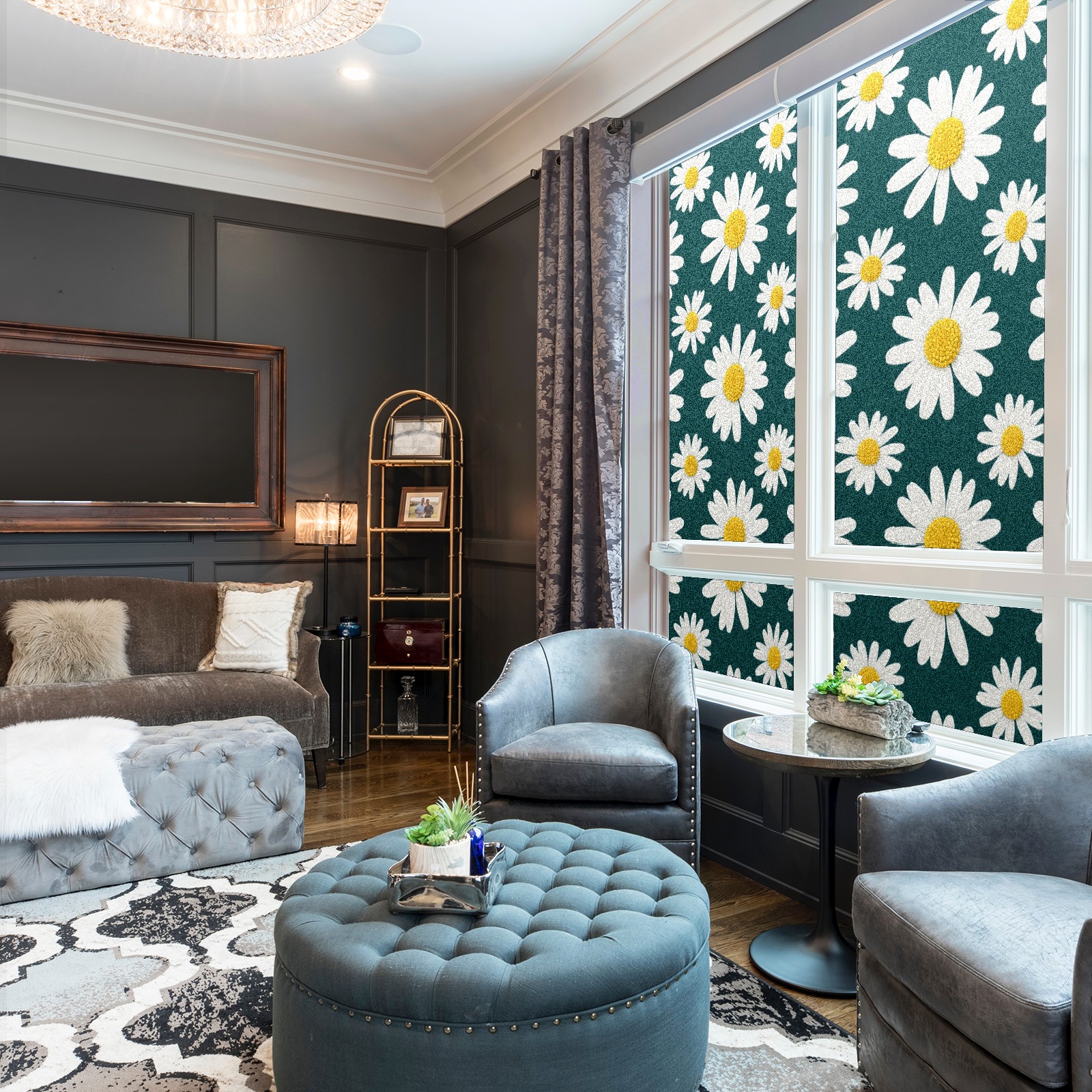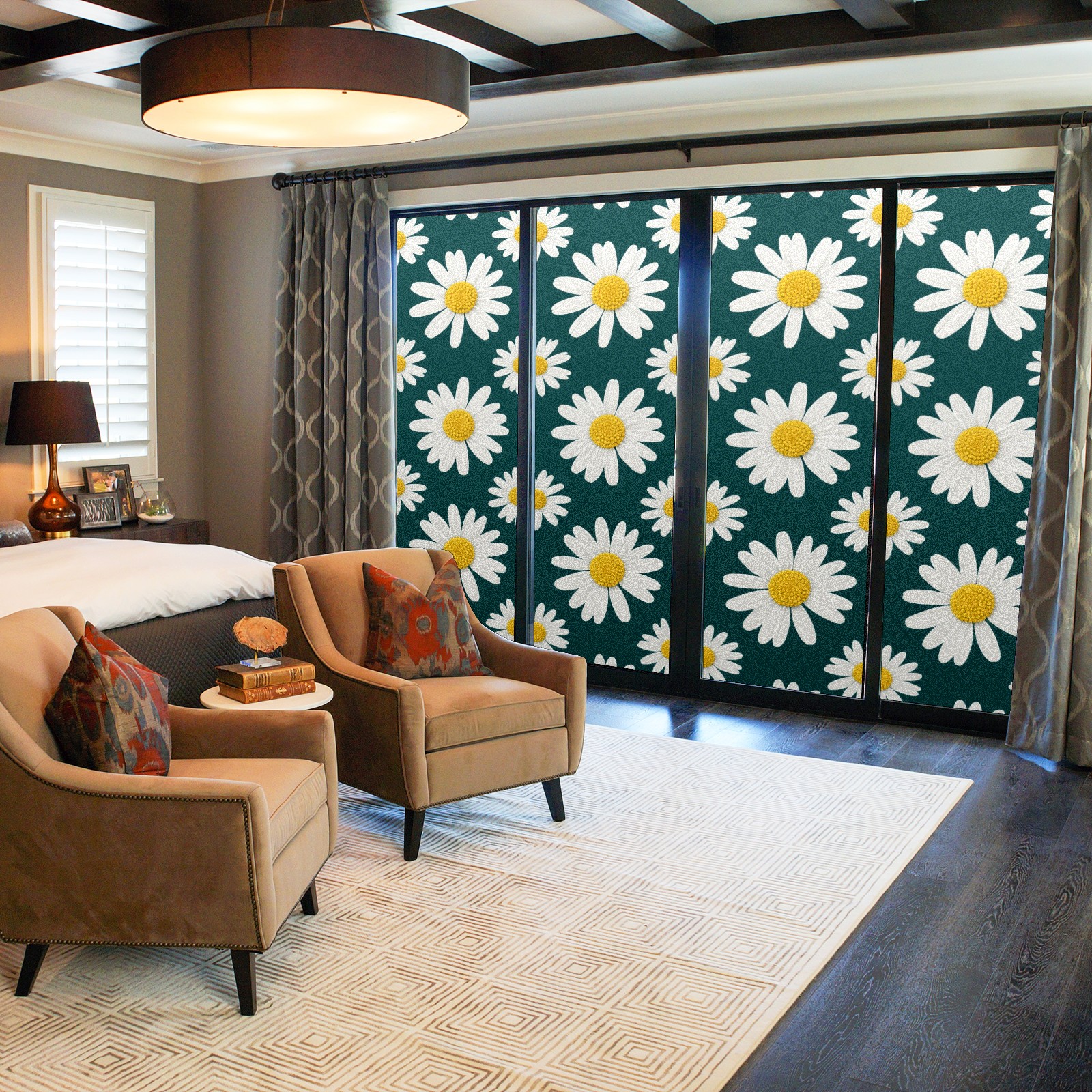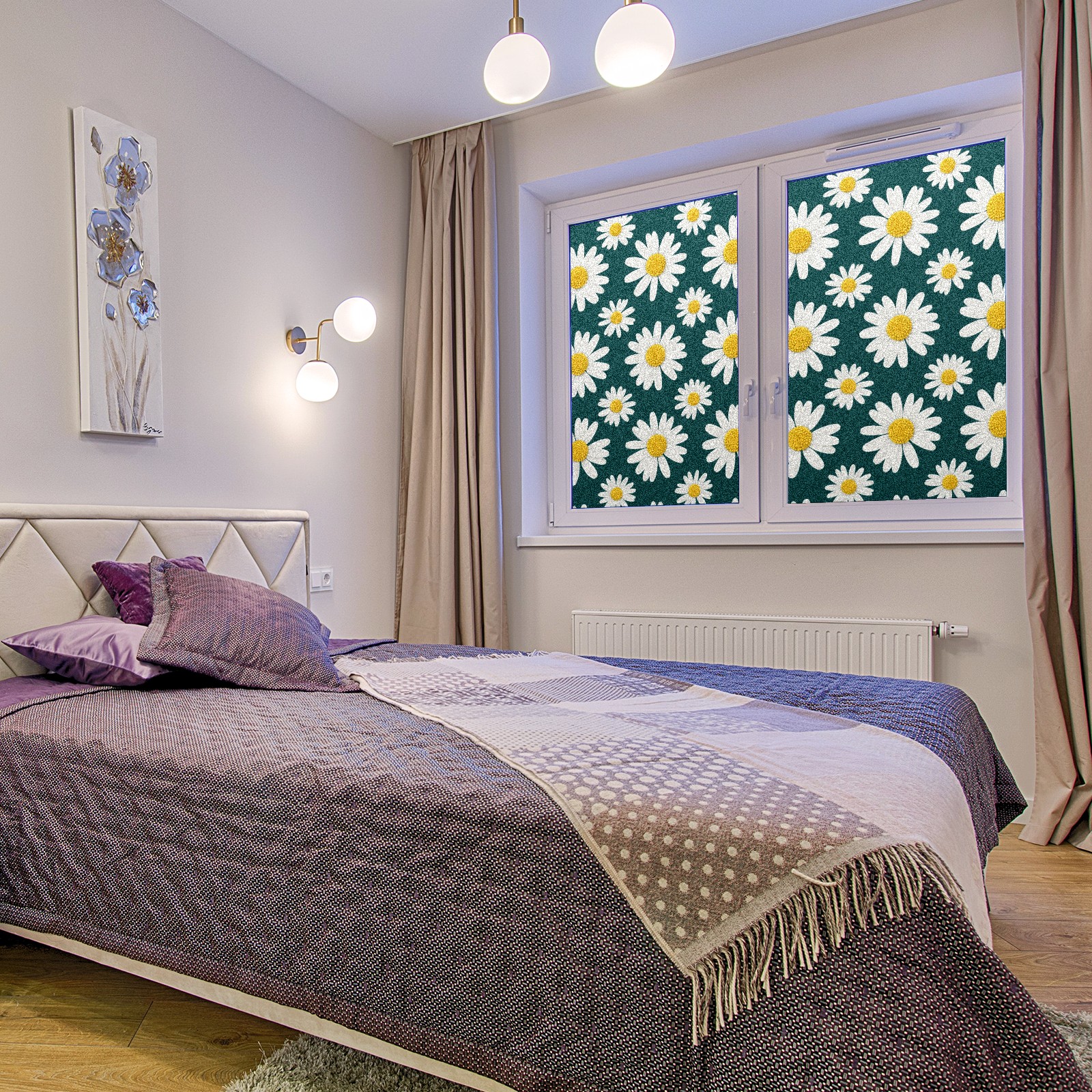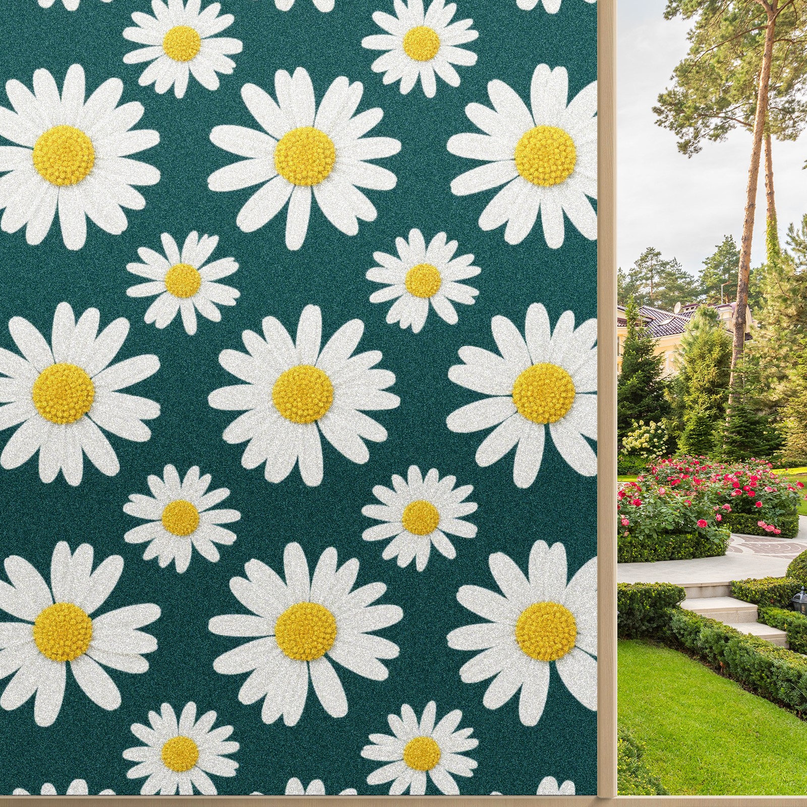Window Privacy Film Decorative Window Decal Film Removable Static Cling Window Tint for Home Bedroom Sun Blocking Stickers 17.7 x 23.6 Inches Chrysanthemum