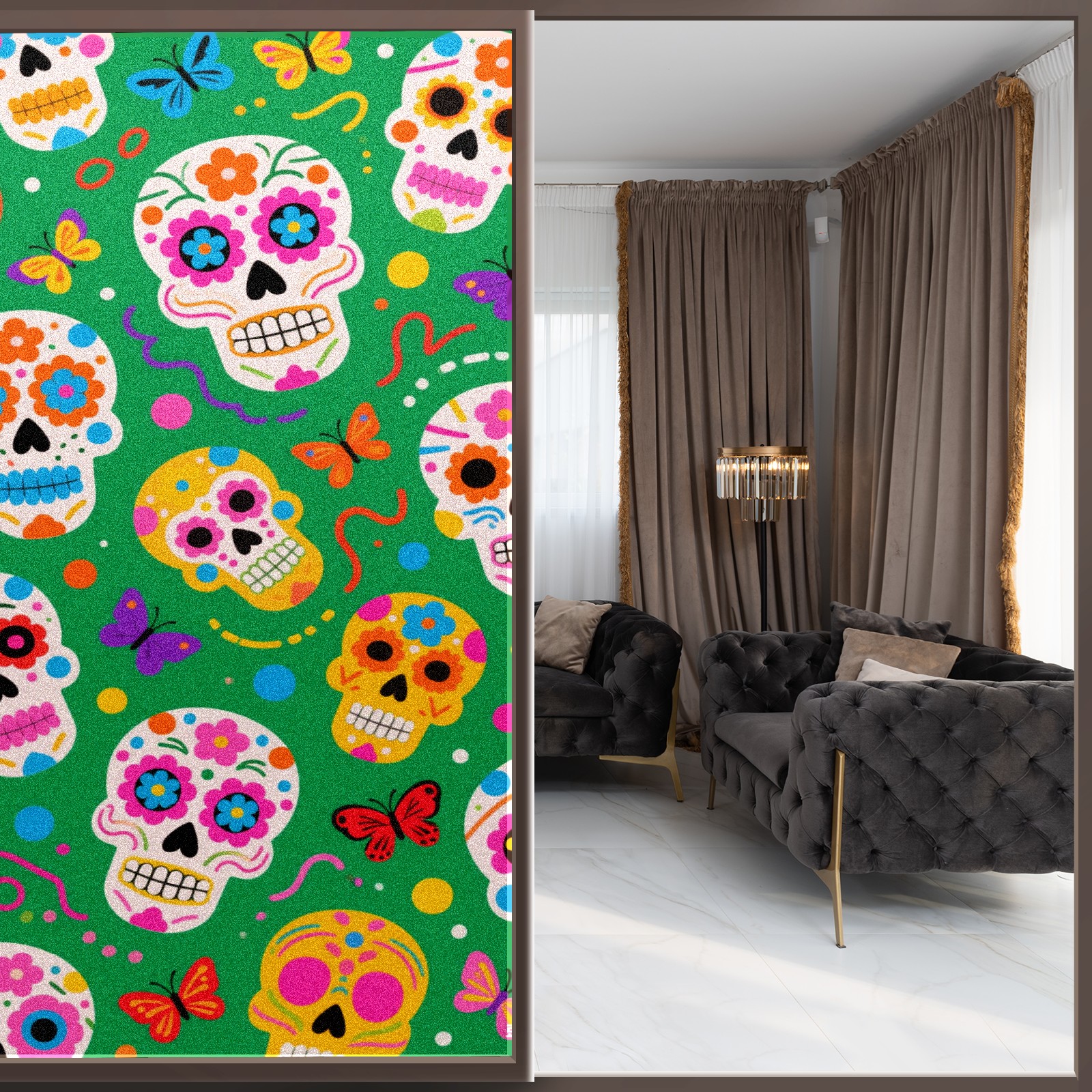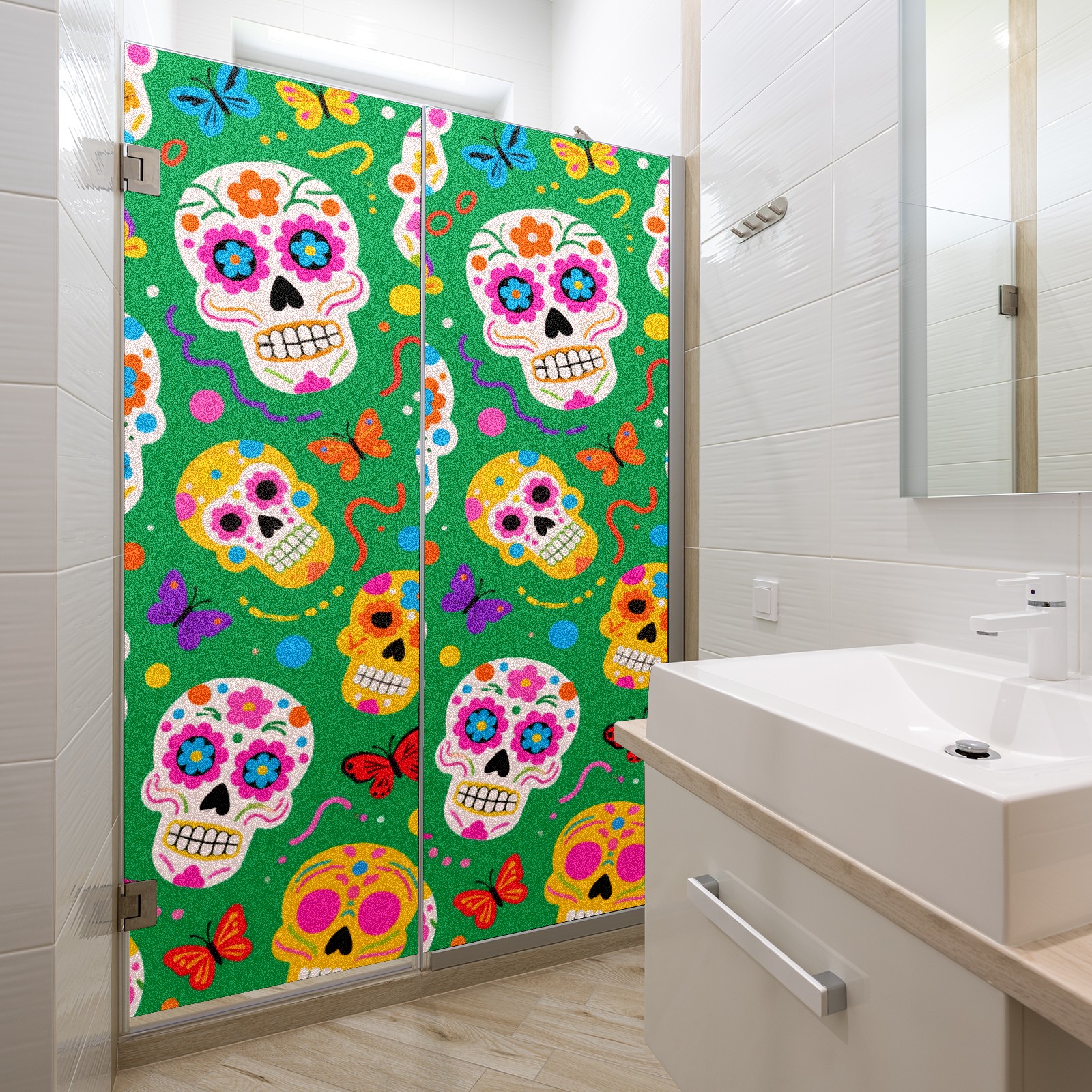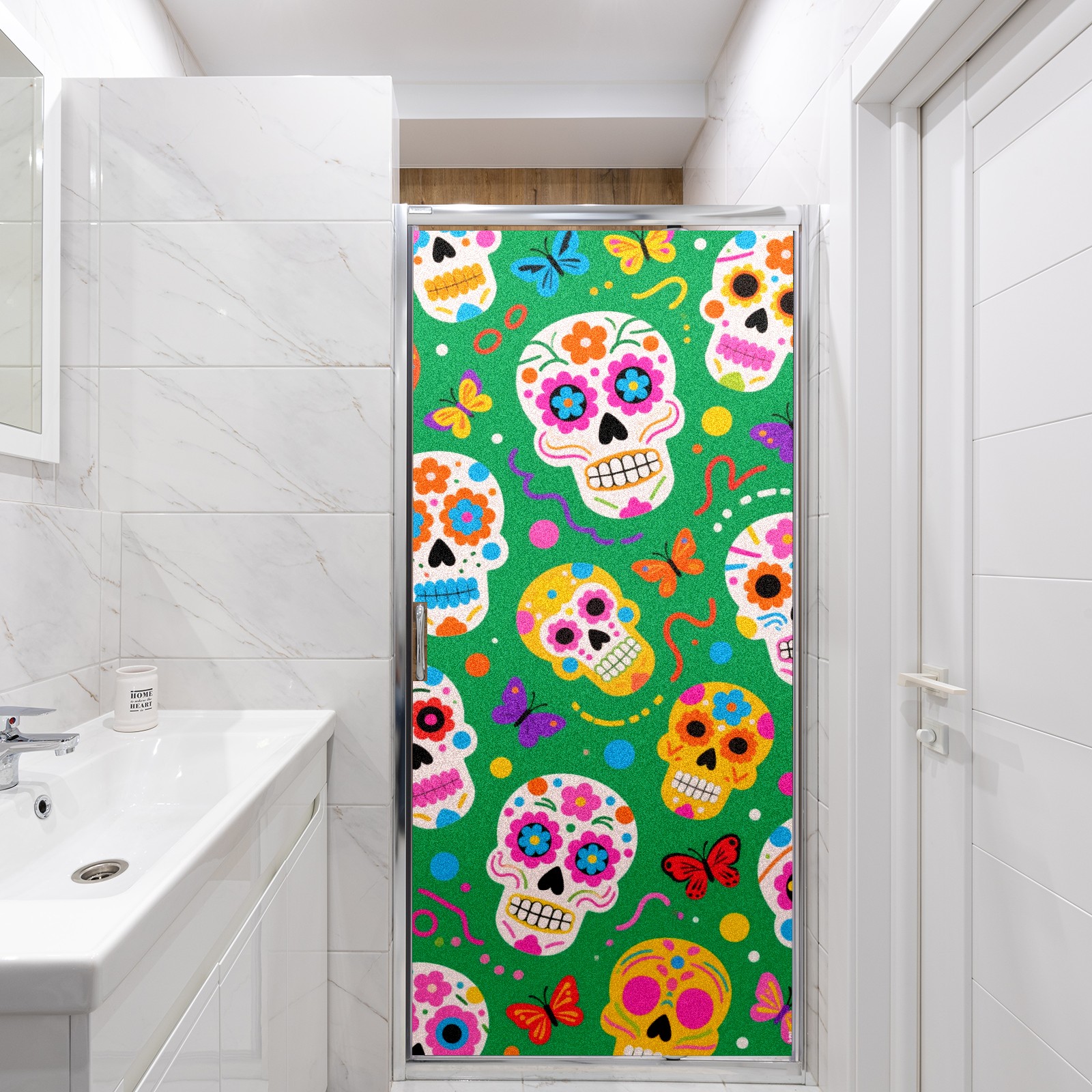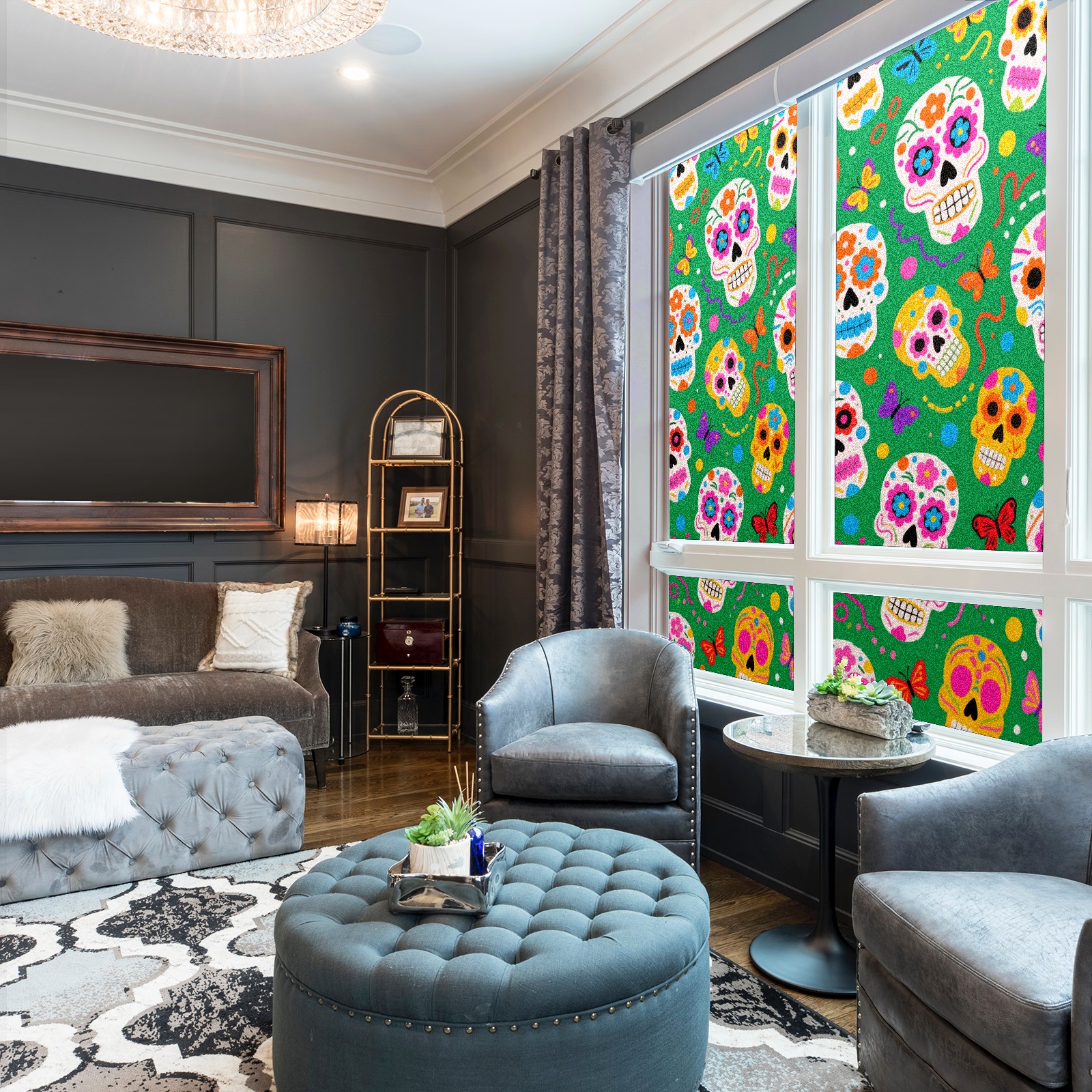 Window Privacy Film Decorative Window Decal Film Removable Static Cling Window Tint for Home Bedroom Sun Blocking Stickers 17.7 x 23.6 Inches Skulls 2