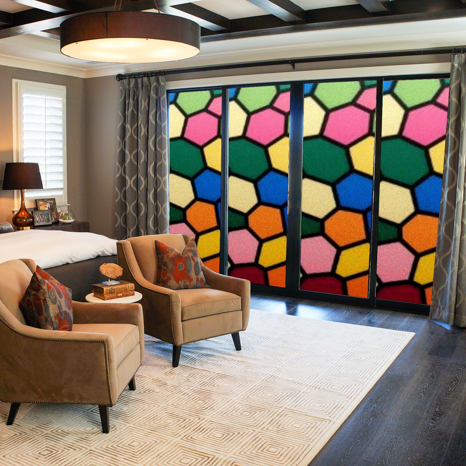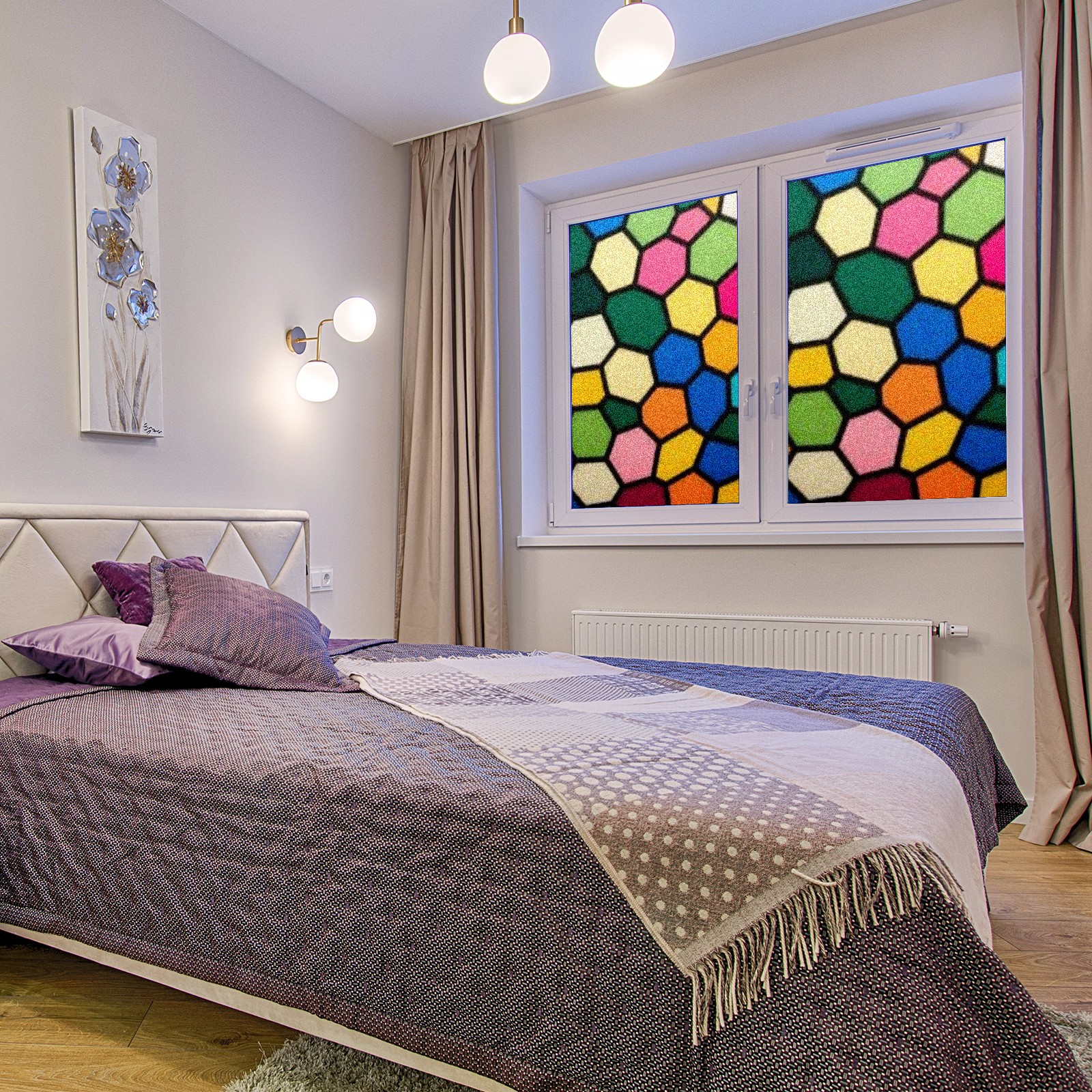 Window Privacy Film Stain Glass Window Privacy Film Stain Glass Static Stained Glass Cling Tint for Home Bedroom 17.7 x 23.6 Inches Flowers And Leaves