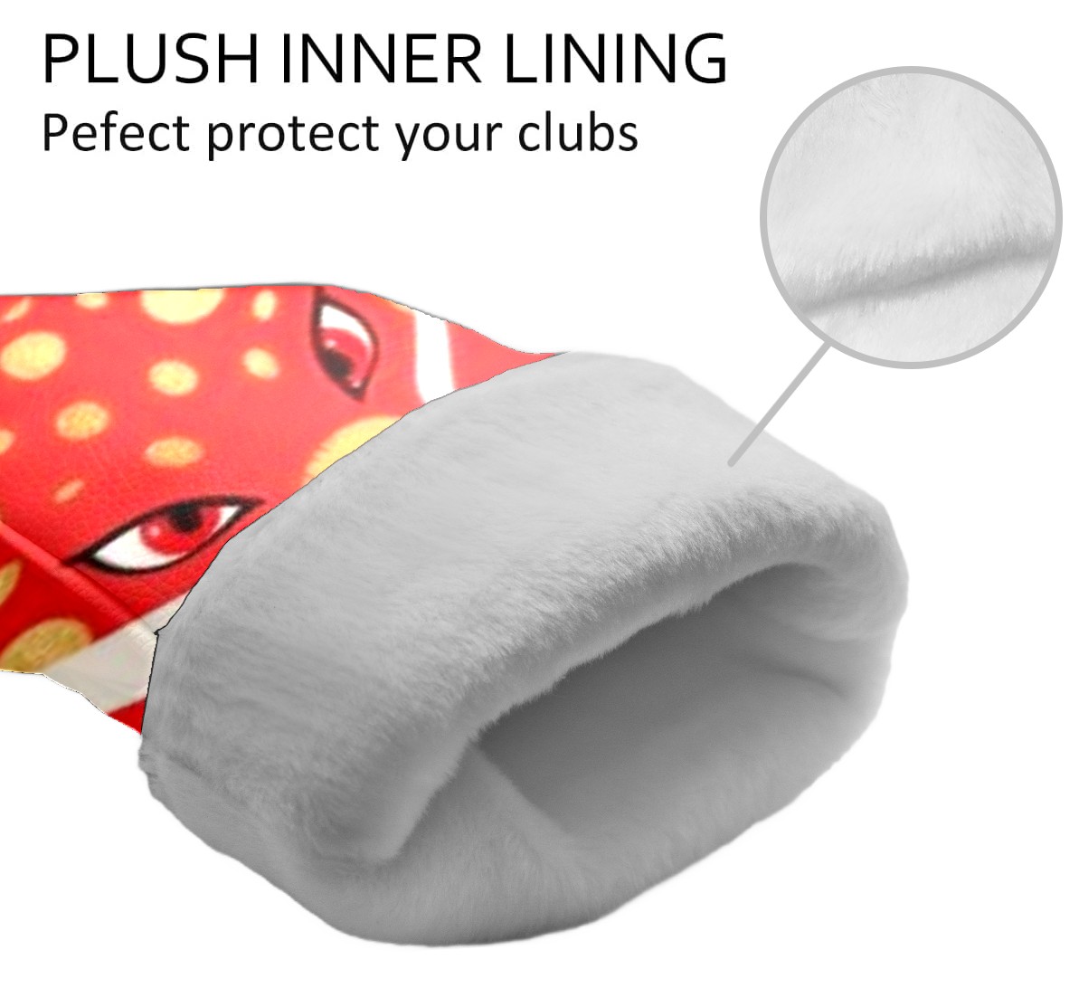 Black Golf Club Head Cover Golf Accessories Head Covers Set for Driver & Fairway Woods Fox