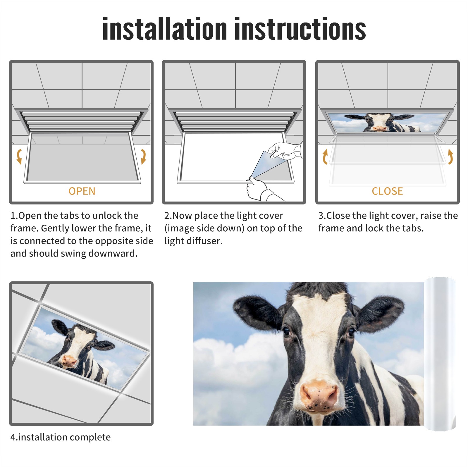 2 Pack Cow Animal Lights Fluorescent Light Covers for Classroom Office 2x4ft Celling Fluorescent Decorative Eliminate Harsh Glare,Classroom Decorations