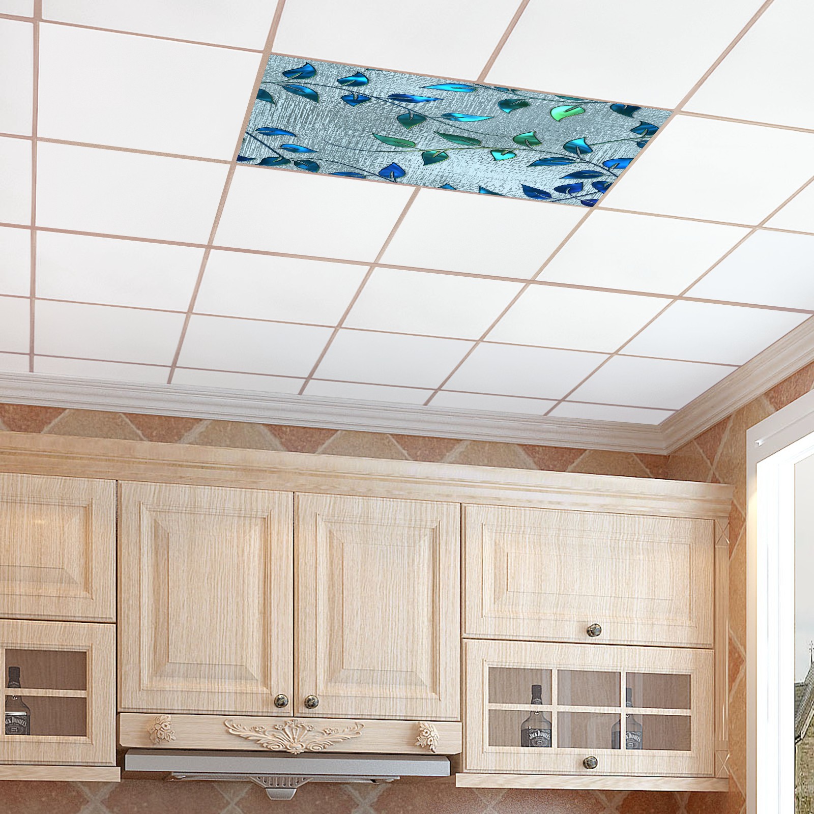 MSINMKOK Light Cover Stained Glass Retro Blue Drop Ceiling Light Cover for Classroom Office Kitchen Decorative Fluorescent Insert Covers Plastic Light Diffuser Filters 47.2'' x 23.6''