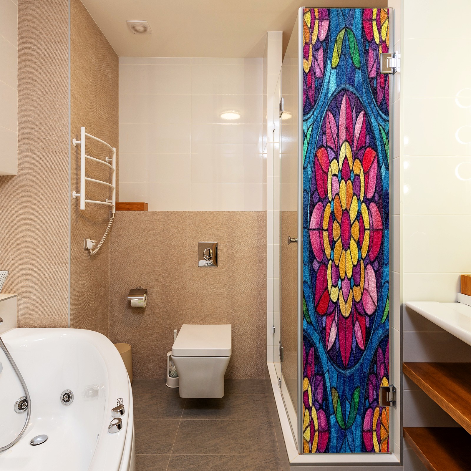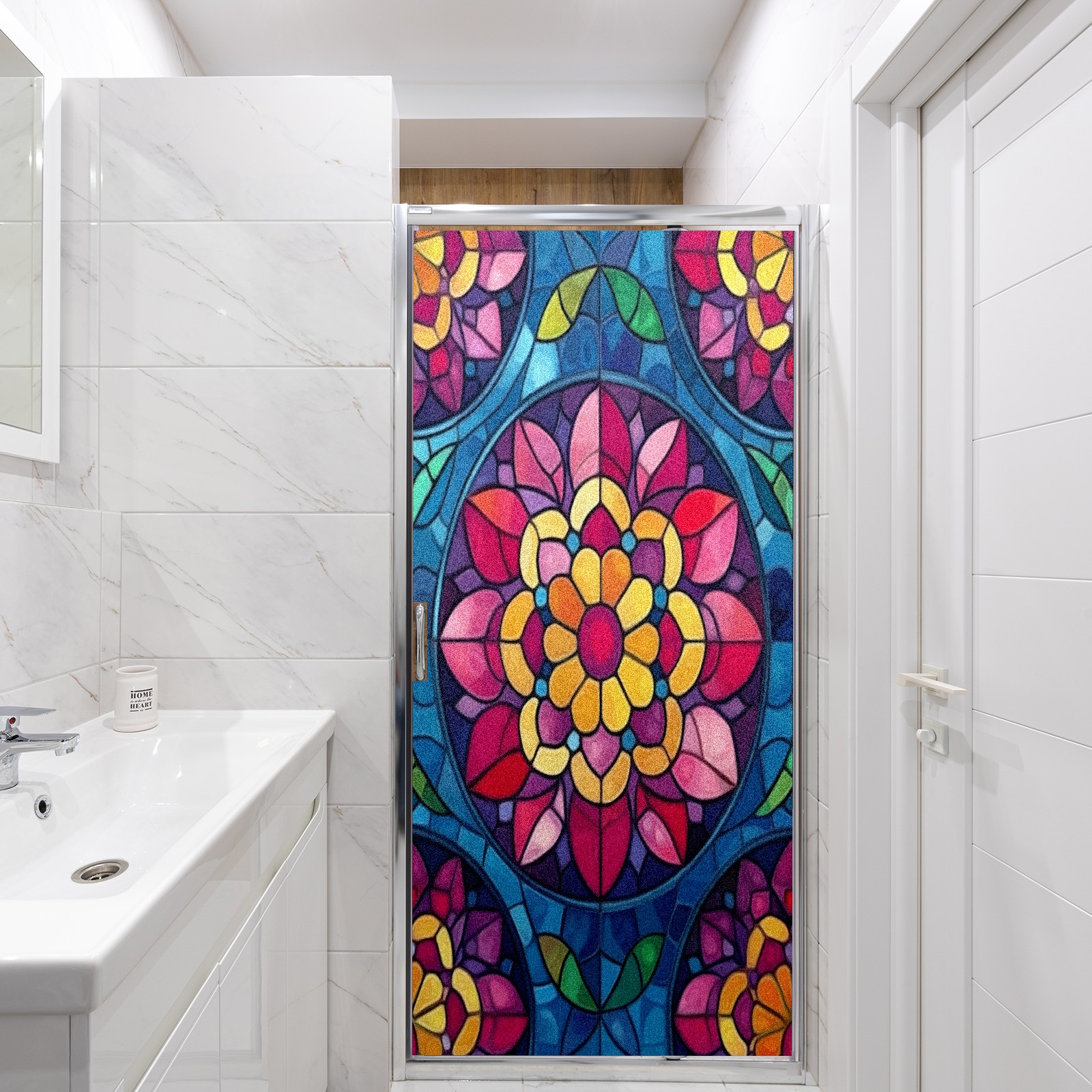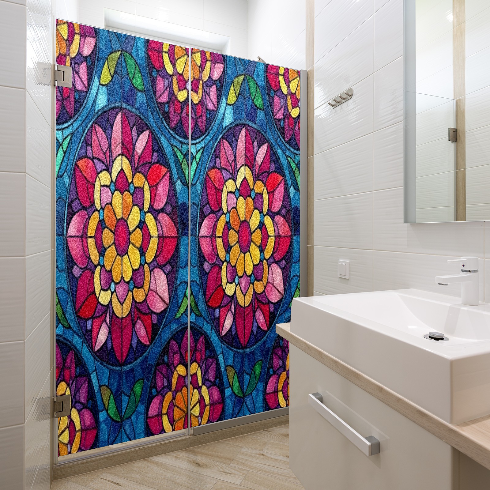 Matte Privacy Window Film | Static Cling, One-Way Glass Insulation Film, UV Blocking & Heat Insulating | Non-Adhesive, Removable for Home, Office & BathroomPink Flower