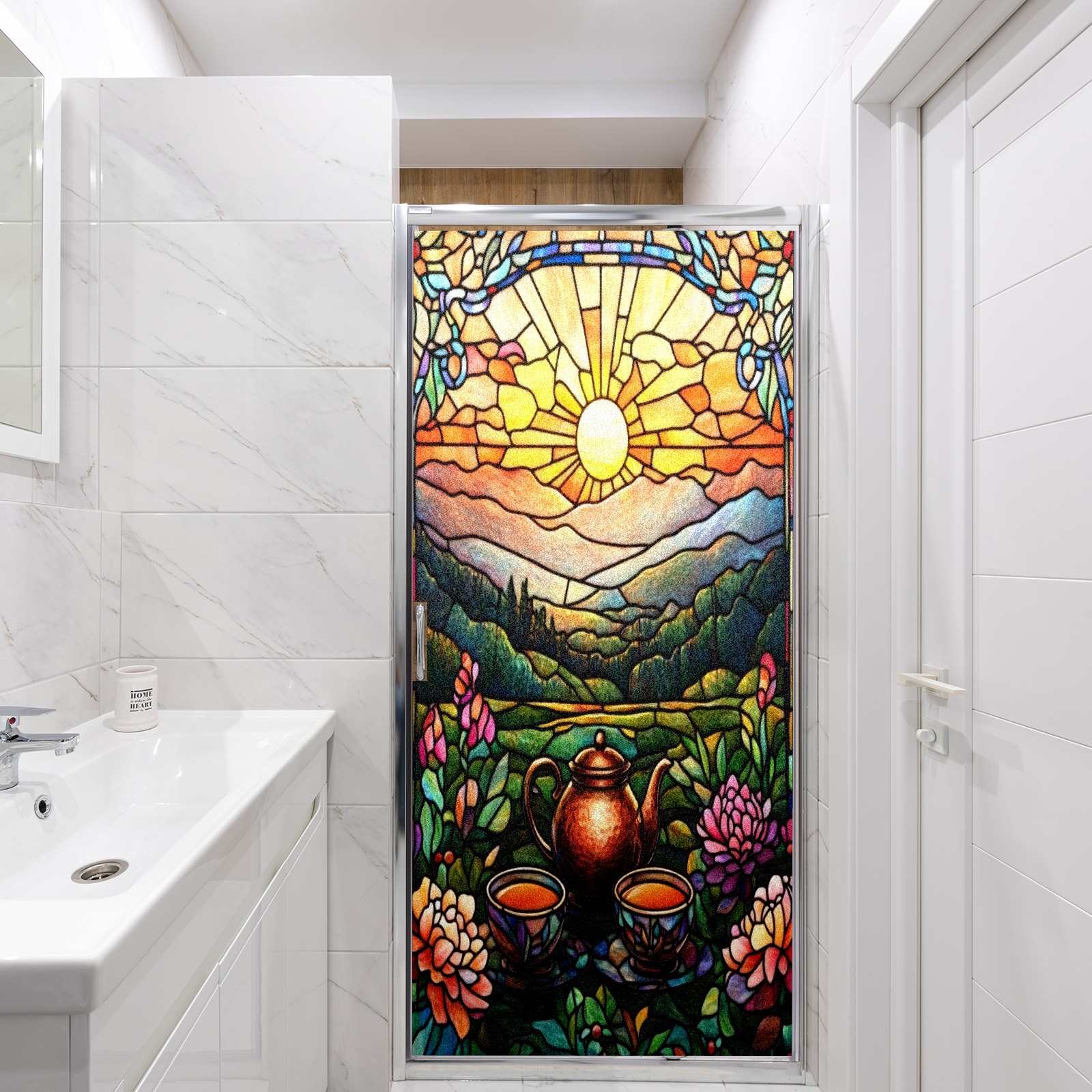 Matte Privacy Window Film | Static Cling, One-Way Glass Insulation Film, UV Blocking & Heat Insulating | Non-Adhesive, Removable for Home, Office & BathroomSun Rising