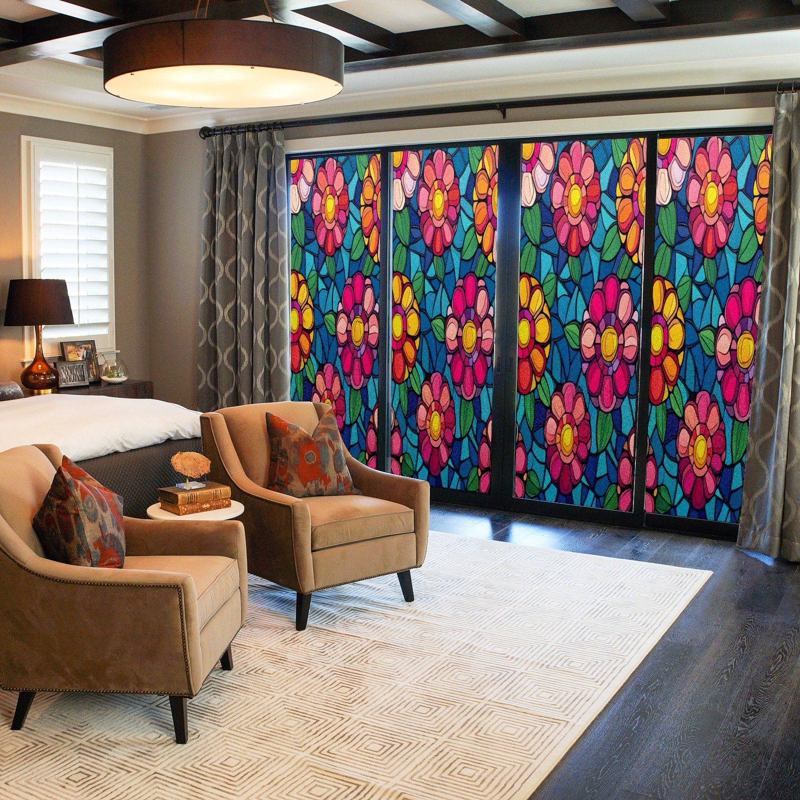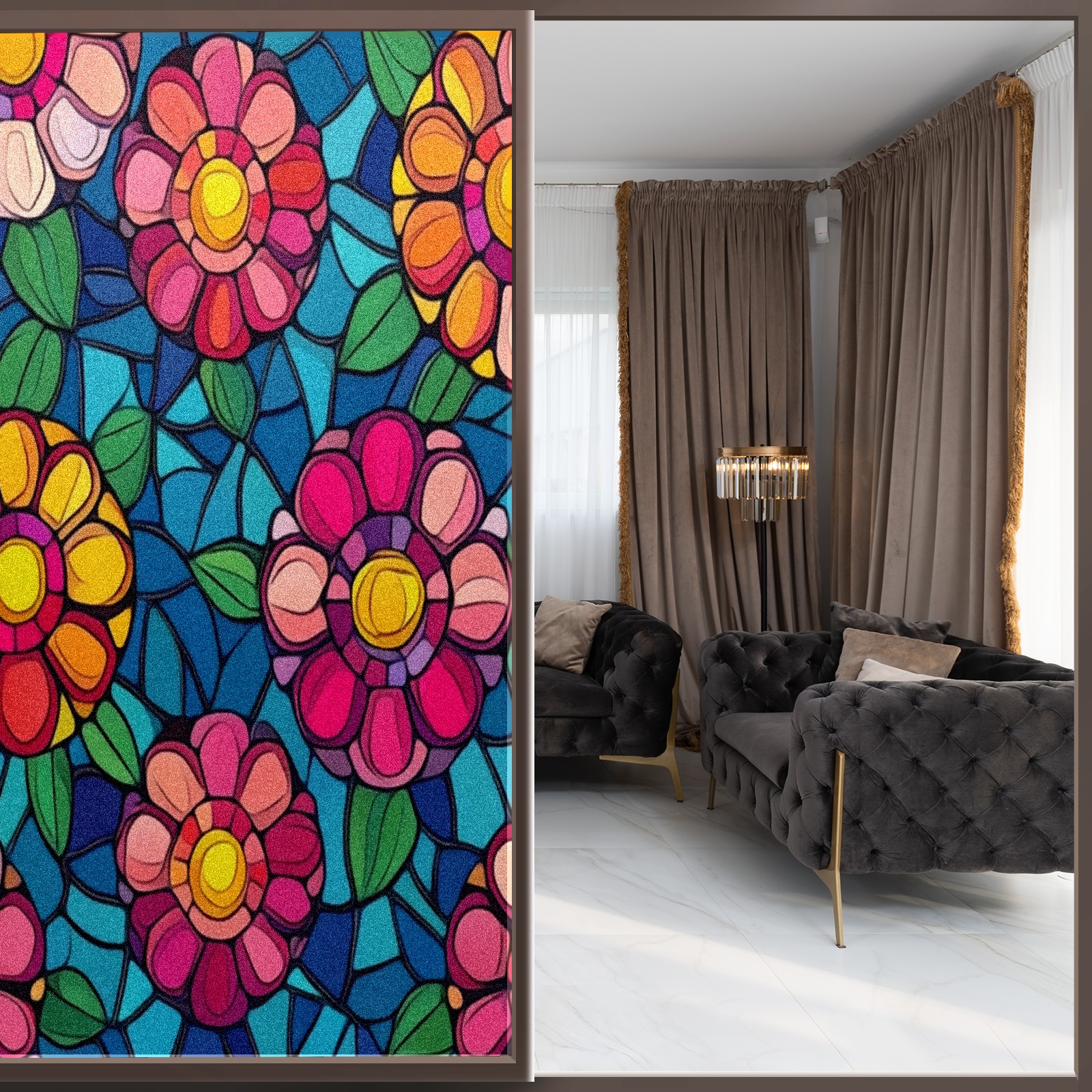 <p>Our film is made of food-grade PET material, safe and odorless, mother and baby families can rest assured that the use of explosion-proof impact resistance more peace of mind. High-definition full-sheet printing, delicate pattern does not fade, easy to enhance the tone of the home, suitable for a variety of decorative styles. Single-sided frosted design, effective protection of privacy, clear view during the day, night anti-peeping without embarrassment. Electrostatic adsorption installation, glue-free without leaving marks, can be repeatedly adjusted for use. It can also block ultraviolet rays, sunscreen insulation, protect furniture from fading, energy saving and more comfortable!&nbsp;&nbsp;</p>