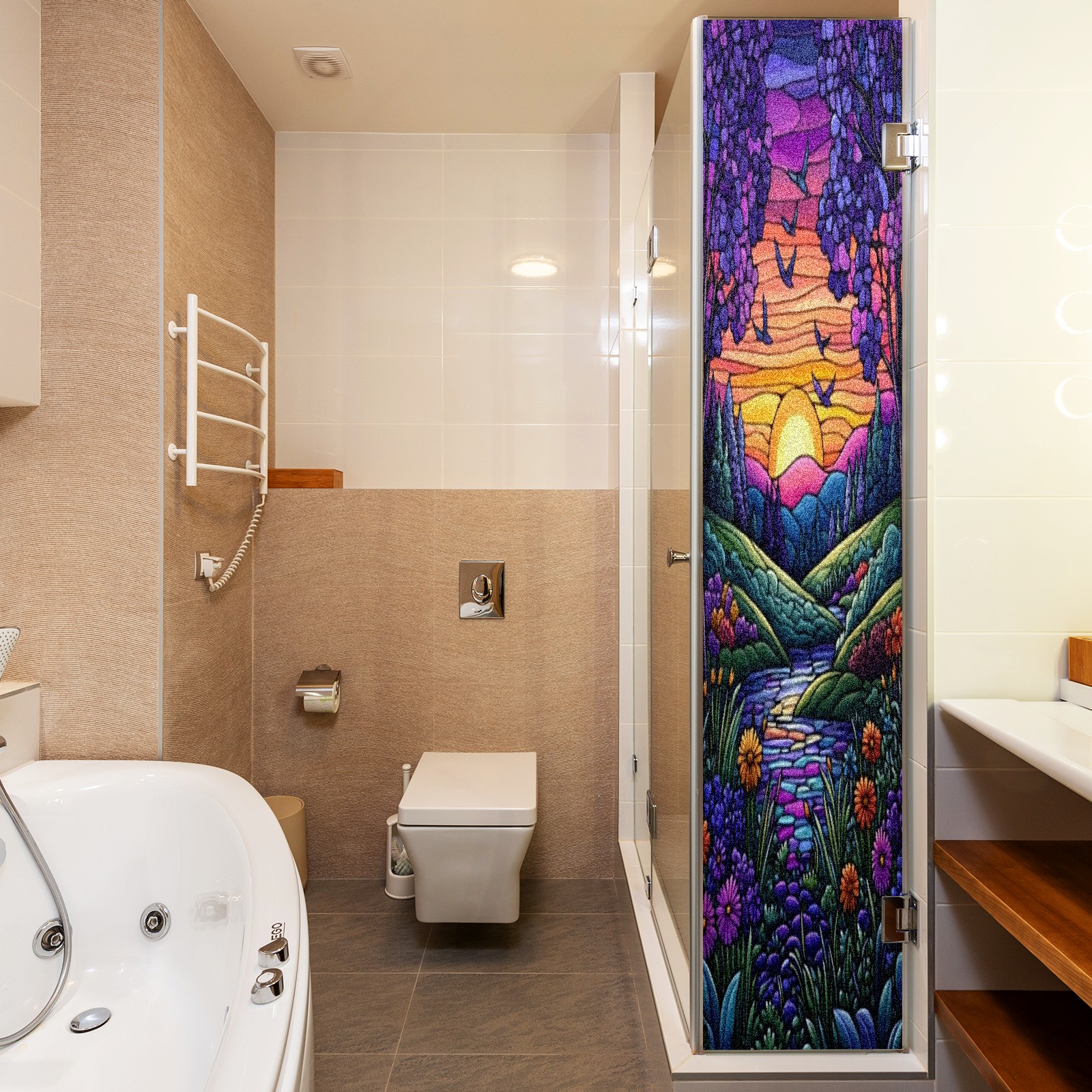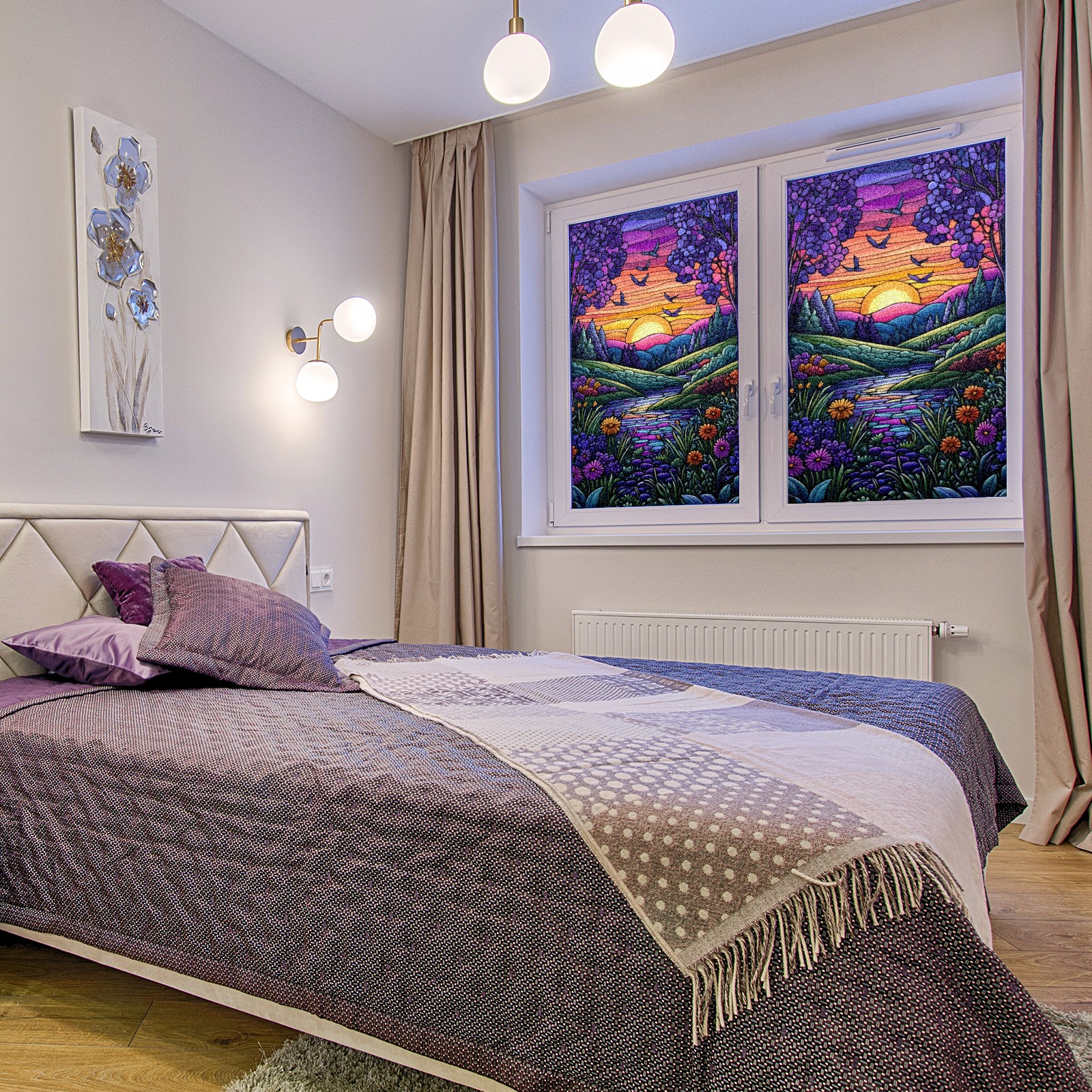 Matte Privacy Window Film | Static Cling, One-Way Glass Insulation Film, UV Blocking & Heat Insulating | Non-Adhesive, Removable for Home, Office & BathroomPurple And Blue Sunset