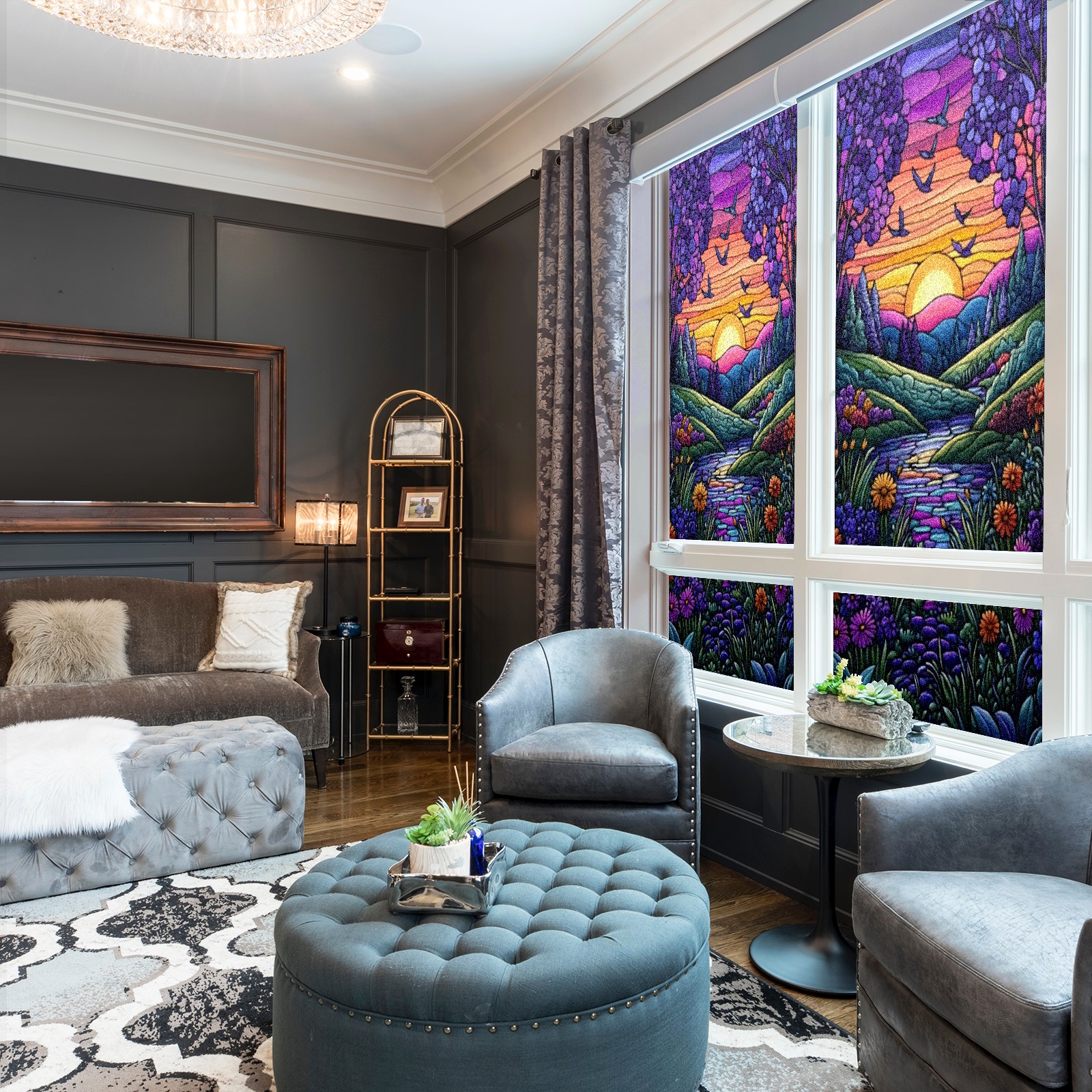 <p>Our film is made of food-grade PET material, safe and odorless, mother and baby families can rest assured that the use of explosion-proof impact resistance more peace of mind. High-definition full-sheet printing, delicate pattern does not fade, easy to enhance the tone of the home, suitable for a variety of decorative styles. Single-sided frosted design, effective protection of privacy, clear view during the day, night anti-peeping without embarrassment. Electrostatic adsorption installation, glue-free without leaving marks, can be repeatedly adjusted for use. It can also block ultraviolet rays, sunscreen insulation, protect furniture from fading, energy saving and more comfortable!&nbsp;&nbsp;</p>