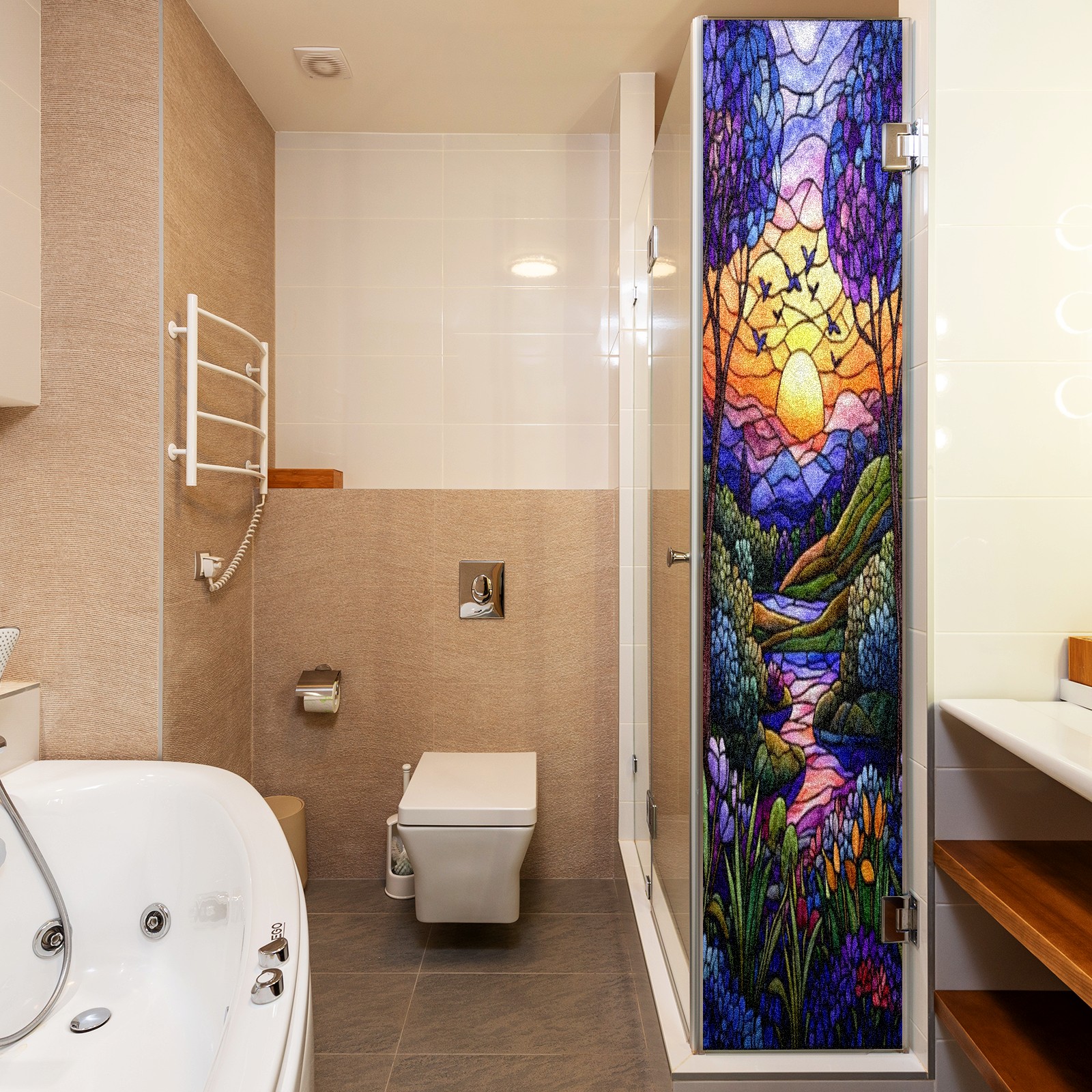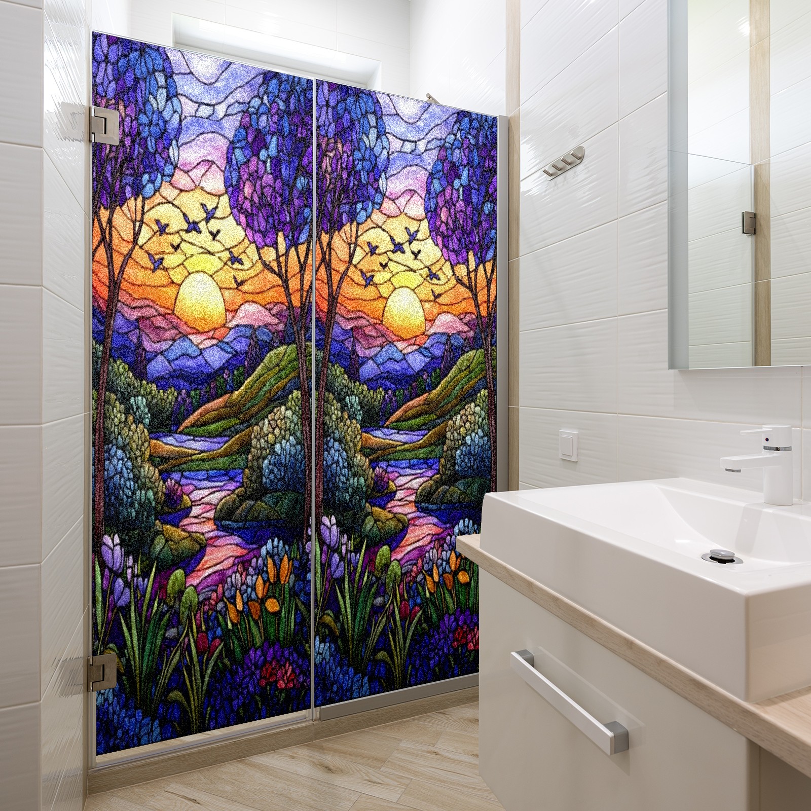 Matte Privacy Window Film | Static Cling, One-Way Glass Insulation Film, UV Blocking & Heat Insulating | Non-Adhesive, Removable for Home, Office & BathroomGlass-style Artwork