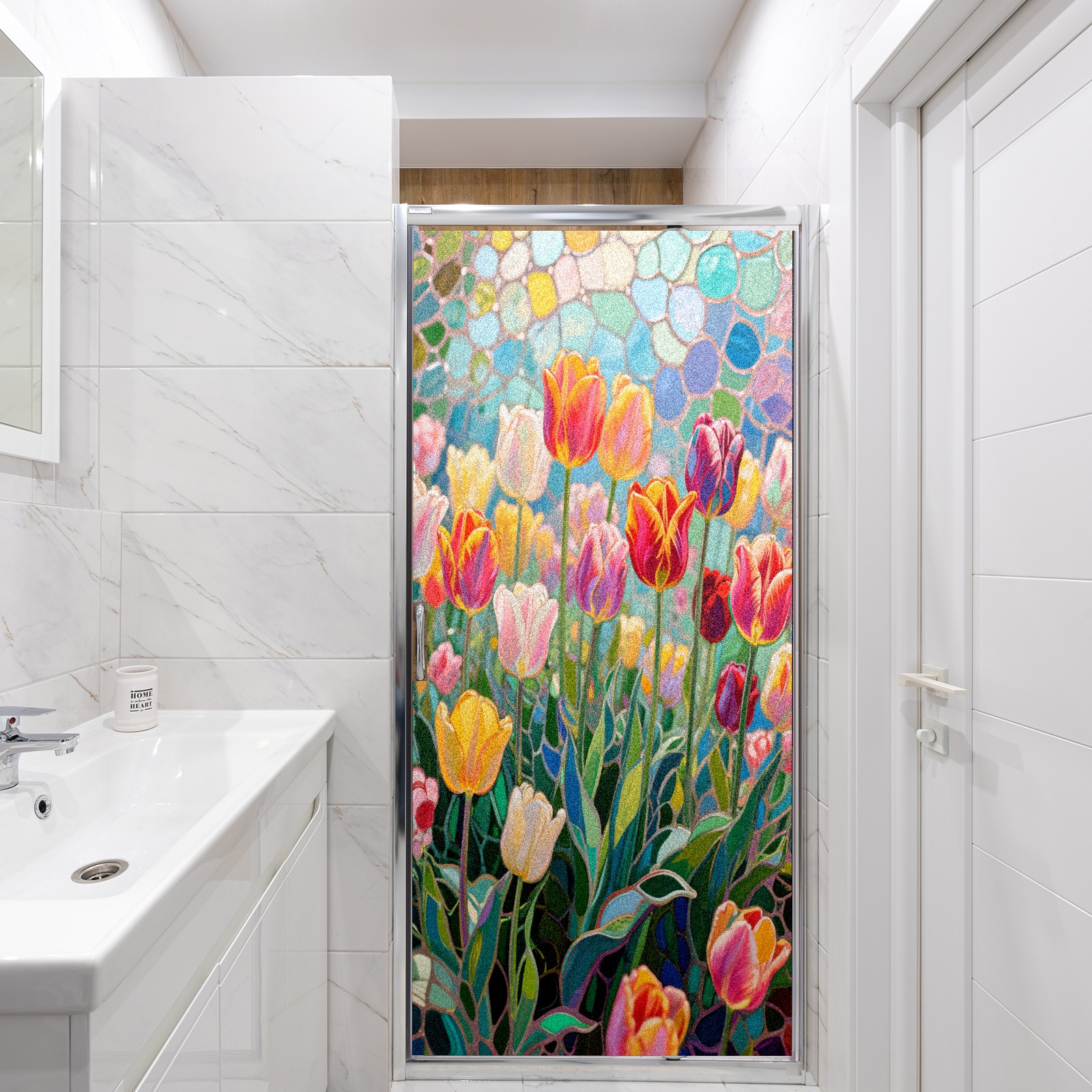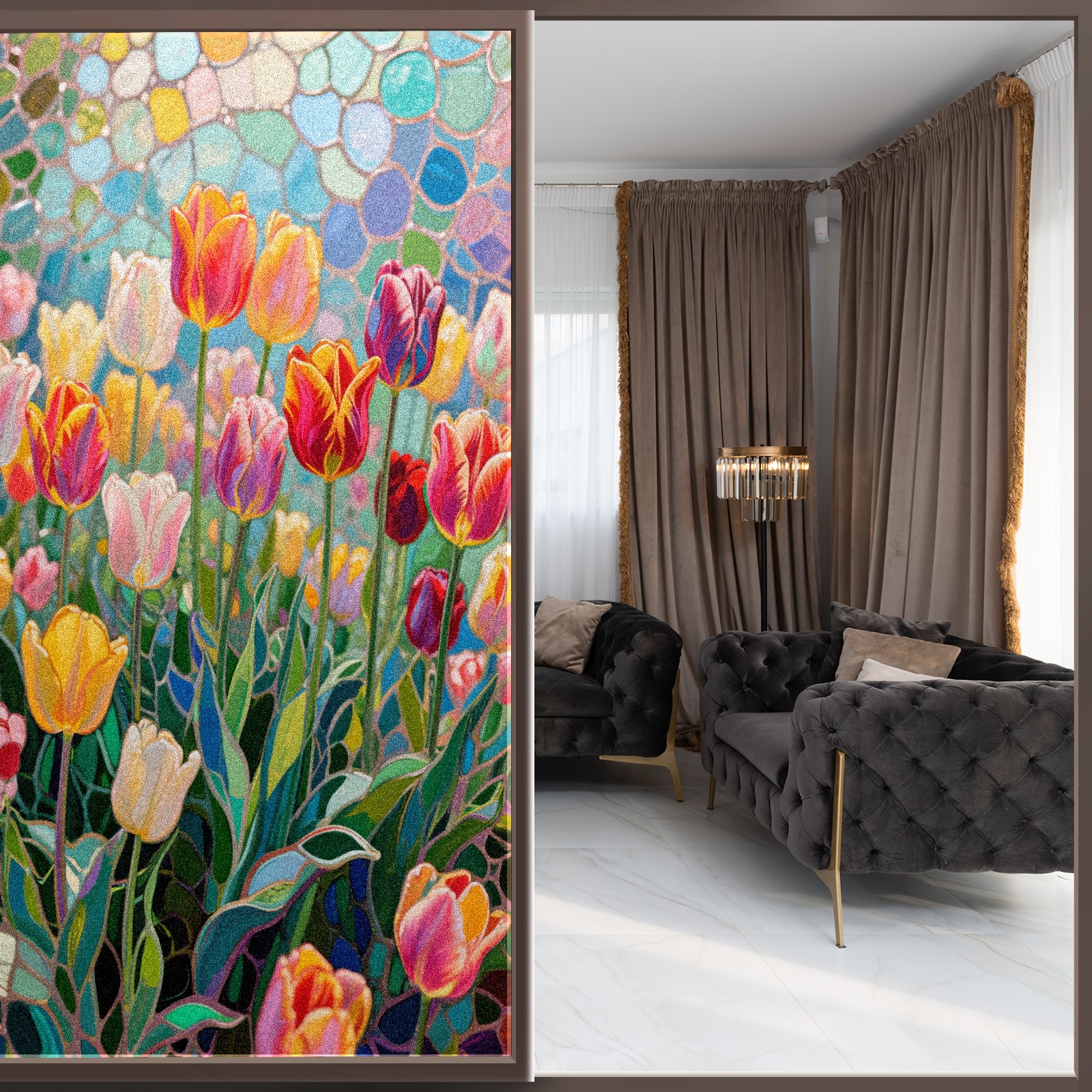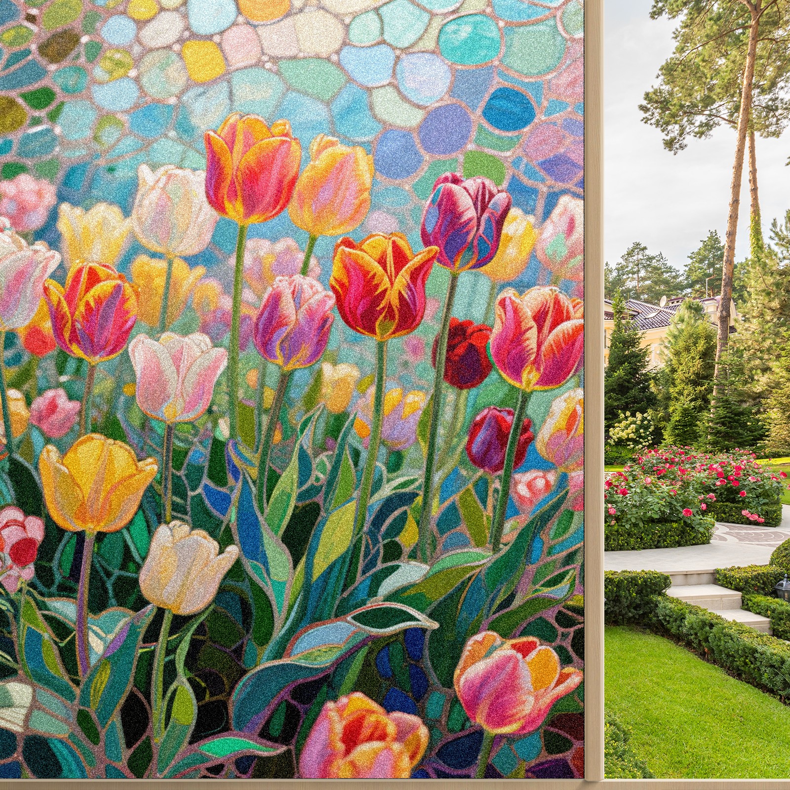 Matte Privacy Window Film | Static Cling, One-Way Glass Insulation Film, UV Blocking & Heat Insulating | Non-Adhesive, Removable for Home, Office & BathroomImpressionist Tulips (1)