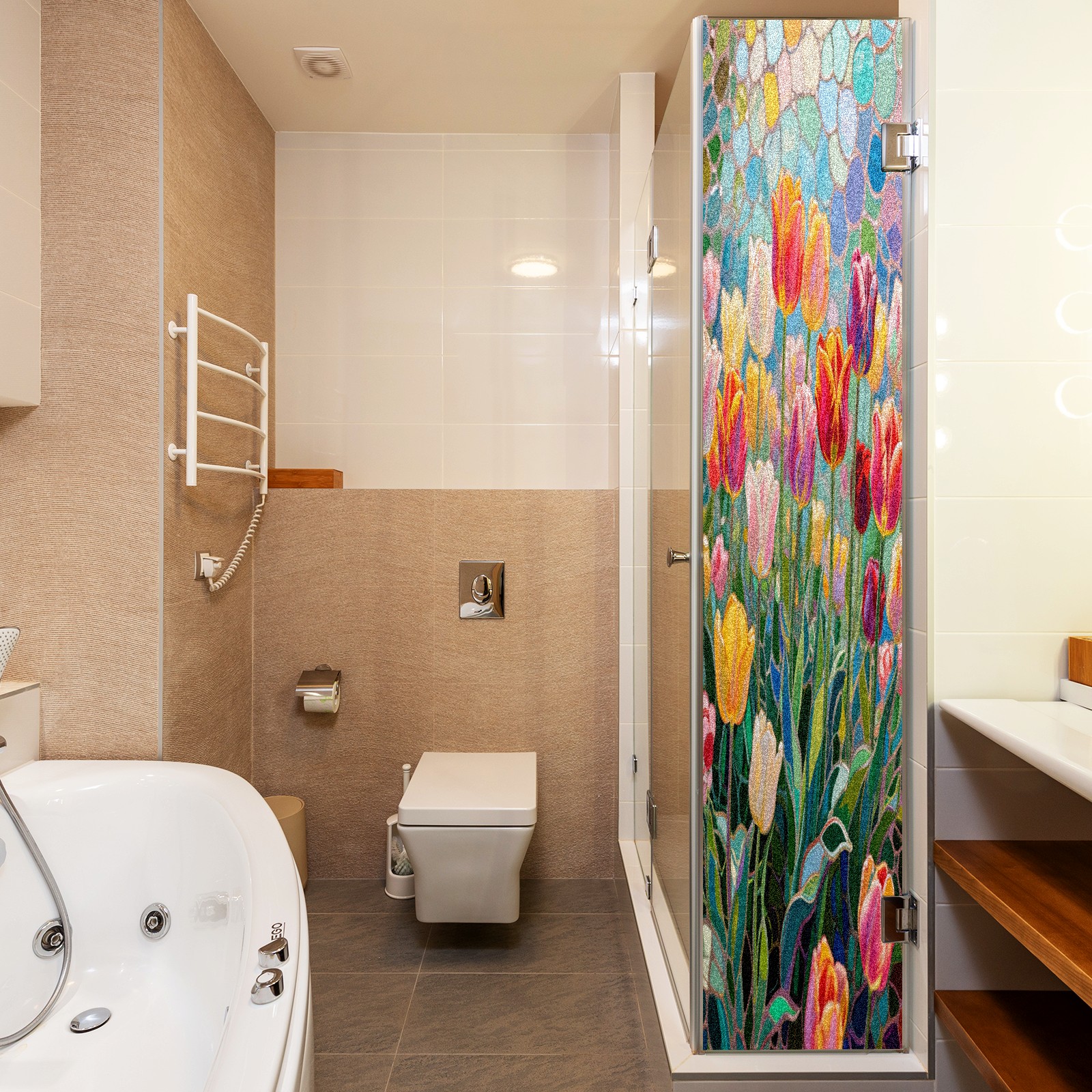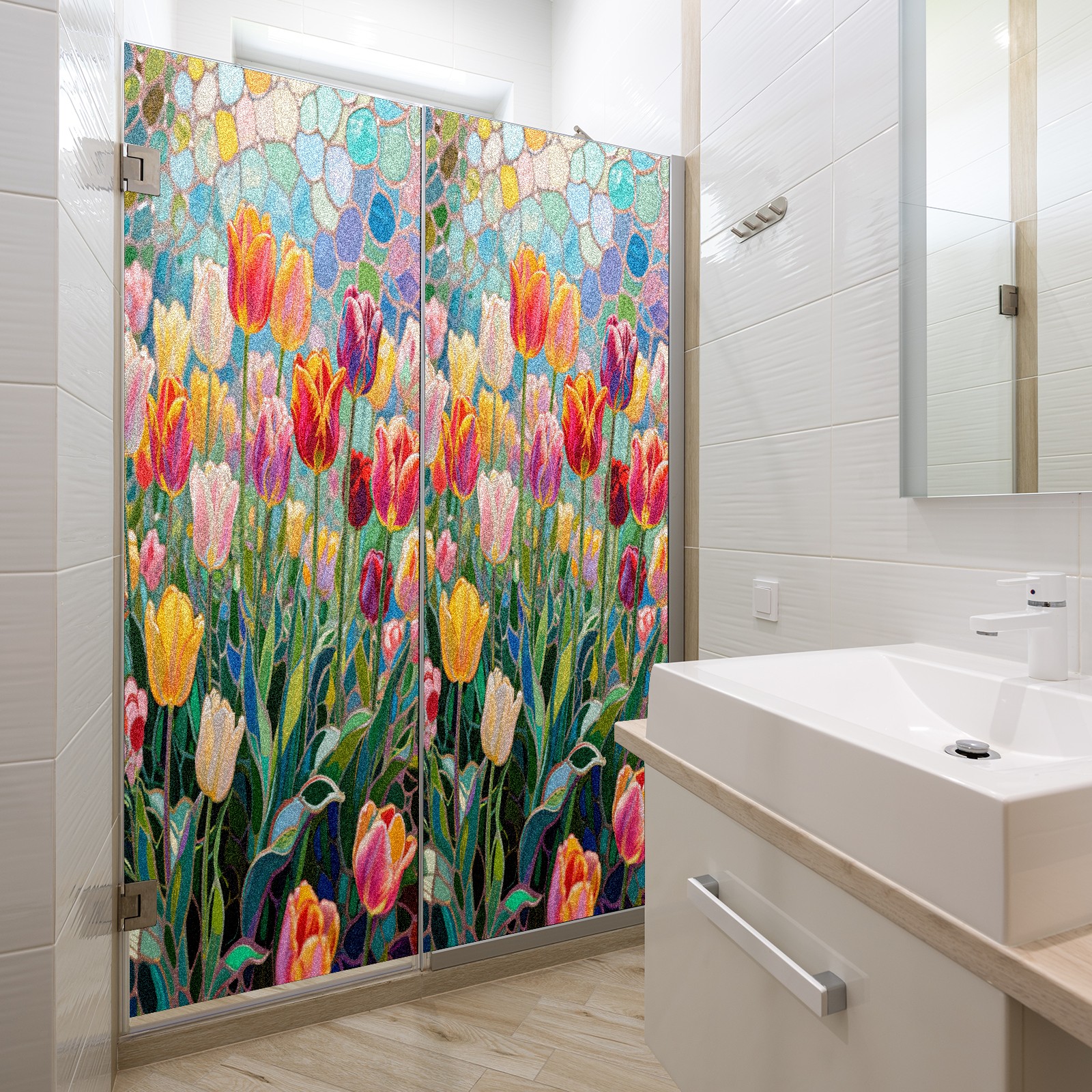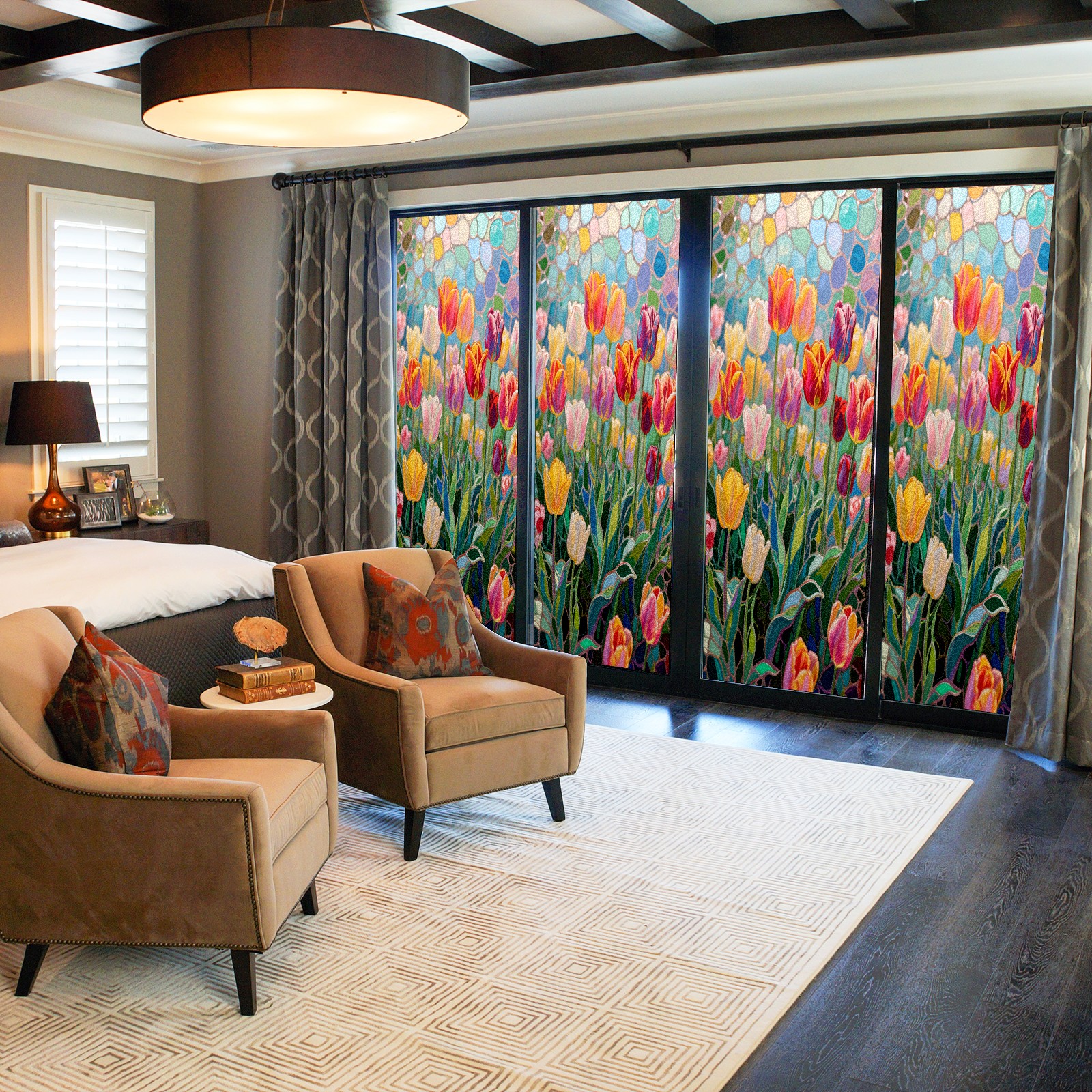 Matte Privacy Window Film | Static Cling, One-Way Glass Insulation Film, UV Blocking & Heat Insulating | Non-Adhesive, Removable for Home, Office & BathroomImpressionist Tulips (1)