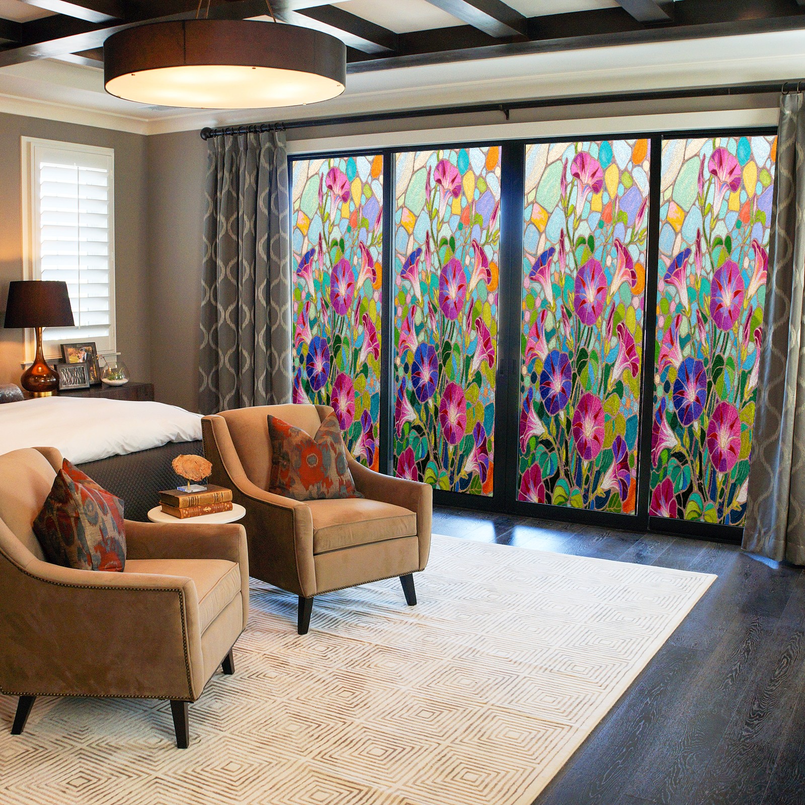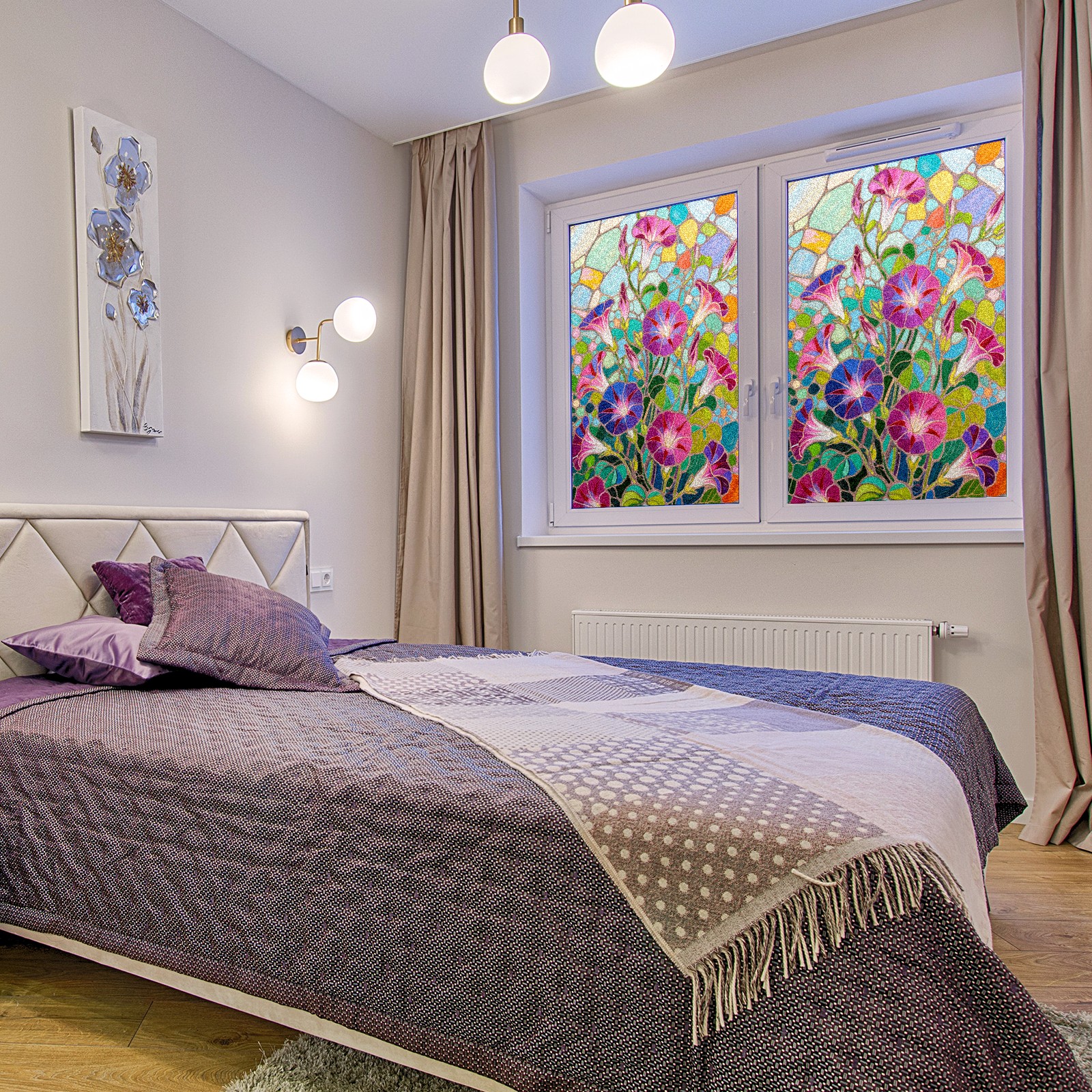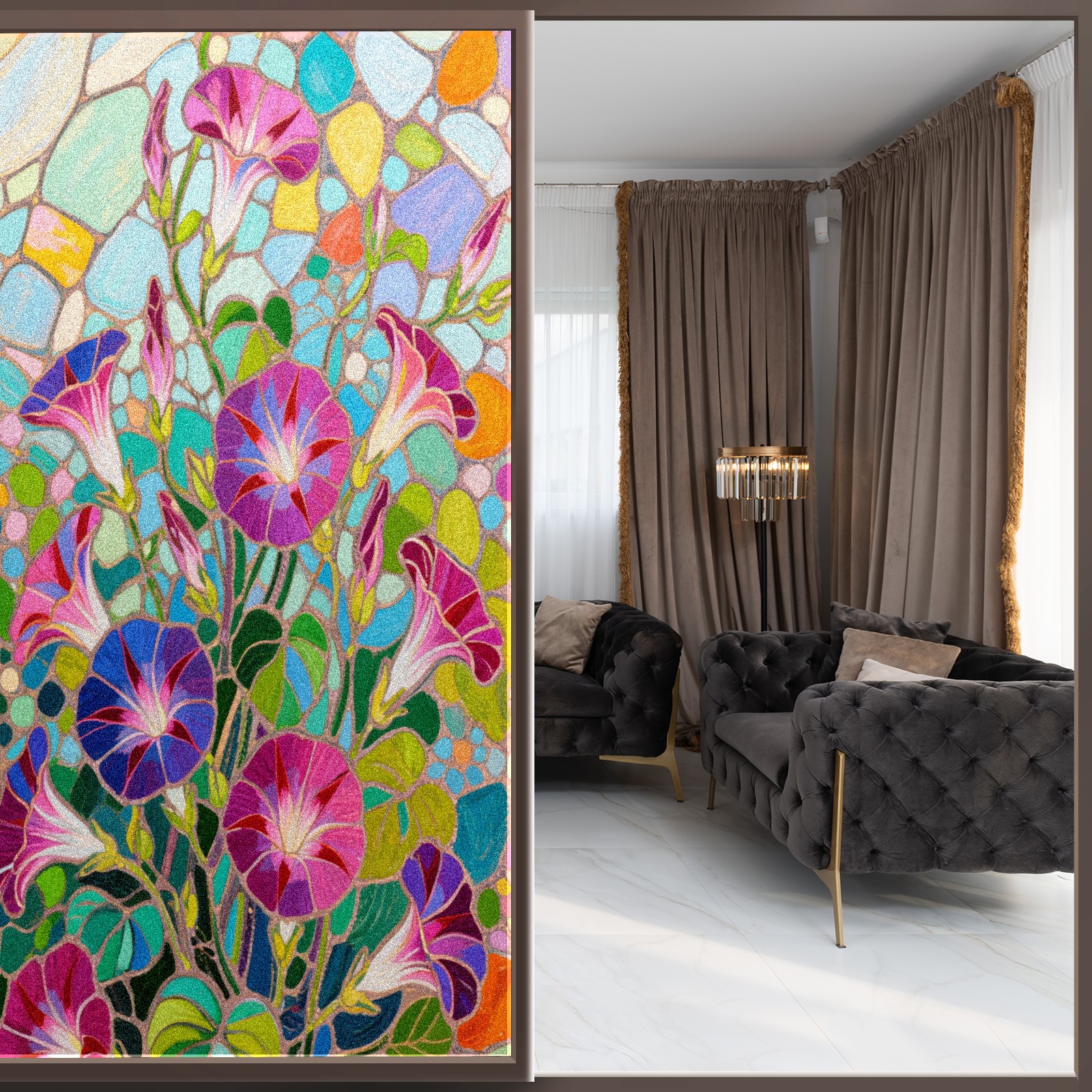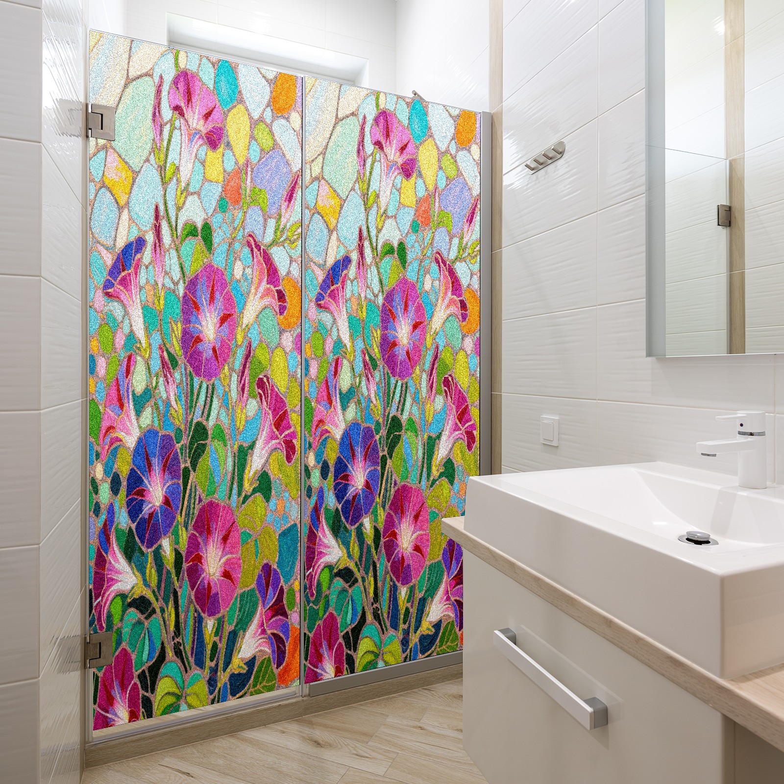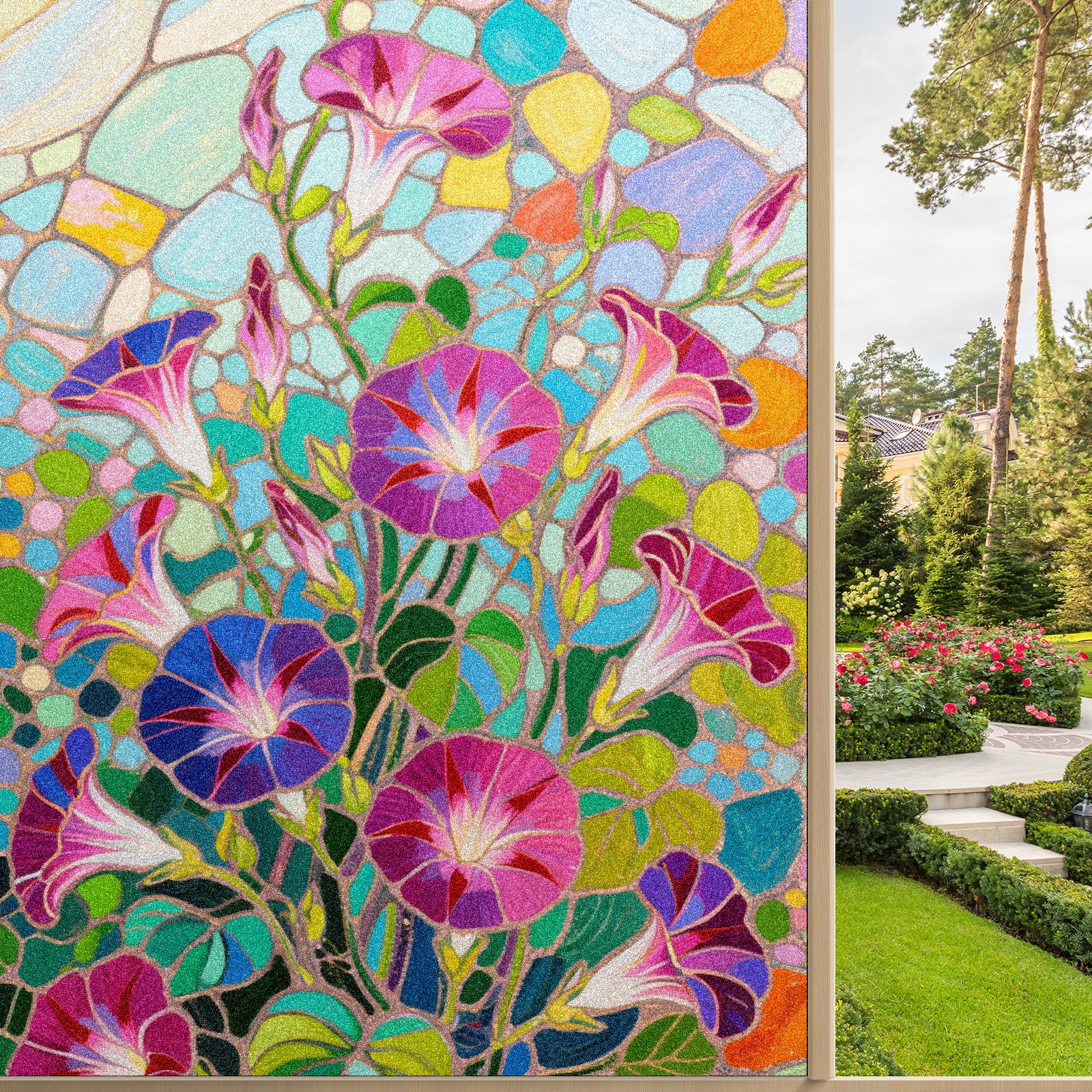 Matte Privacy Window Film | Static Cling, One-Way Glass Insulation Film, UV Blocking & Heat Insulating | Non-Adhesive, Removable for Home, Office & BathroomImpressionist Morning Glory (2)