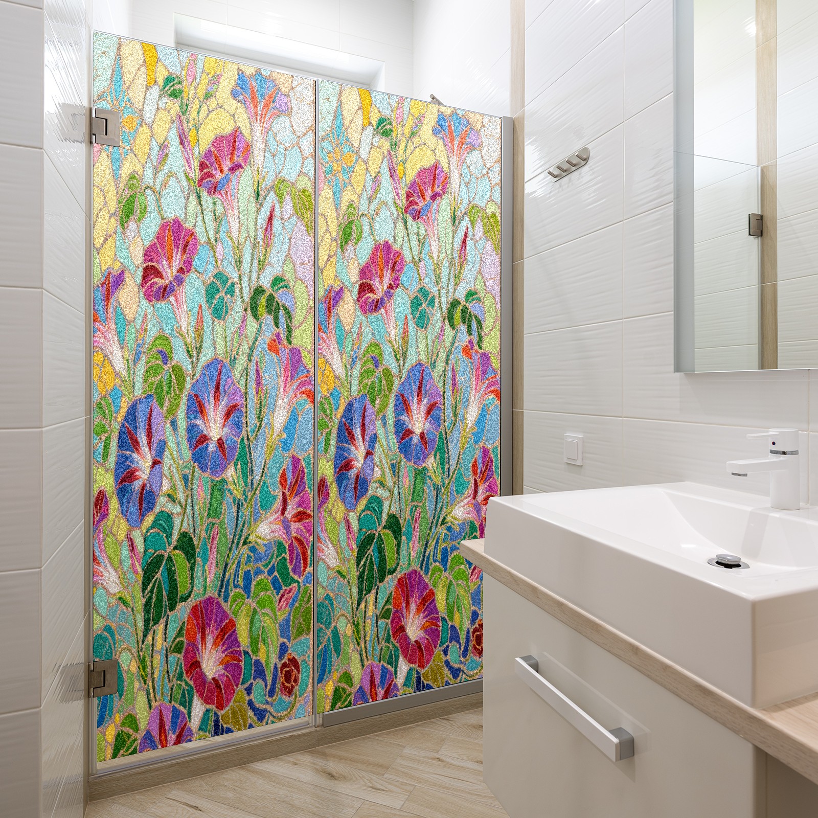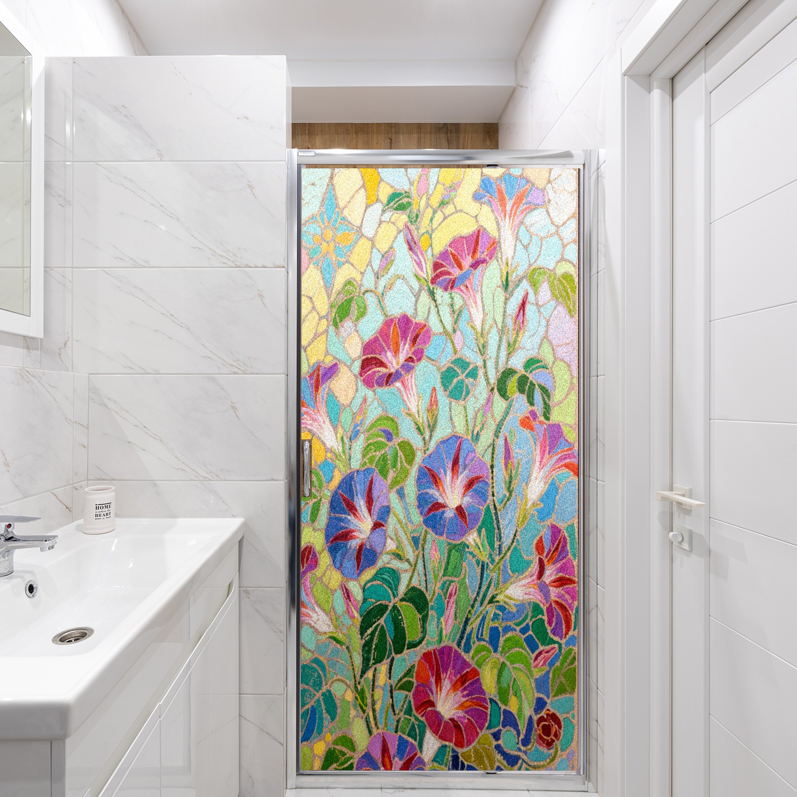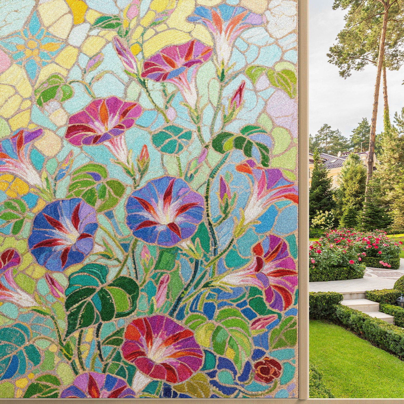 Matte Privacy Window Film | Static Cling, One-Way Glass Insulation Film, UV Blocking & Heat Insulating | Non-Adhesive, Removable for Home, Office & BathroomImpressionist Morning Glory (1)