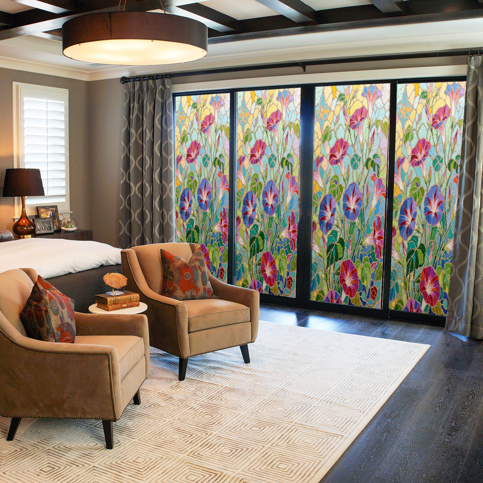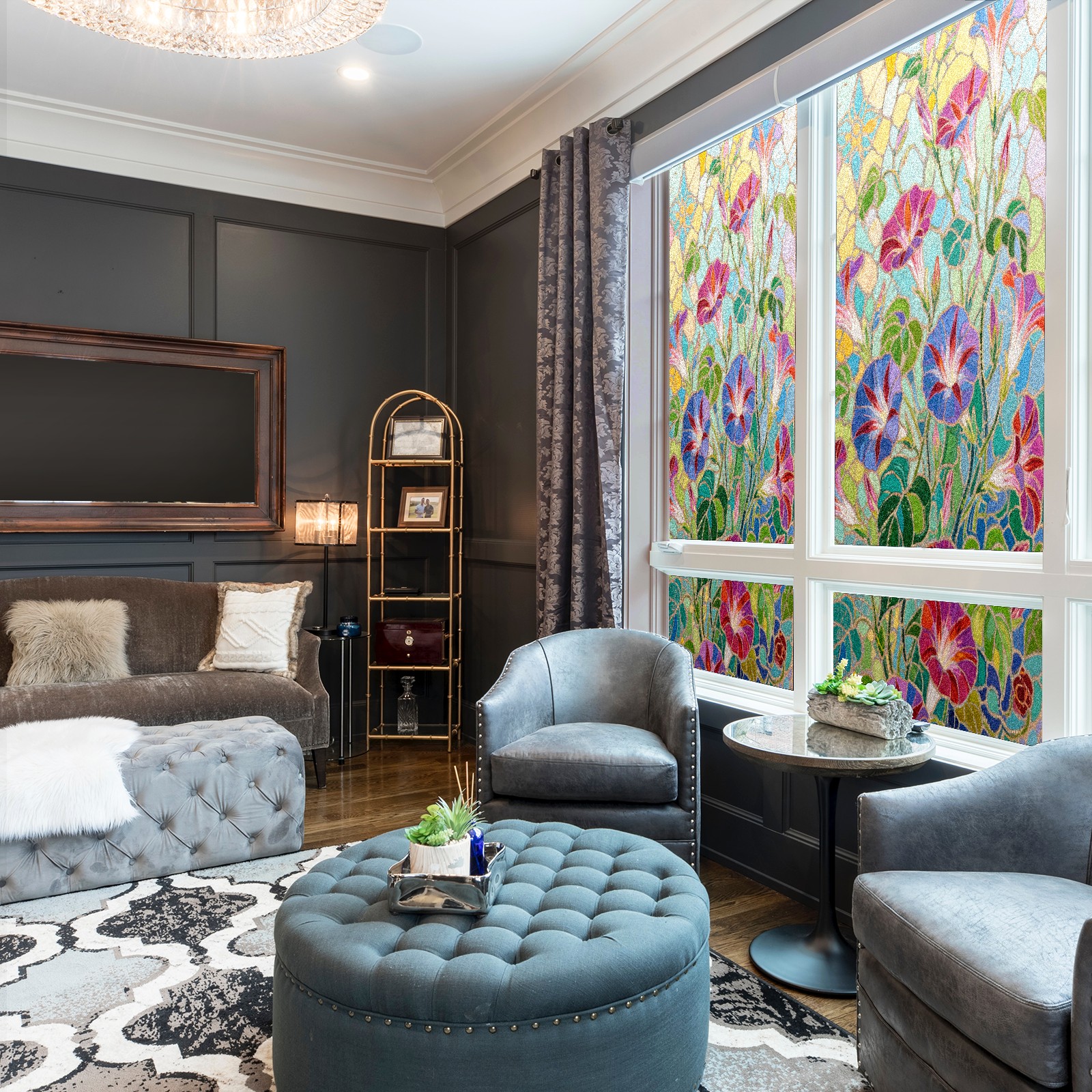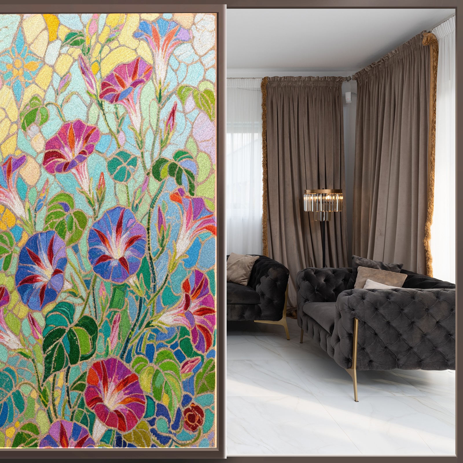 <p>Our film is made of food-grade PET material, safe and odorless, mother and baby families can rest assured that the use of explosion-proof impact resistance more peace of mind. High-definition full-sheet printing, delicate pattern does not fade, easy to enhance the tone of the home, suitable for a variety of decorative styles. Single-sided frosted design, effective protection of privacy, clear view during the day, night anti-peeping without embarrassment. Electrostatic adsorption installation, glue-free without leaving marks, can be repeatedly adjusted for use. It can also block ultraviolet rays, sunscreen insulation, protect furniture from fading, energy saving and more comfortable!&nbsp;&nbsp;</p>