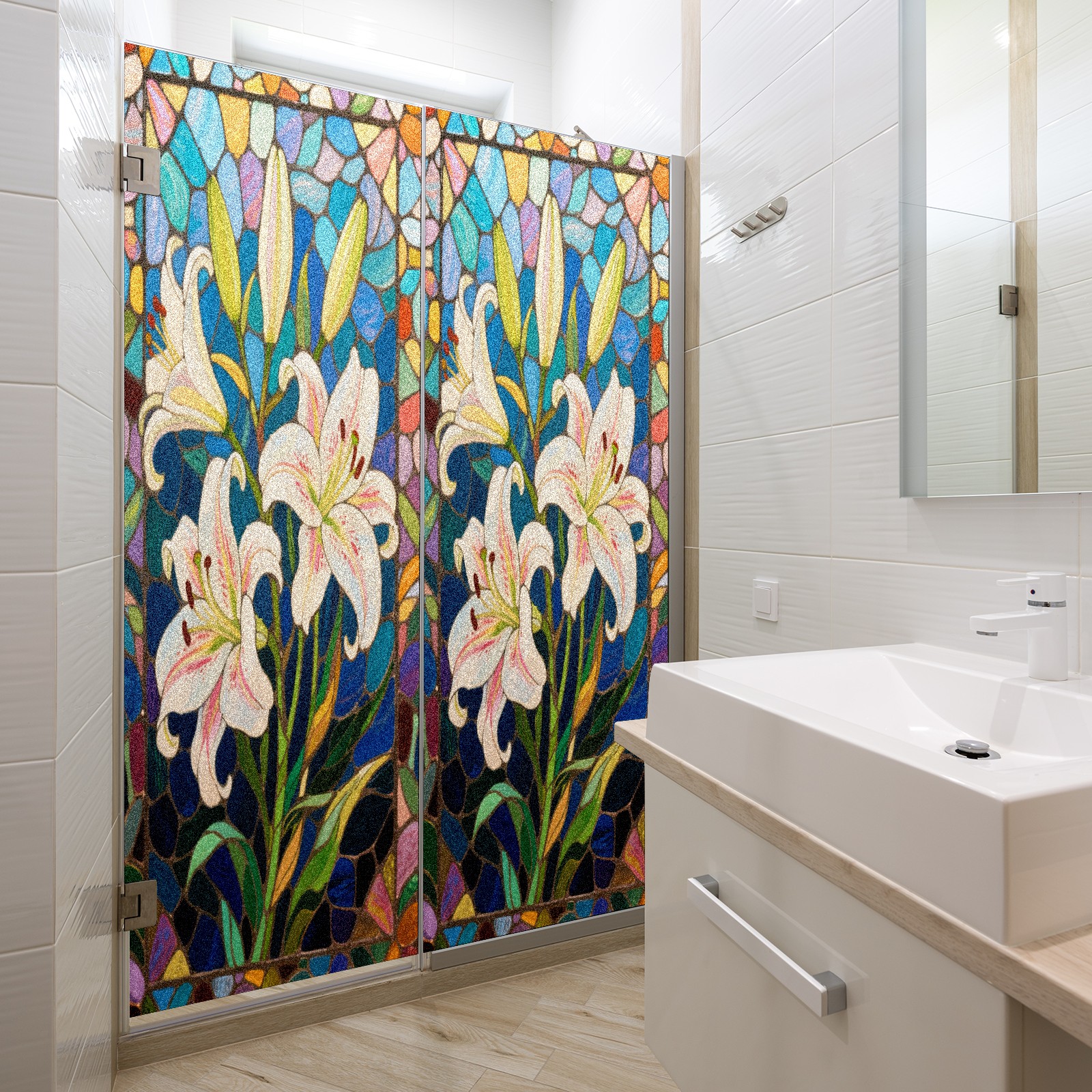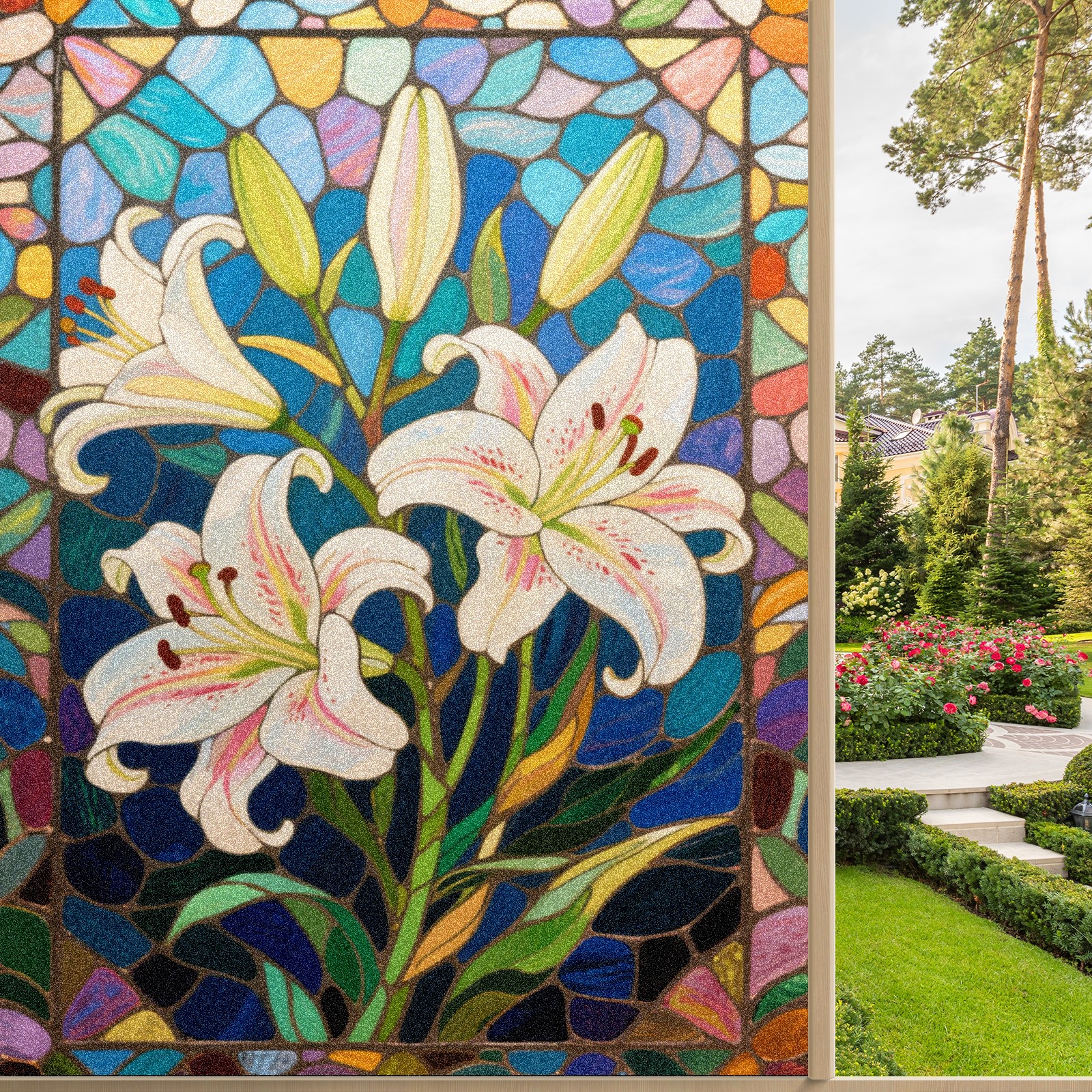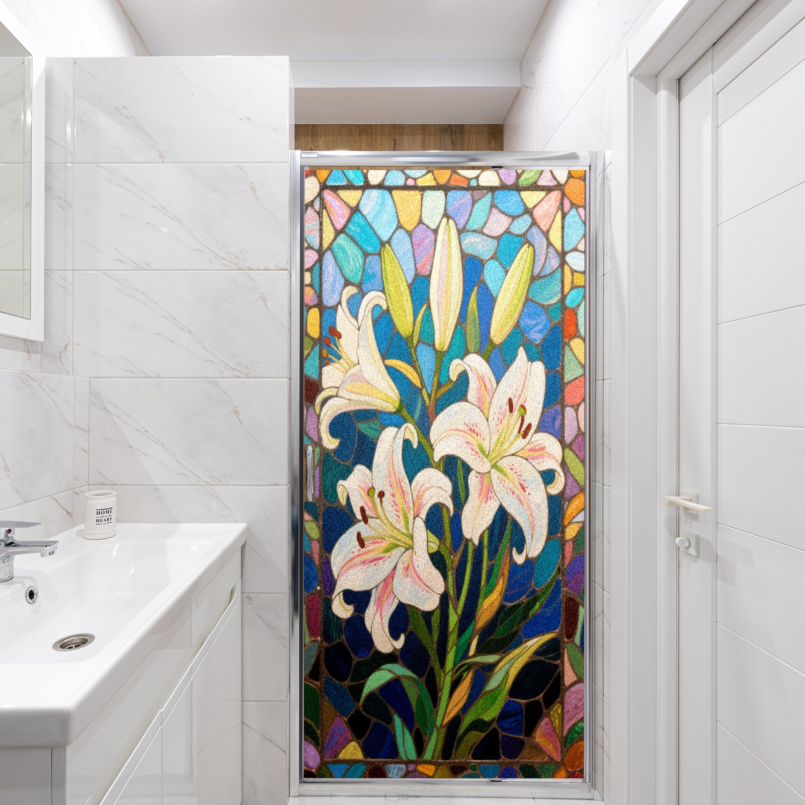 Matte Privacy Window Film | Static Cling, One-Way Glass Insulation Film, UV Blocking & Heat Insulating | Non-Adhesive, Removable for Home, Office & BathroomImpressionist Lily (1)