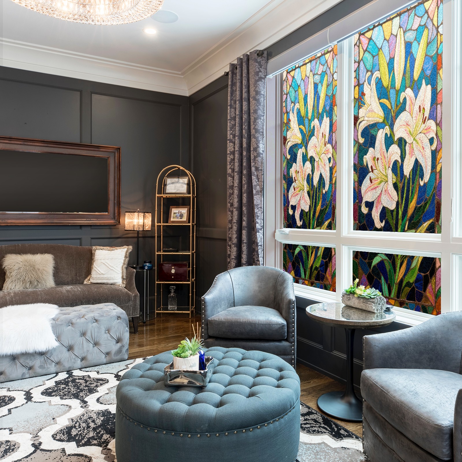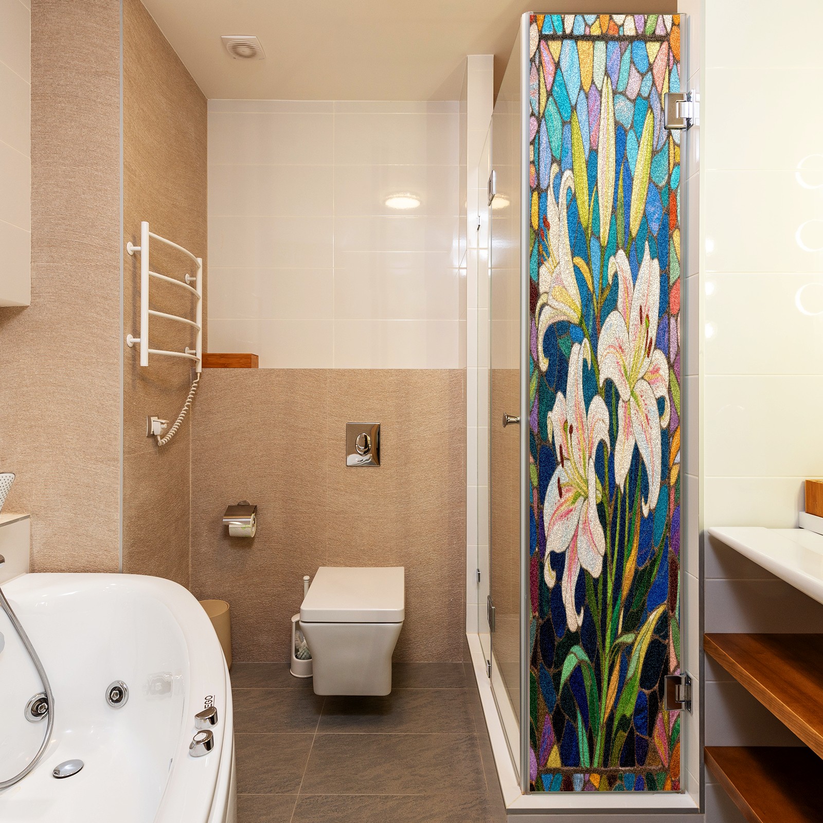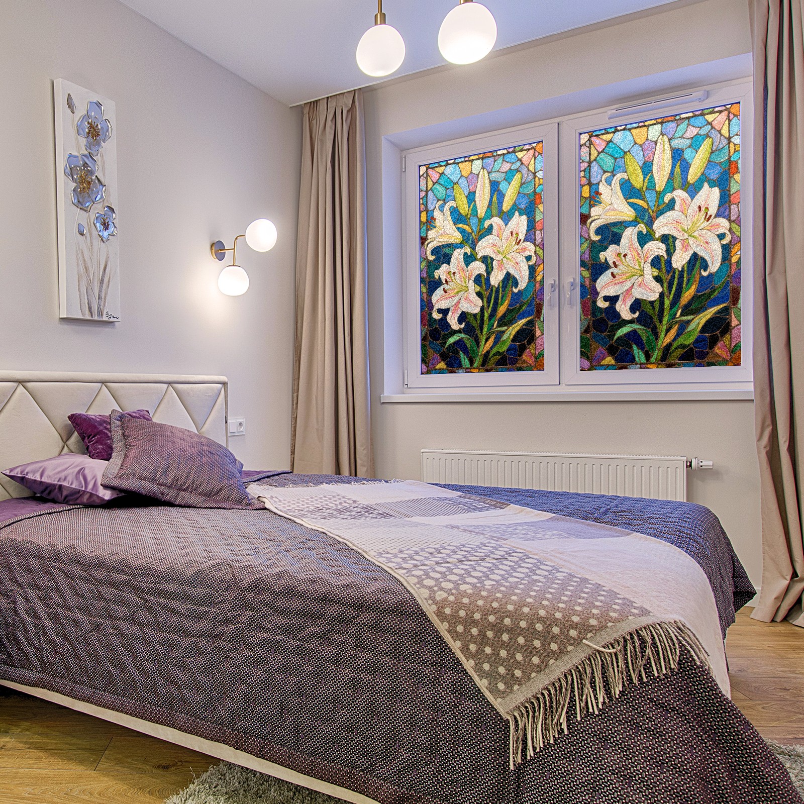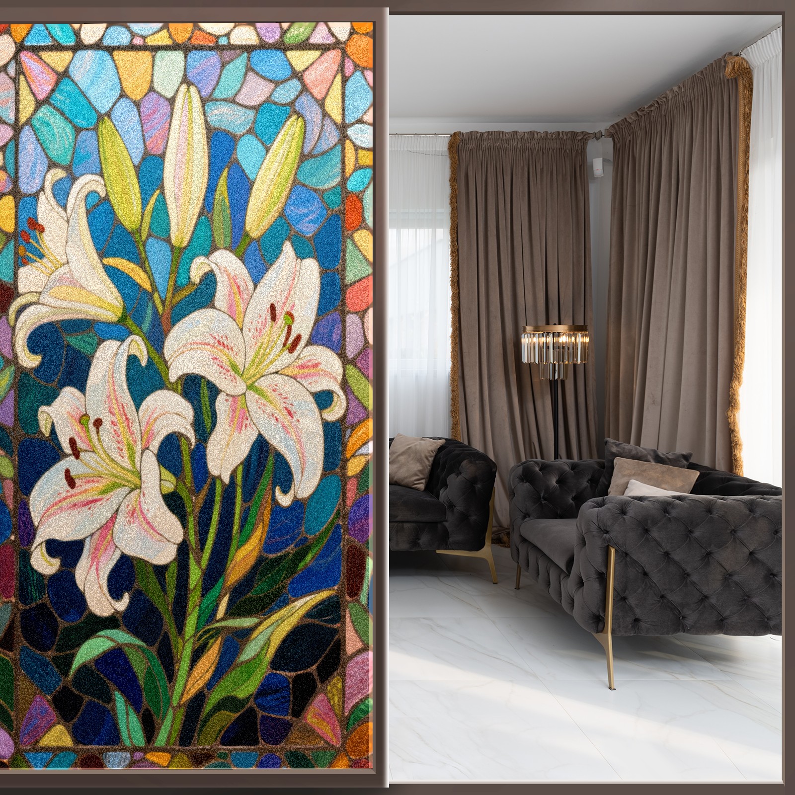 Matte Privacy Window Film | Static Cling, One-Way Glass Insulation Film, UV Blocking & Heat Insulating | Non-Adhesive, Removable for Home, Office & BathroomImpressionist Lily (1)