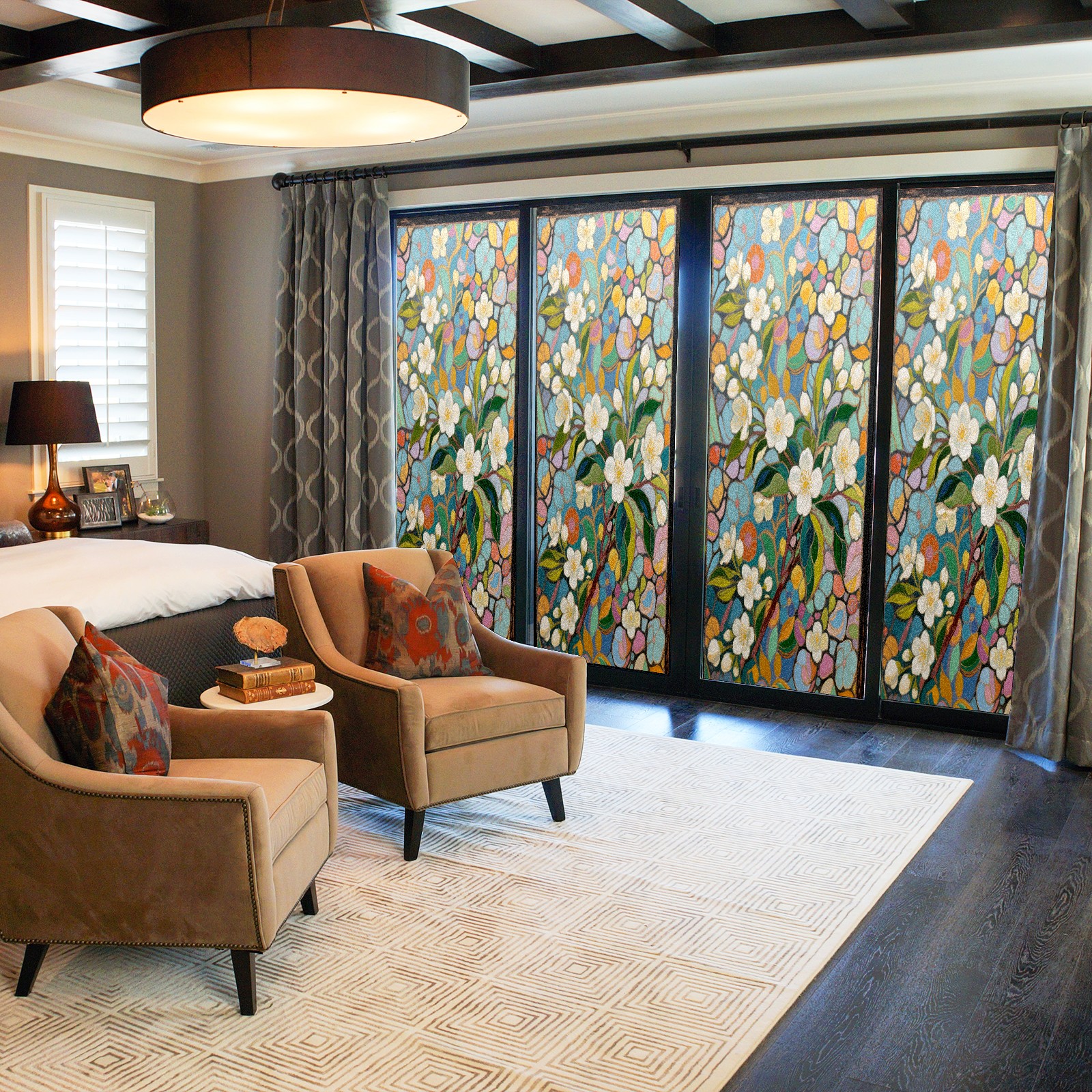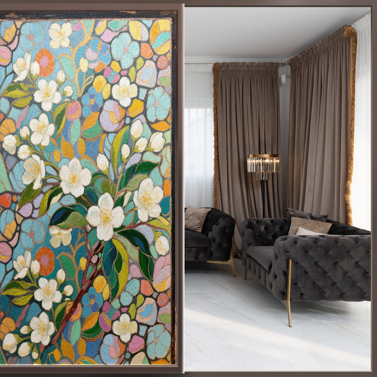 <p>Our film is made of food-grade PET material, safe and odorless, mother and baby families can rest assured that the use of explosion-proof impact resistance more peace of mind. High-definition full-sheet printing, delicate pattern does not fade, easy to enhance the tone of the home, suitable for a variety of decorative styles. Single-sided frosted design, effective protection of privacy, clear view during the day, night anti-peeping without embarrassment. Electrostatic adsorption installation, glue-free without leaving marks, can be repeatedly adjusted for use. It can also block ultraviolet rays, sunscreen insulation, protect furniture from fading, energy saving and more comfortable!&nbsp;&nbsp;</p>