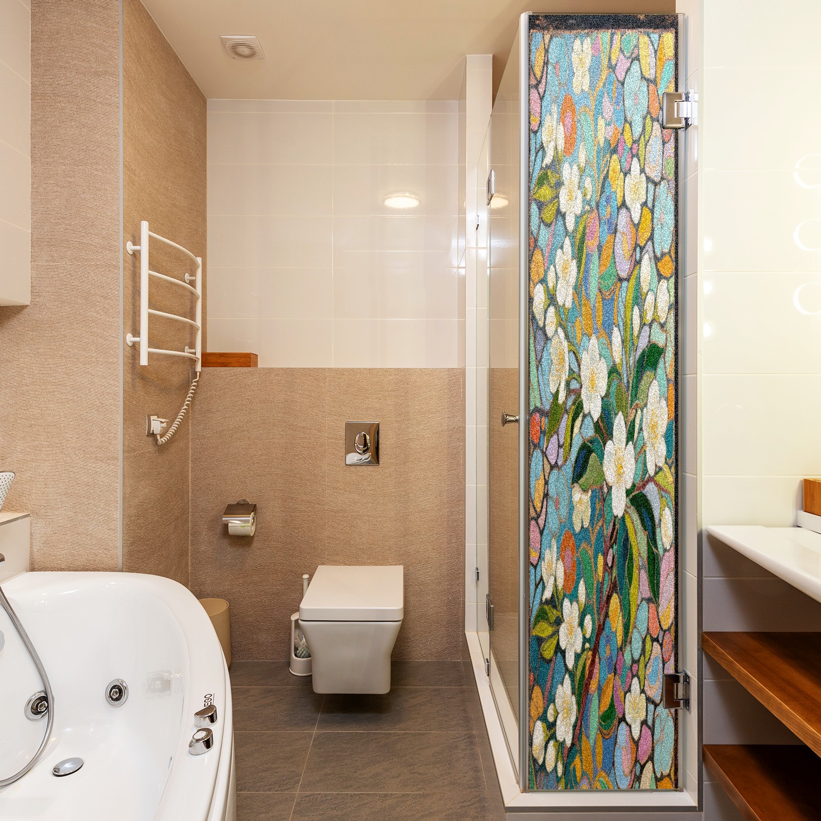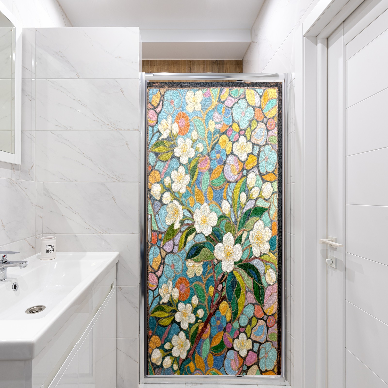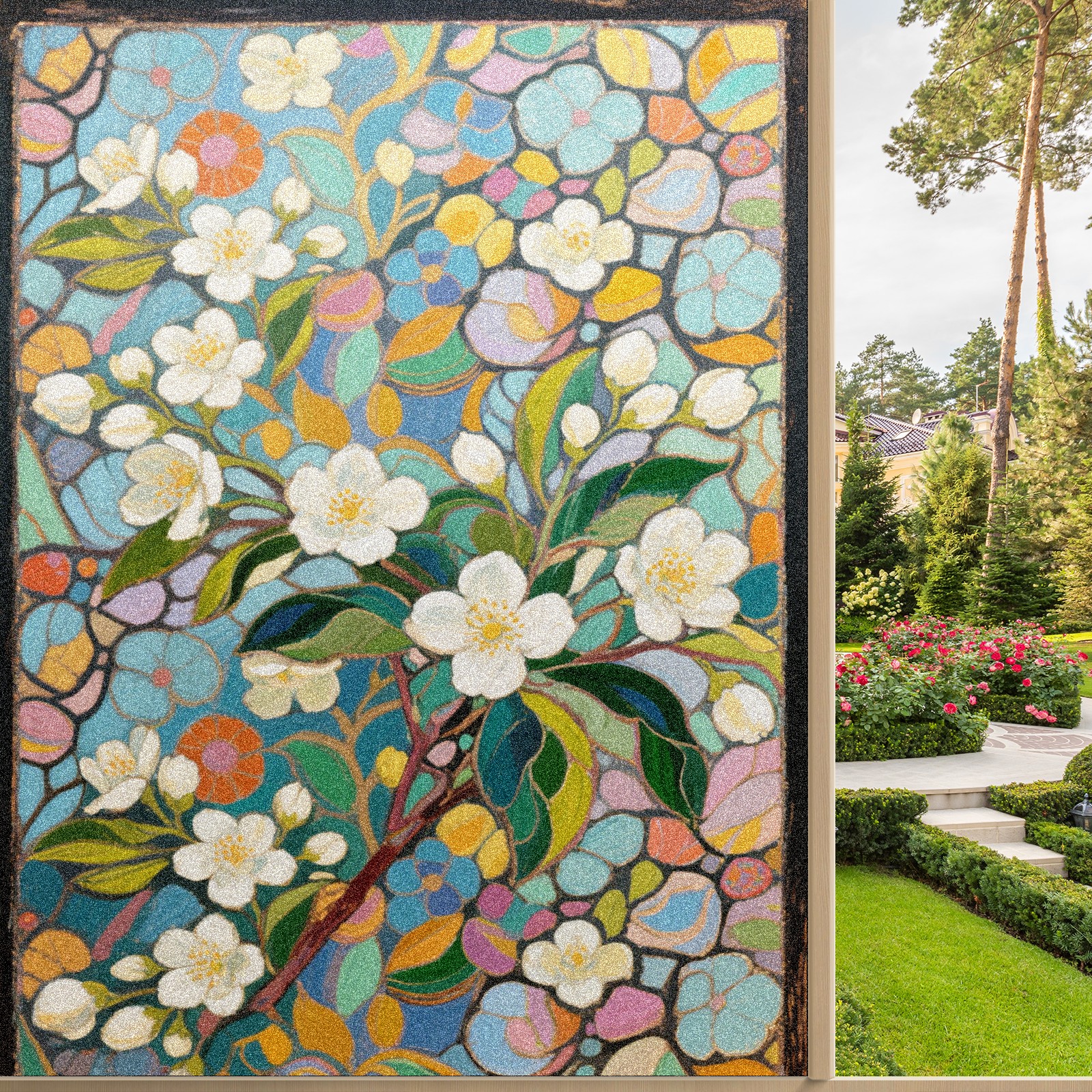 Matte Privacy Window Film | Static Cling, One-Way Glass Insulation Film, UV Blocking & Heat Insulating | Non-Adhesive, Removable for Home, Office & BathroomImpressionist Jasmine (2)