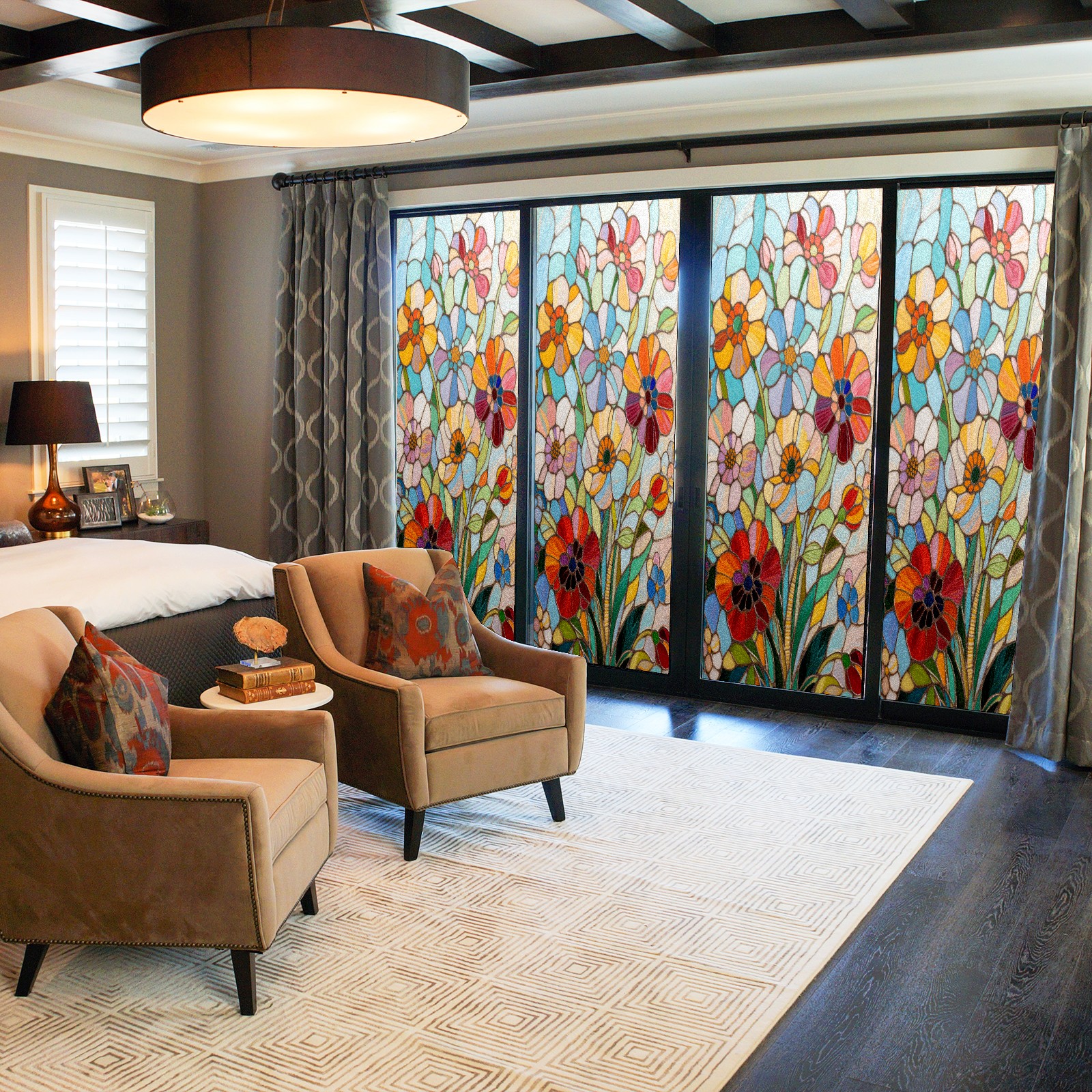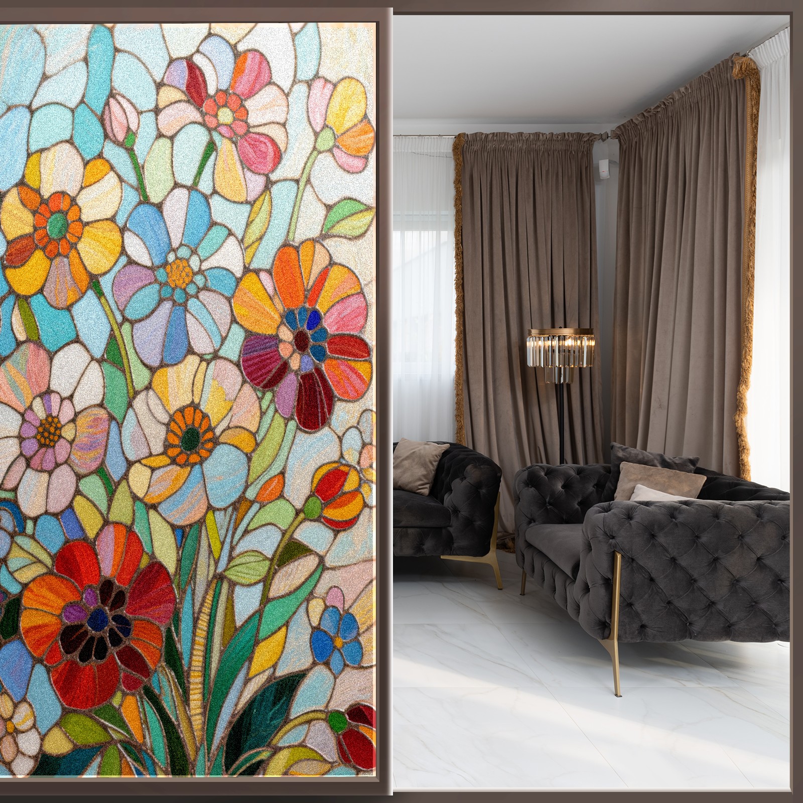 <p>Our film is made of food-grade PET material, safe and odorless, mother and baby families can rest assured that the use of explosion-proof impact resistance more peace of mind. High-definition full-sheet printing, delicate pattern does not fade, easy to enhance the tone of the home, suitable for a variety of decorative styles. Single-sided frosted design, effective protection of privacy, clear view during the day, night anti-peeping without embarrassment. Electrostatic adsorption installation, glue-free without leaving marks, can be repeatedly adjusted for use. It can also block ultraviolet rays, sunscreen insulation, protect furniture from fading, energy saving and more comfortable!&nbsp;&nbsp;</p>