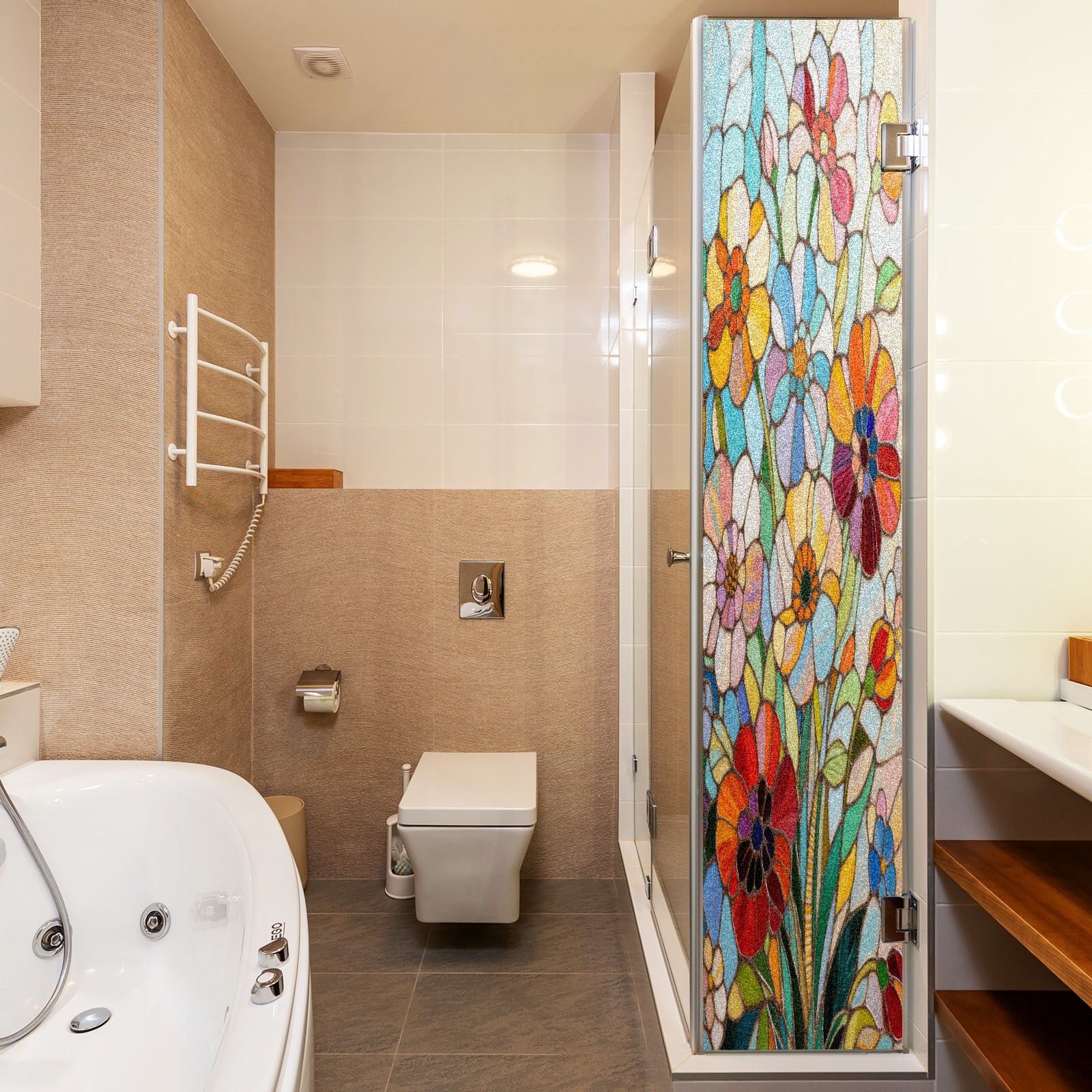 Matte Privacy Window Film | Static Cling, One-Way Glass Insulation Film, UV Blocking & Heat Insulating | Non-Adhesive, Removable for Home, Office & BathroomImpressionist Flowers (3)