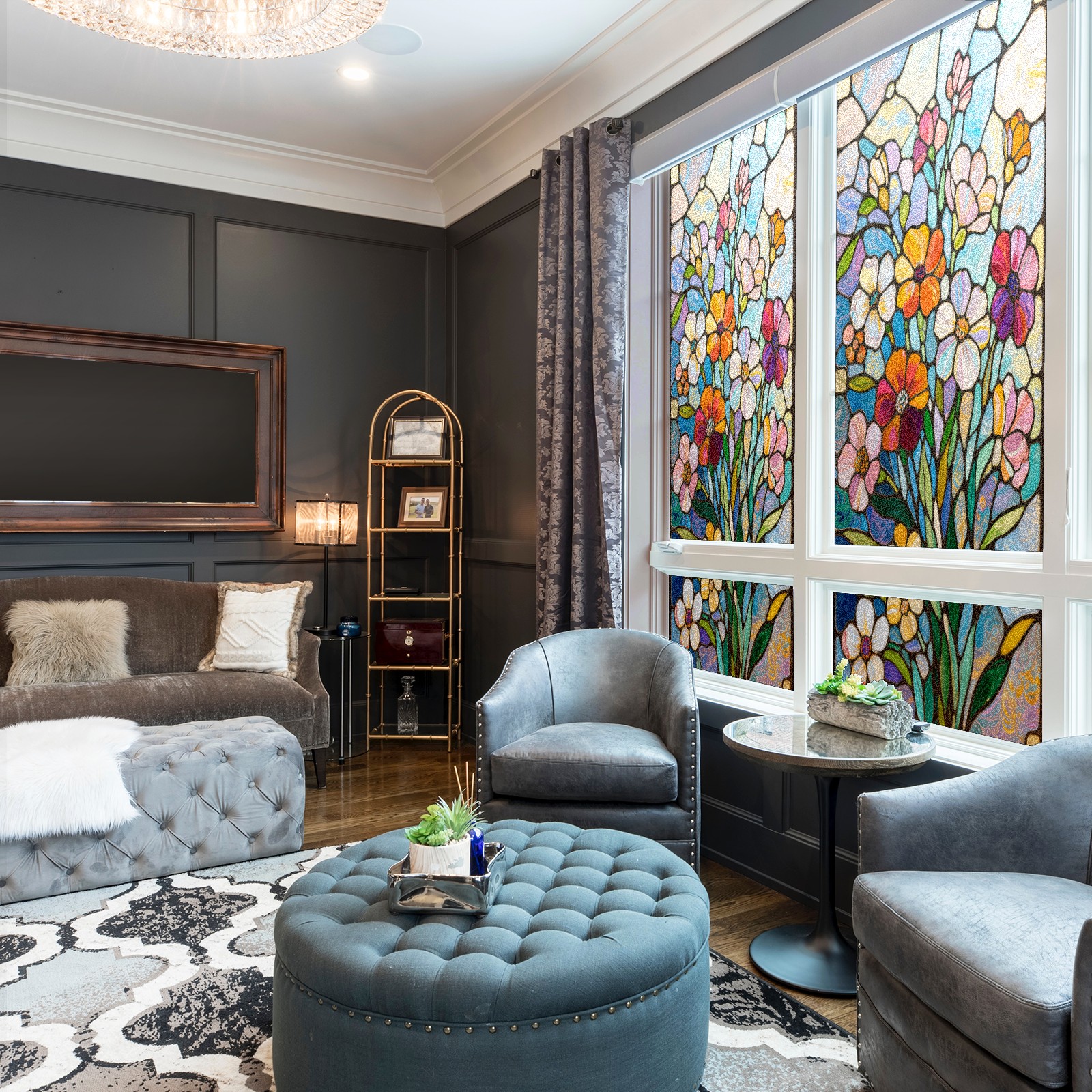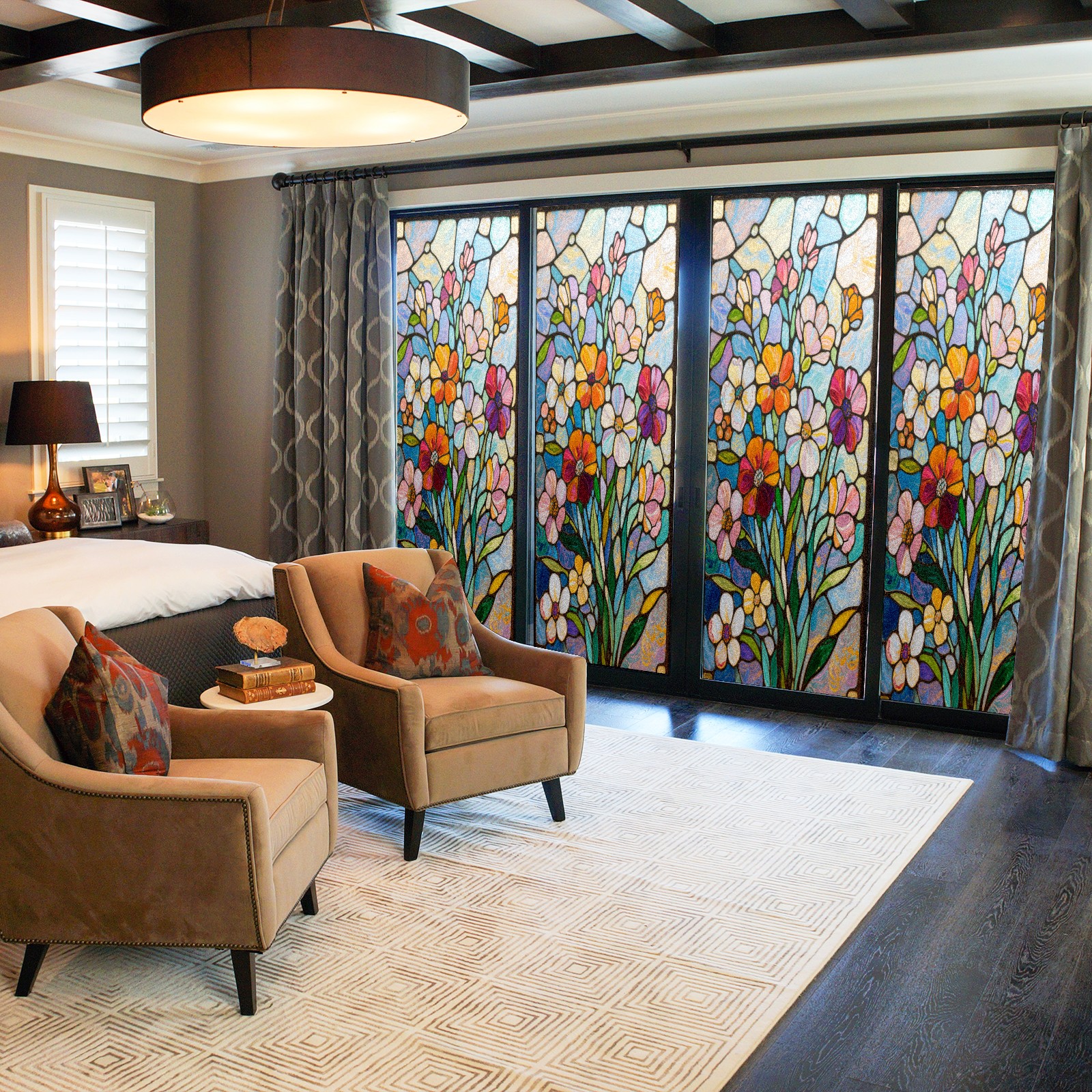 • <p>Our film is made of food-grade PET material, safe and odorless, mother and baby families can rest assured that the use of explosion-proof impact resistance more peace of mind. High-definition full-sheet printing, delicate pattern does not fade, easy to enhance the tone of the home, suitable for a variety of decorative styles. Single-sided frosted design, effective protection of privacy, clear view during the day, night anti-peeping without embarrassment. Electrostatic adsorption installation, glue-free without leaving marks, can be repeatedly adjusted for use. It can also block ultraviolet rays, sunscreen insulation, protect furniture from fading, energy saving and more comfortable!&nbsp;&nbsp;</p>