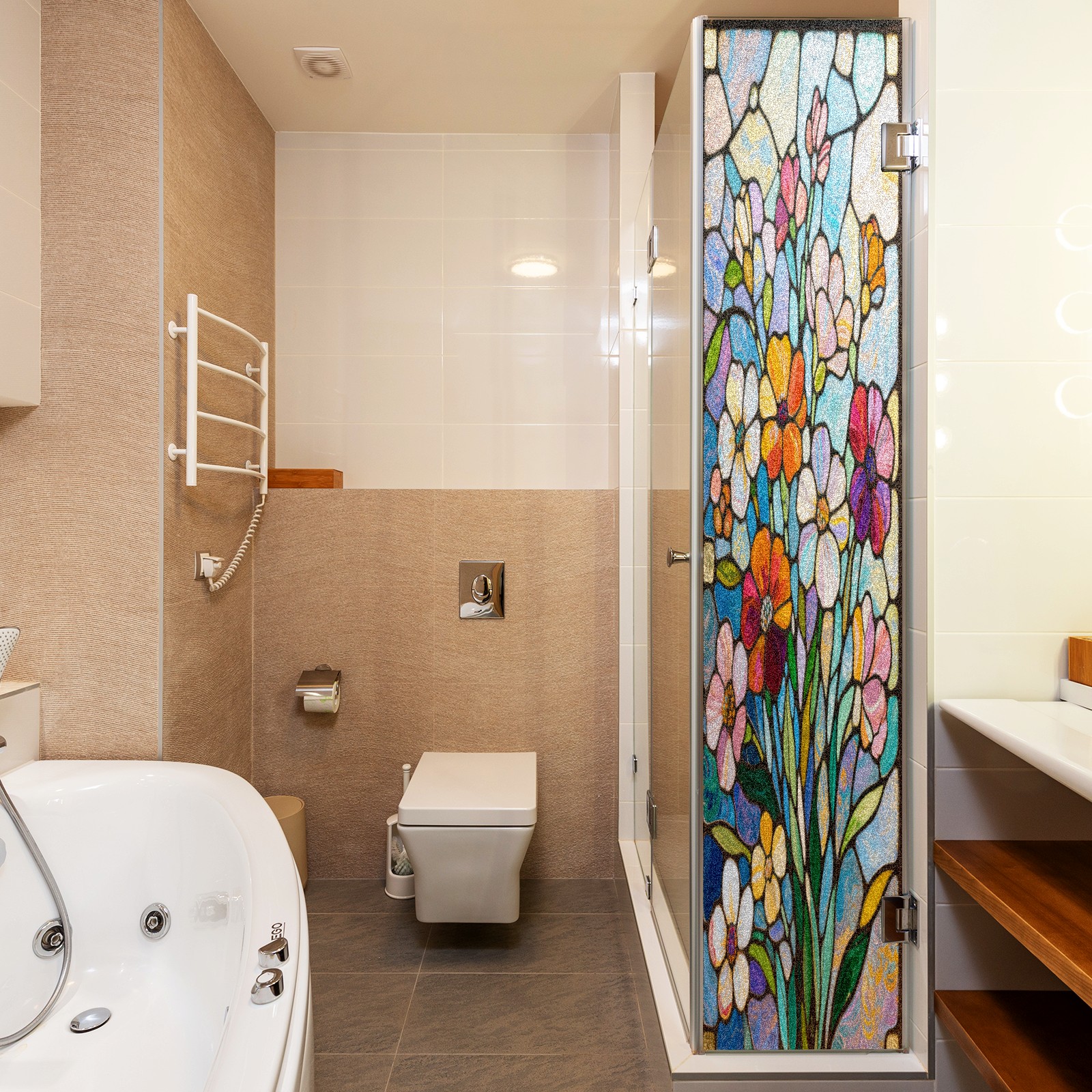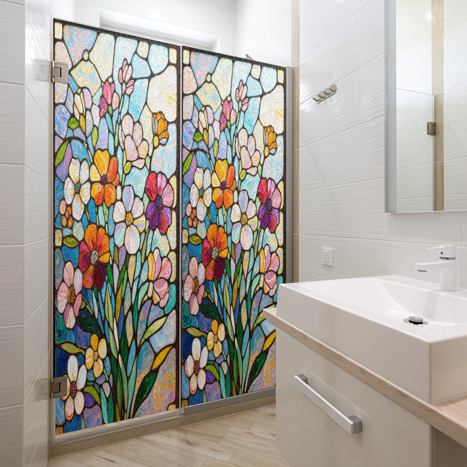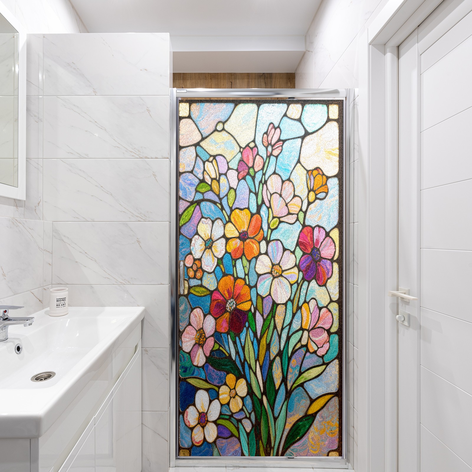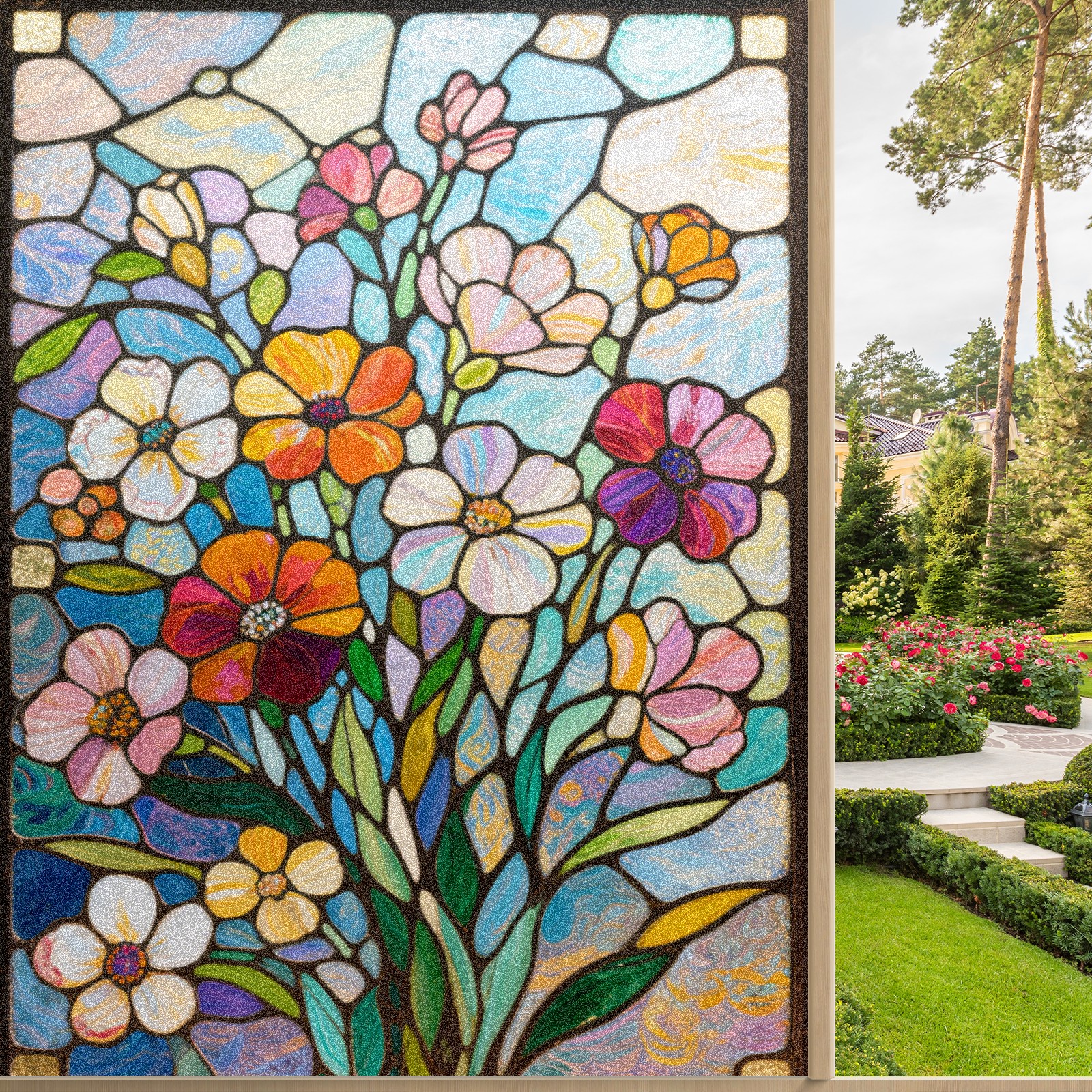 Matte Privacy Window Film | Static Cling, One-Way Glass Insulation Film, UV Blocking & Heat Insulating | Non-Adhesive, Removable for Home, Office & BathroomImpressionist Flowers