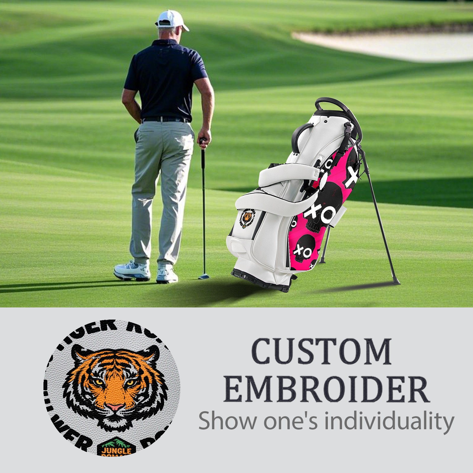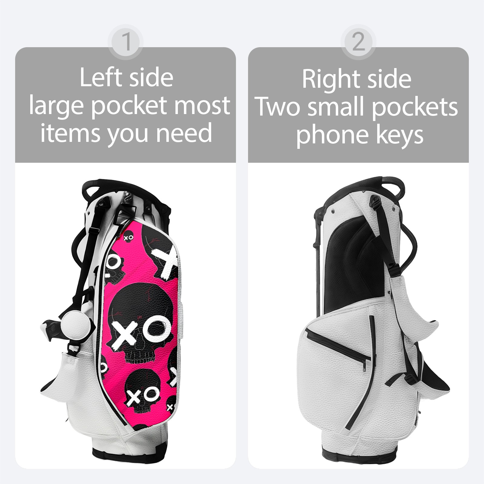 Golf Stand Bag - 14/5 Way Top Dividers, 8 Pockets, Waterproof for Men & Women PU Leather, Customizable , Black/White,golf bags for menSkulls 3
