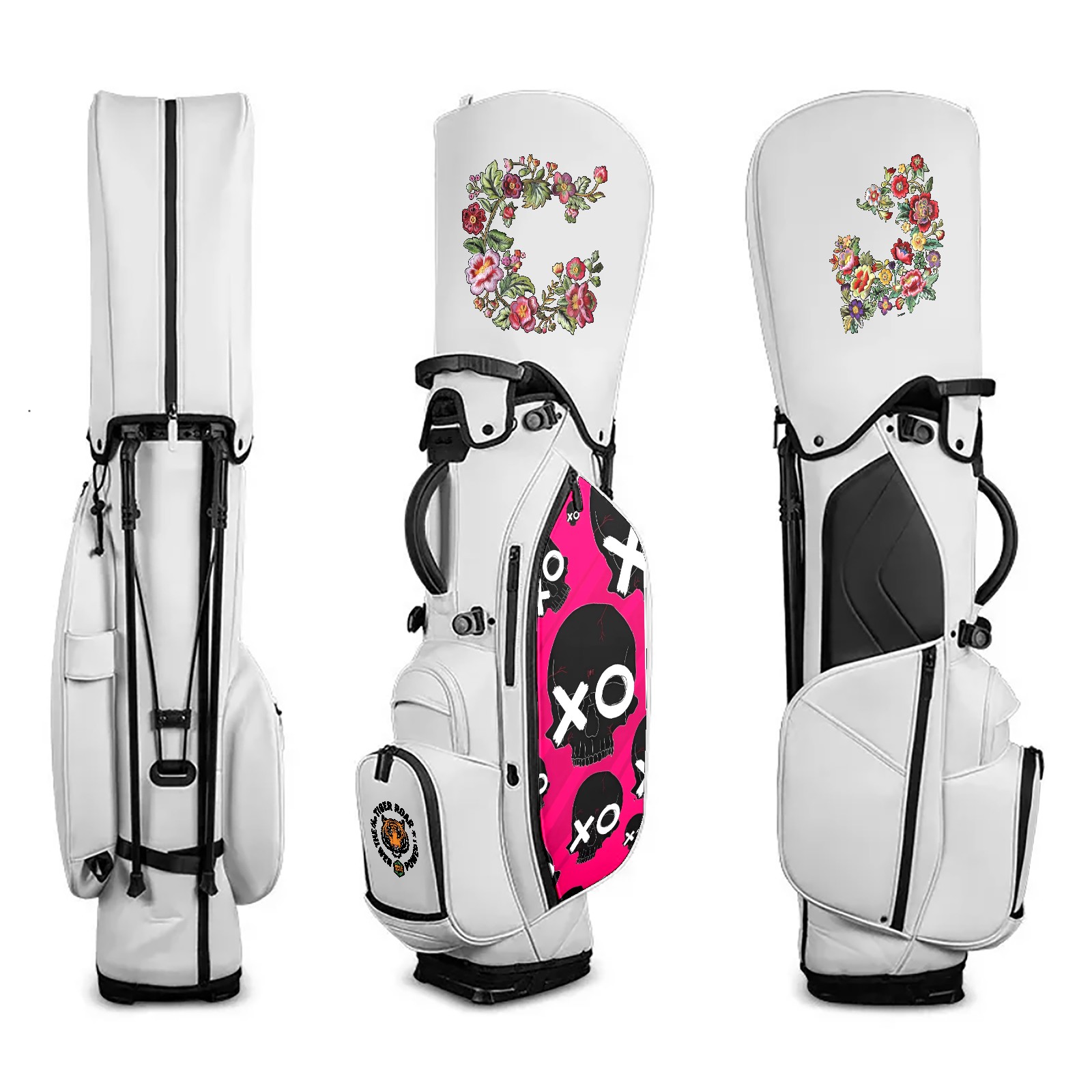 <p>The Golf Stand Bag, designed specifically for golf enthusiasts, offers a choice of 5 - way and 14 - way top dividers. Its 5/14 - compartment design with independent full - size club compartments safeguards clubs from collisions. Equipped with a rain cover, waterproof zippered pockets (tested to resist moderate to heavy rain), and a high - performance cooler pouch that can keep drinks cold for hours, it ensures a convenient golfing experience. The bag features thickened, breathable neoprene shoulder straps and an adjustable chest buckle, reducing shoulder fatigue by 35% compared to regular bags, and its automatic aluminum alloy stand provides stable support on various terrains. Crafted from top - tier, water - resistant litchi - grain PU leather, with double - stitched edges, reliable zippers tested for over 15,000 cycles, and anti - abrasion bottom studs, it guarantees durability. You can personalize it with embroidery on the front pocket and rain cover side (15*15cm area), and it comes in classic black and white, with a matte finish and litchi - grain texture that combines business and leisure styles. Measuring 130 cm in height, 37 cm in width, and 31 cm in depth (including rain cover) and 90 cm x 31 cm x 37 cm (excluding rain cover), it strikes a balance between storage and portability, capable of holding 14 standard - sized clubs and other essentials, and it also includes a dust cover. It's truly the perfect choice for golfers.<br></p>