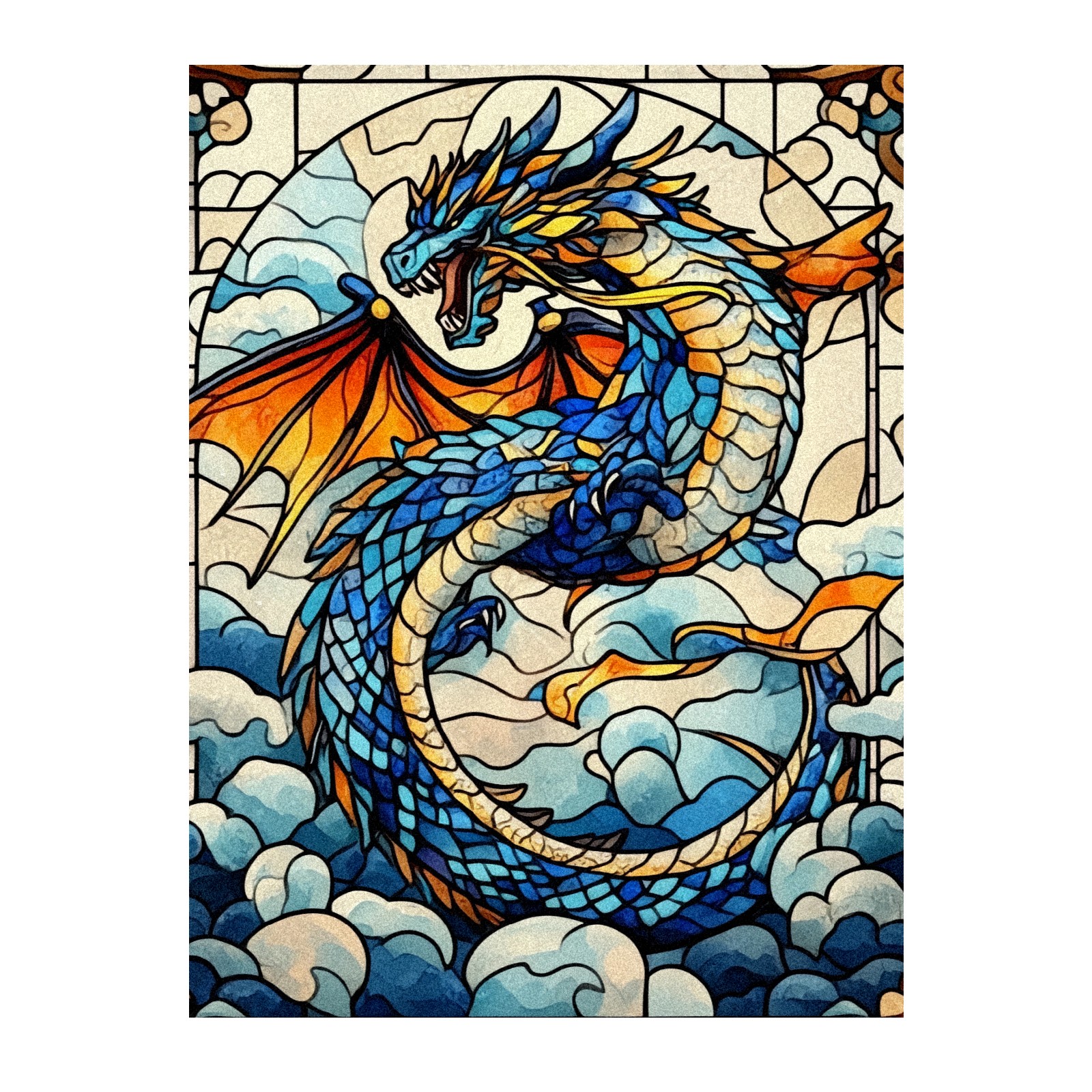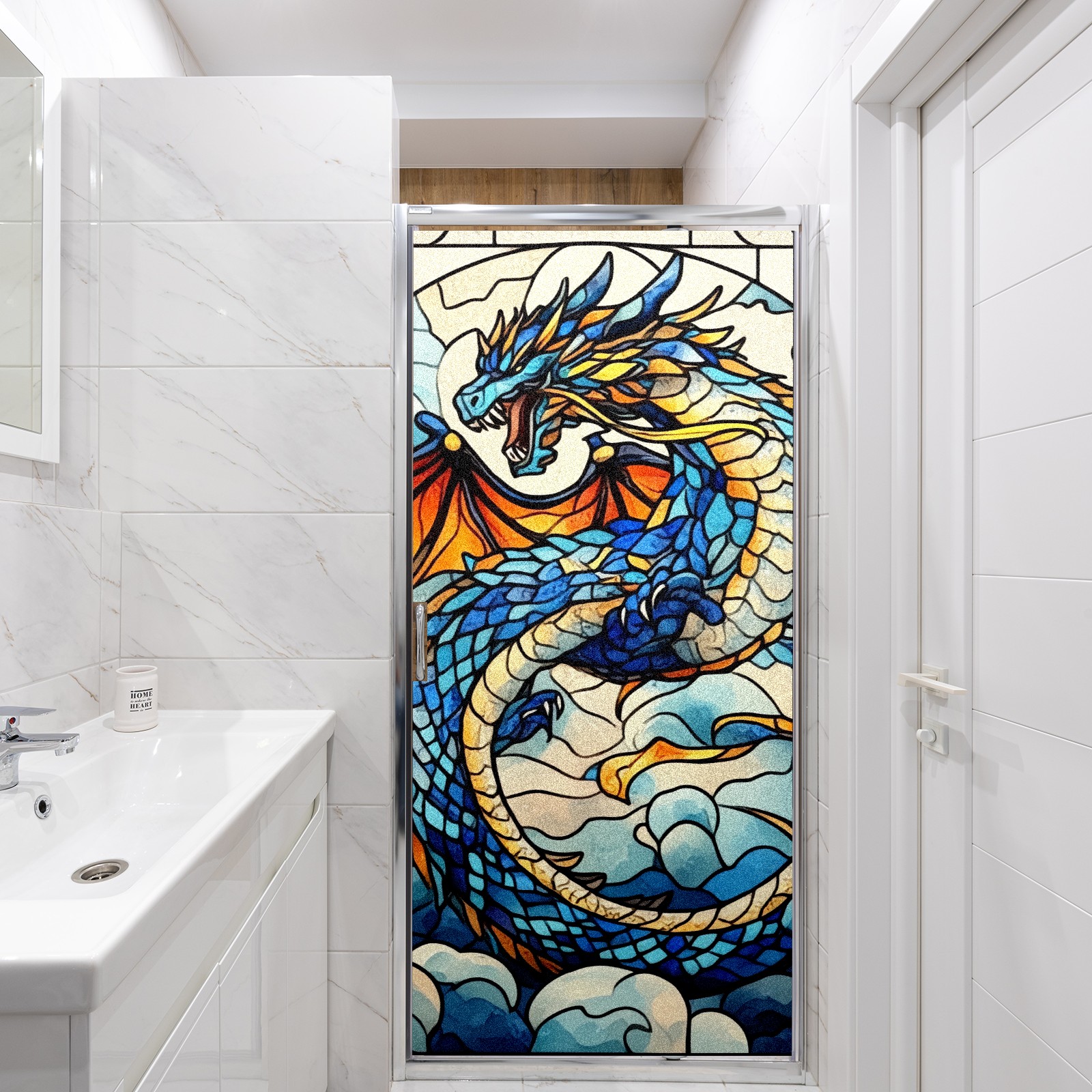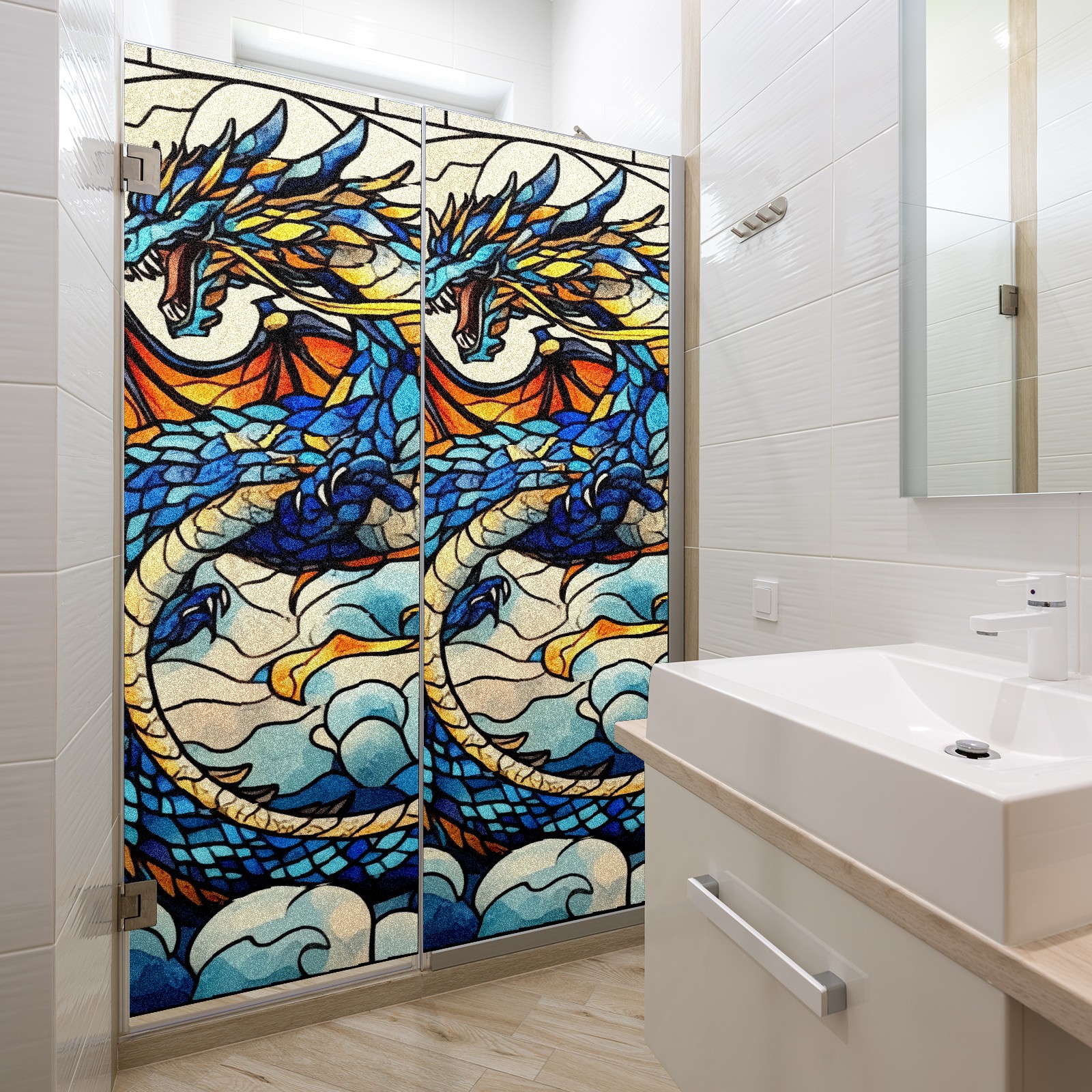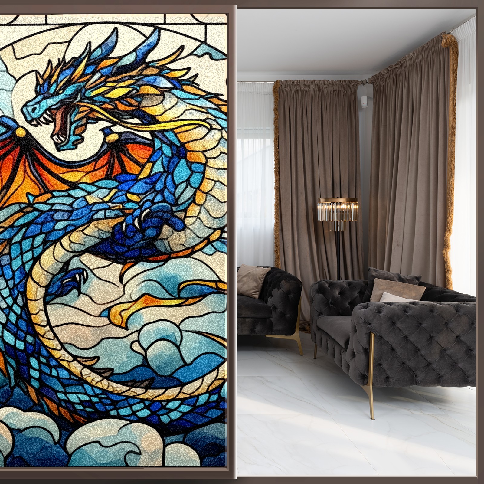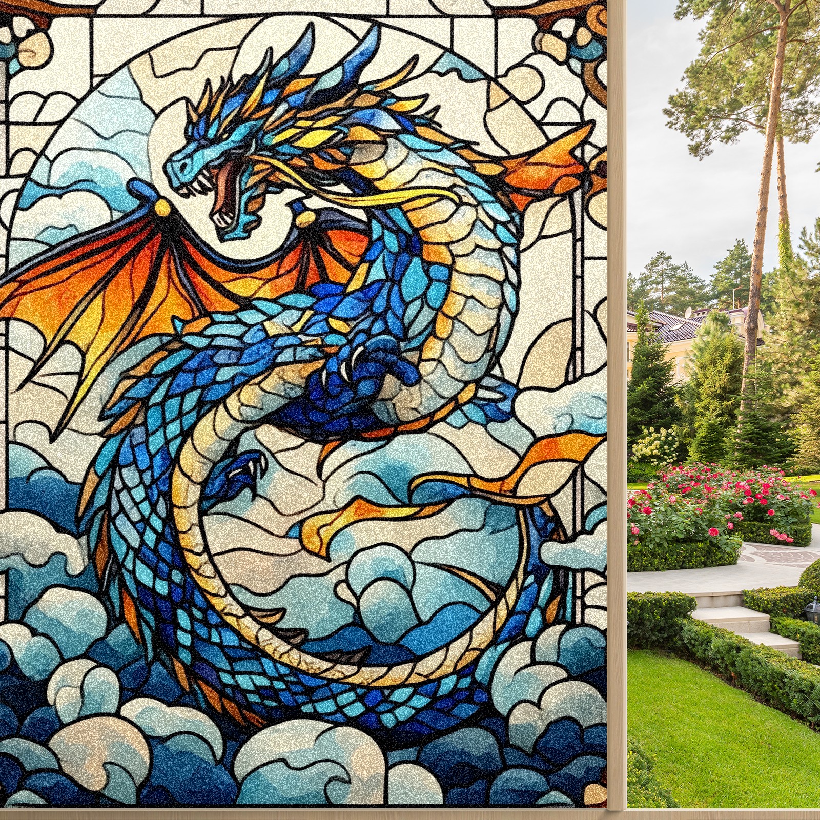 Stained Glass Window Film - Decorative Privacy Film for Windows, Peel and Stick Window Film for Bathroom/Office/Shower, Reusable and Easy to Cut 17.7"x23.6" (Dragon)