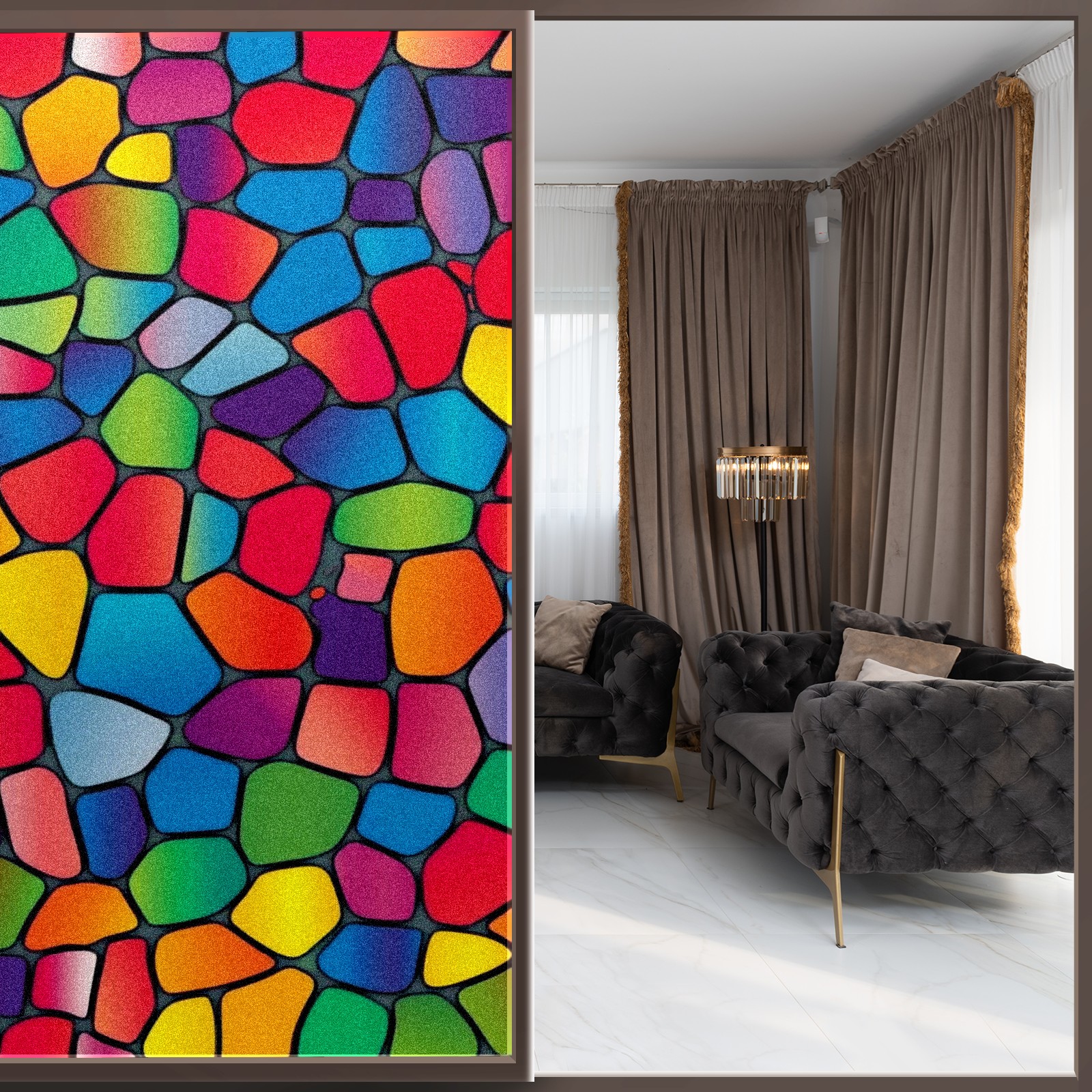 Window Privacy Film Decorative Window Decal Film Removable Static Cling Window Tint for Home Bedroom Sun Blocking Stickers 17.7 x 23.6 Inches Multicolored Mosaic Pattern
