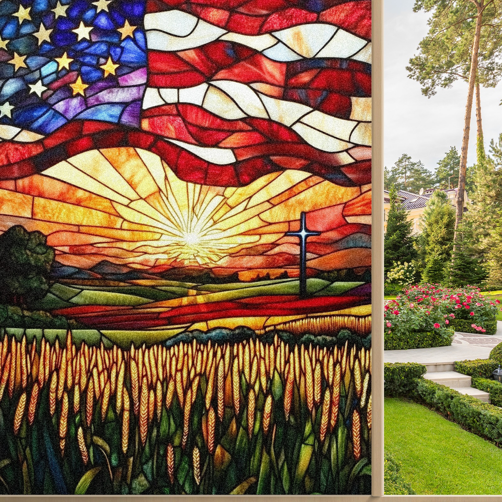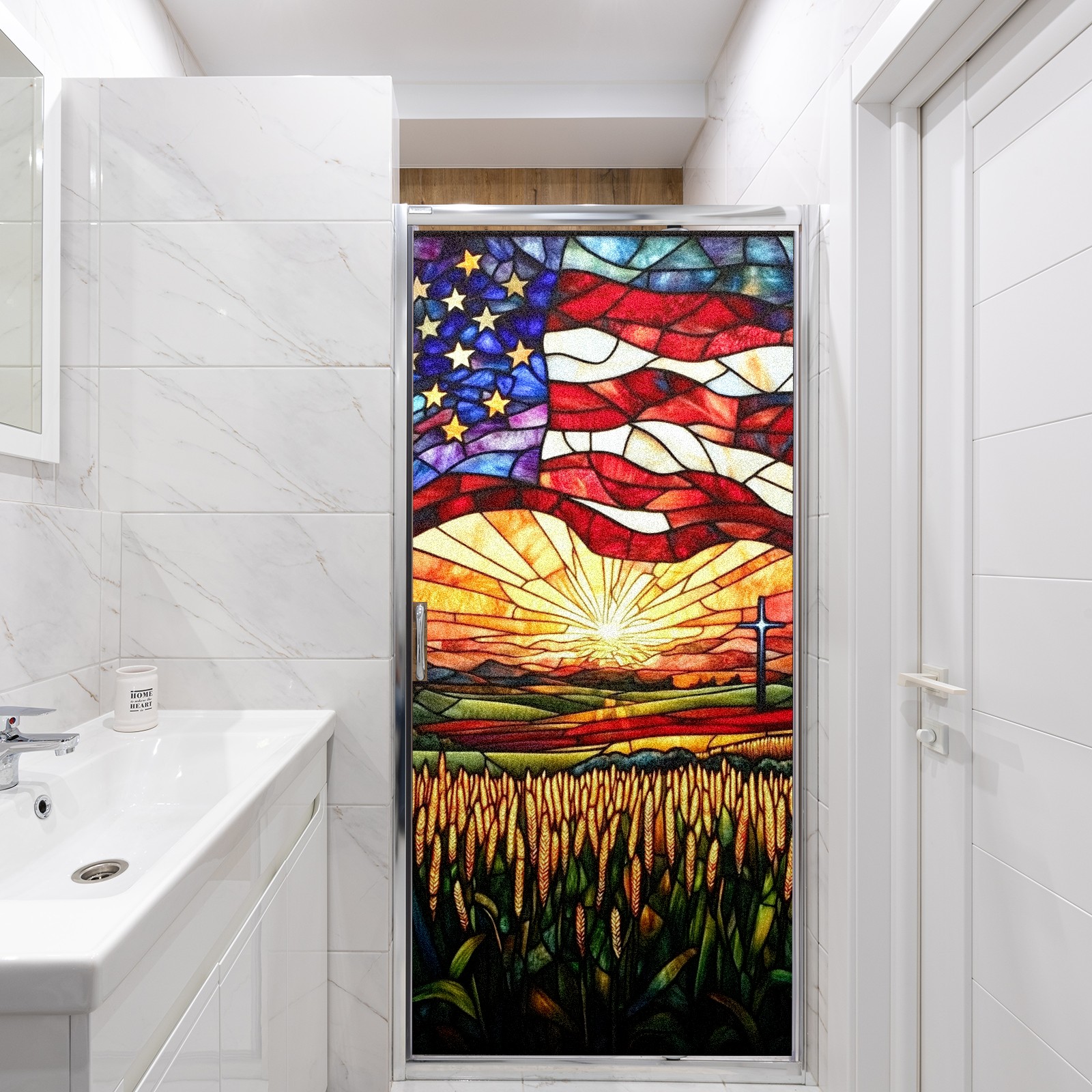 Window Privacy Film Decorative Window Decal Film Removable Static Cling Window Tint for Home Bedroom Sun Blocking Stickers 17.7 x 23.6 Inches Paddy And American Flag