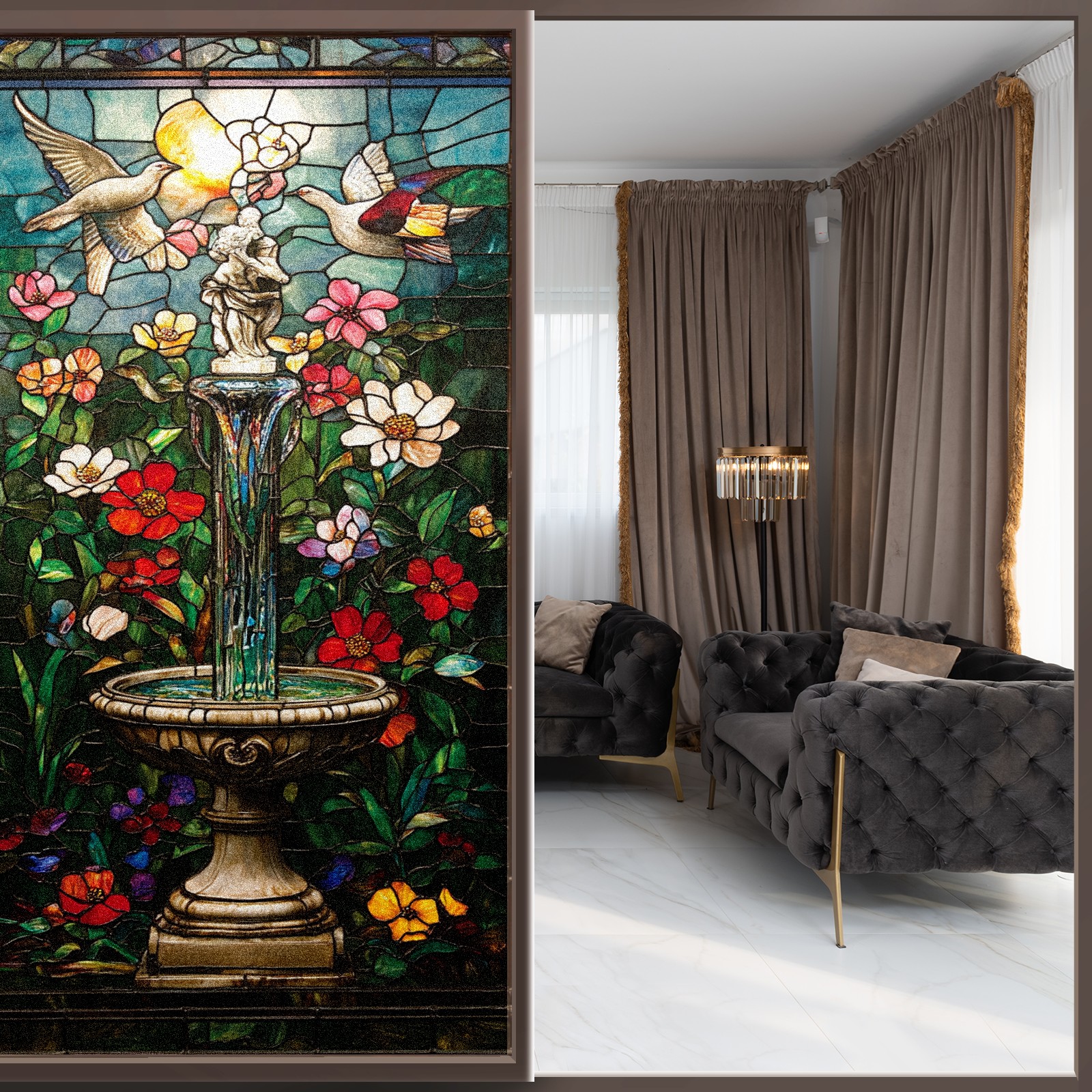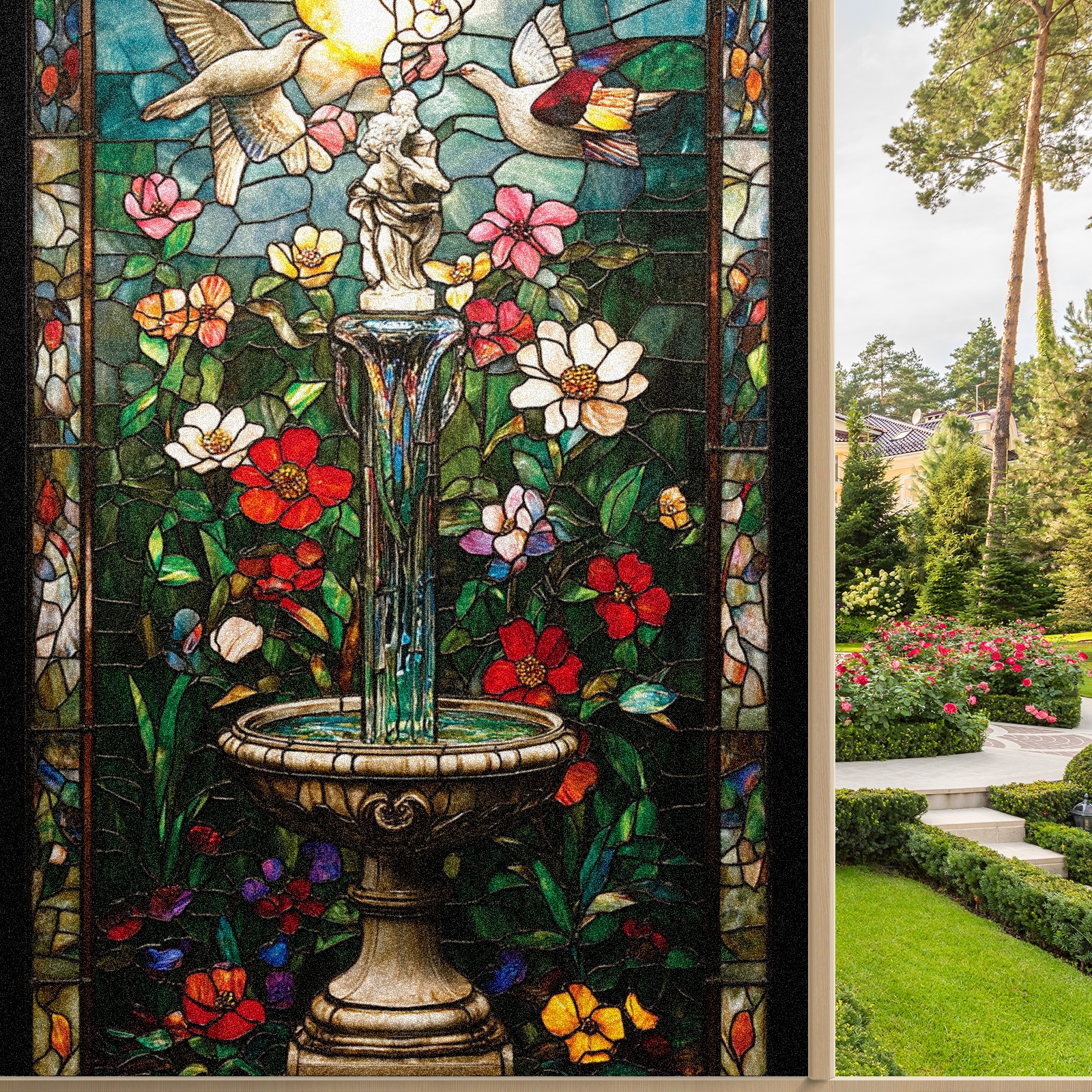 Window Privacy Film Decorative Window Decal Film Removable Static Cling Window Tint for Home Bedroom Sun Blocking Stickers 17.7 x 23.6 Inches Enchanting Garden
